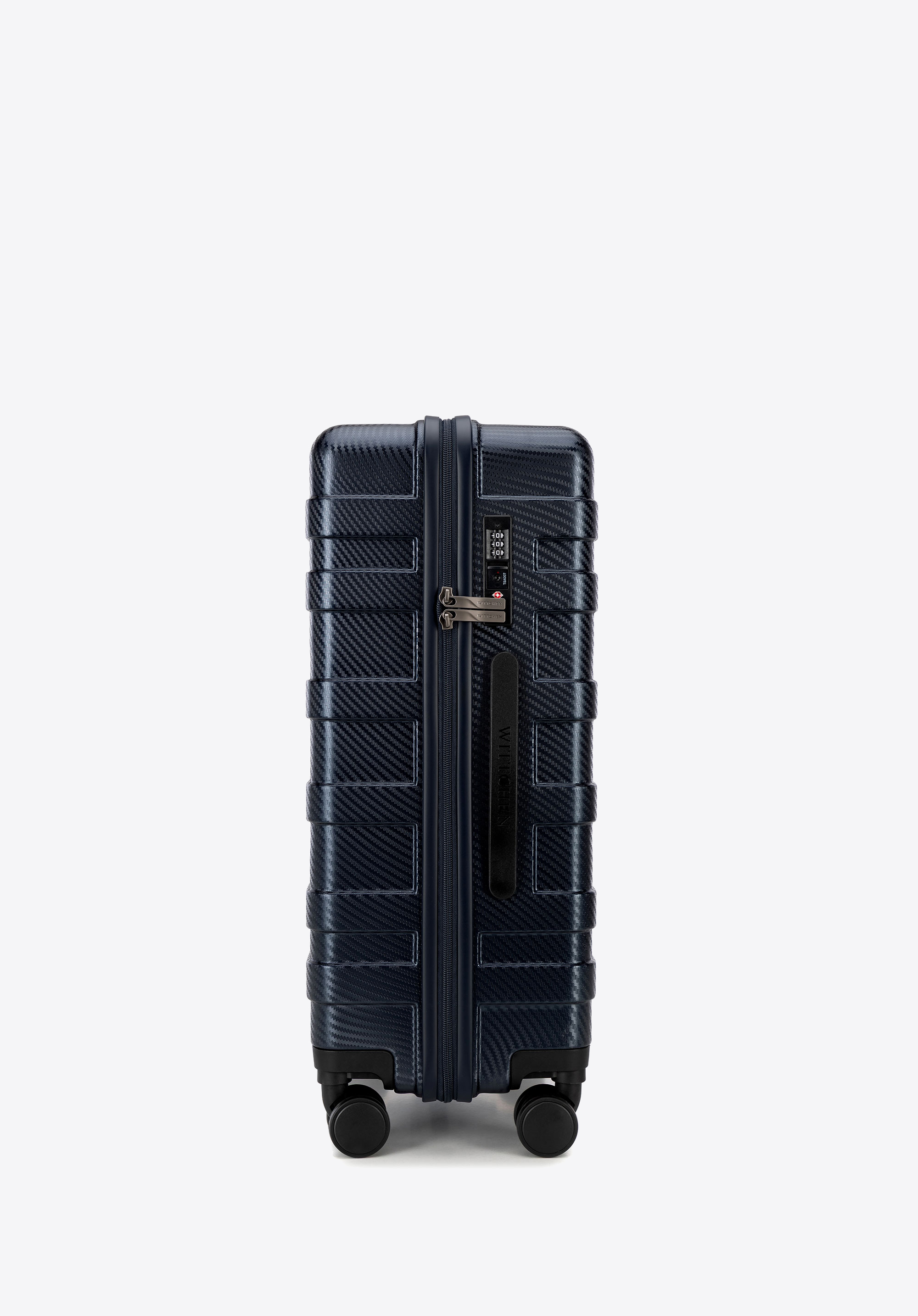 - Kényelem és stabilitás: Két fogantyú – a tetején és az oldalon – megkönnyíti az emelést, négy oldalsó láb pedig lehetővé teszi, hogy a bőröndöt biztonságosan helyezd vízszintes felületekre.