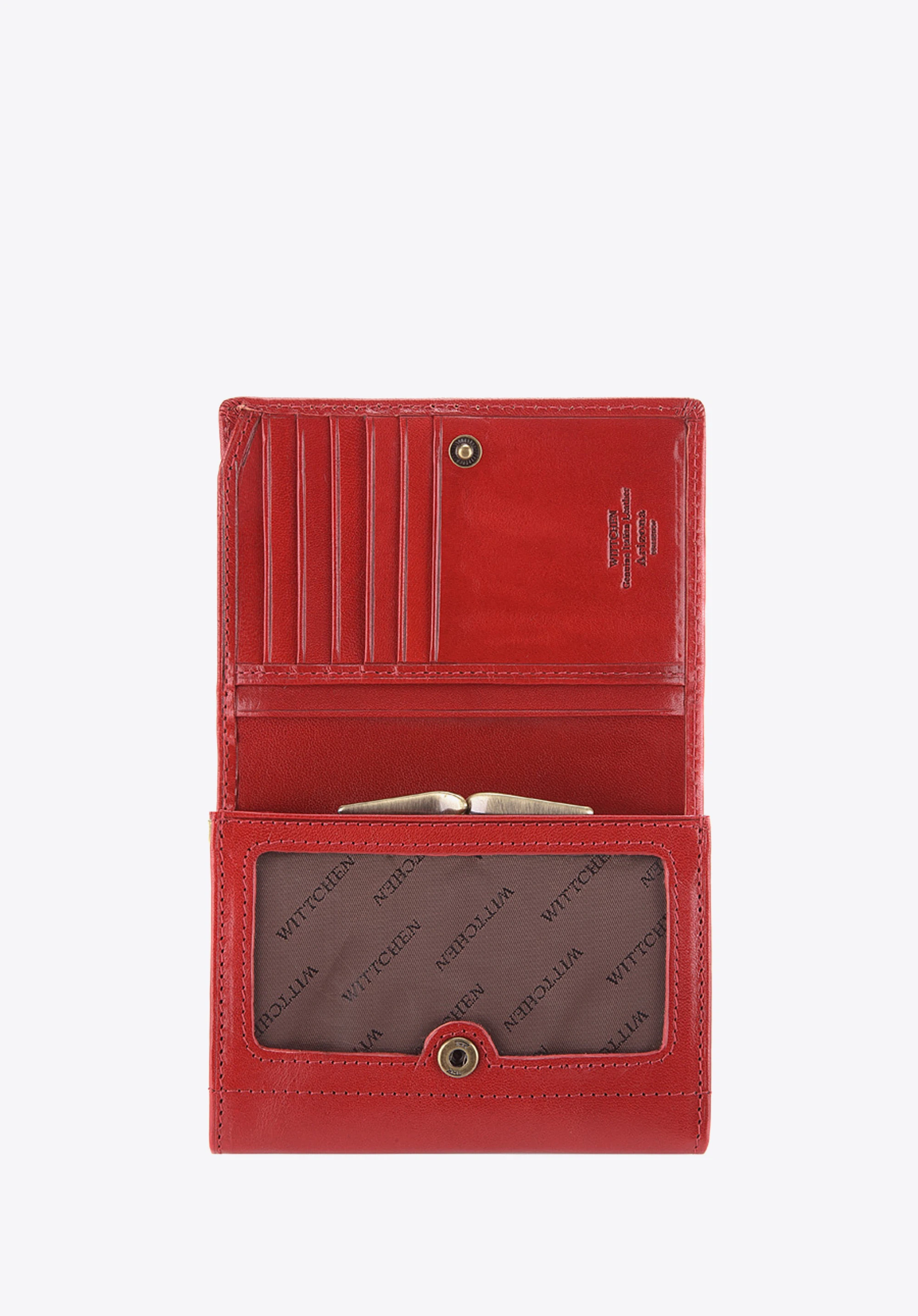 A strapabíró, finoman csillogó borjúbőrből készült közepes méretű női pénztárca minden bizonnyal örömet okoz az ízléses és praktikus megoldások kedvelőinek. Egy díszes, óarany WITTCHEN címeres logó egészíti ki ezt a kifinomult modellt.