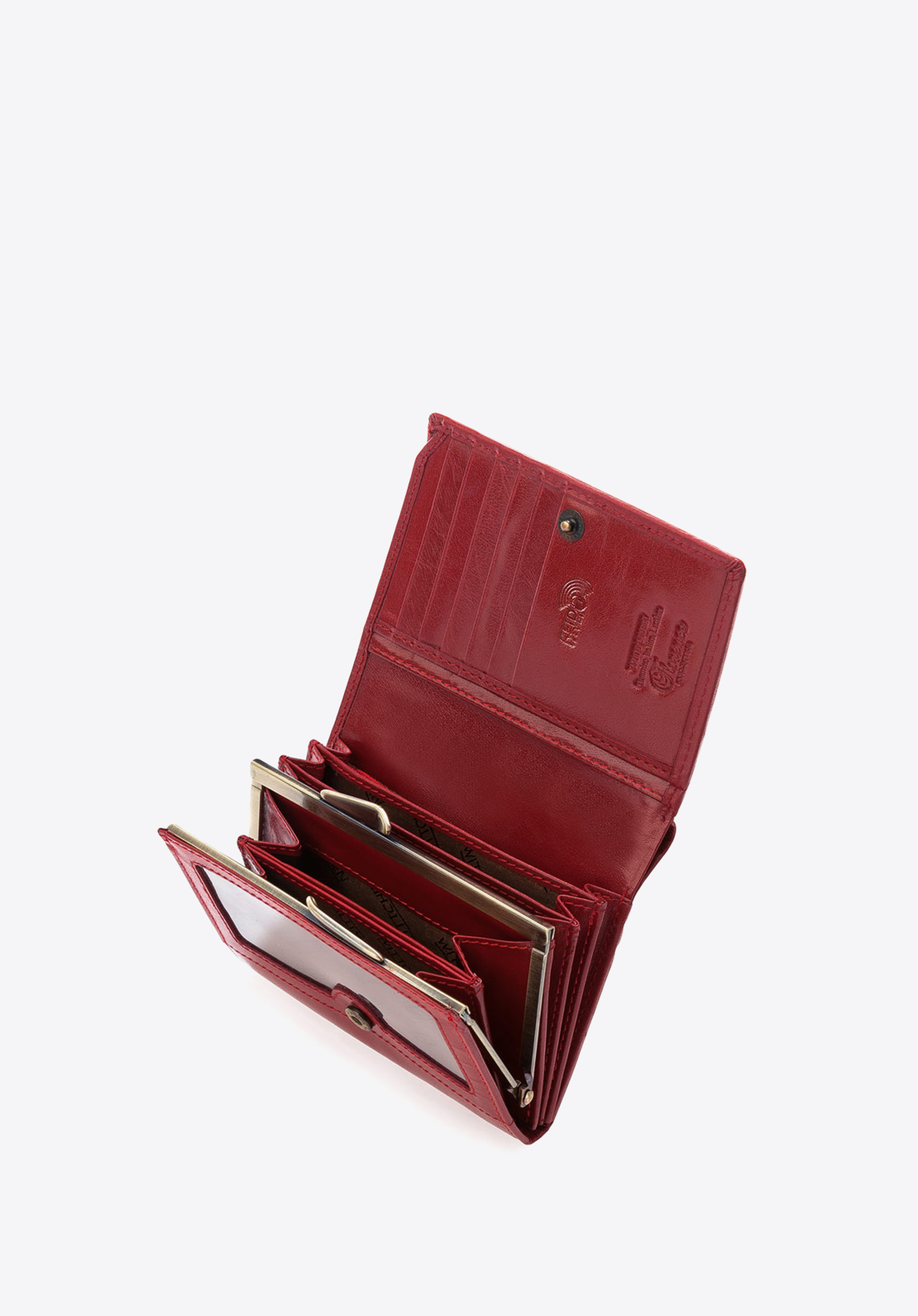 Ez a közepes méretű pénztárca a Florence kollekcióból minden nő tökéletes kiegészítője. Nagyon gondosan és esztétikusan, puha természetes bőrből készült. A logó – a WITTCHEN címer – a bőrbe van dombornyomva. Ezenkívül ez a modell speciális béléssel van felszerelve, amely megvédi a kártyákat az adatok leolvasásától (RFID). Ez a klasszikus női bőr pénztárca tökéletes választás azoknak a nőknek, akik értékelik az ergonomikus kialakítást a használat kényelmével kombinálva.