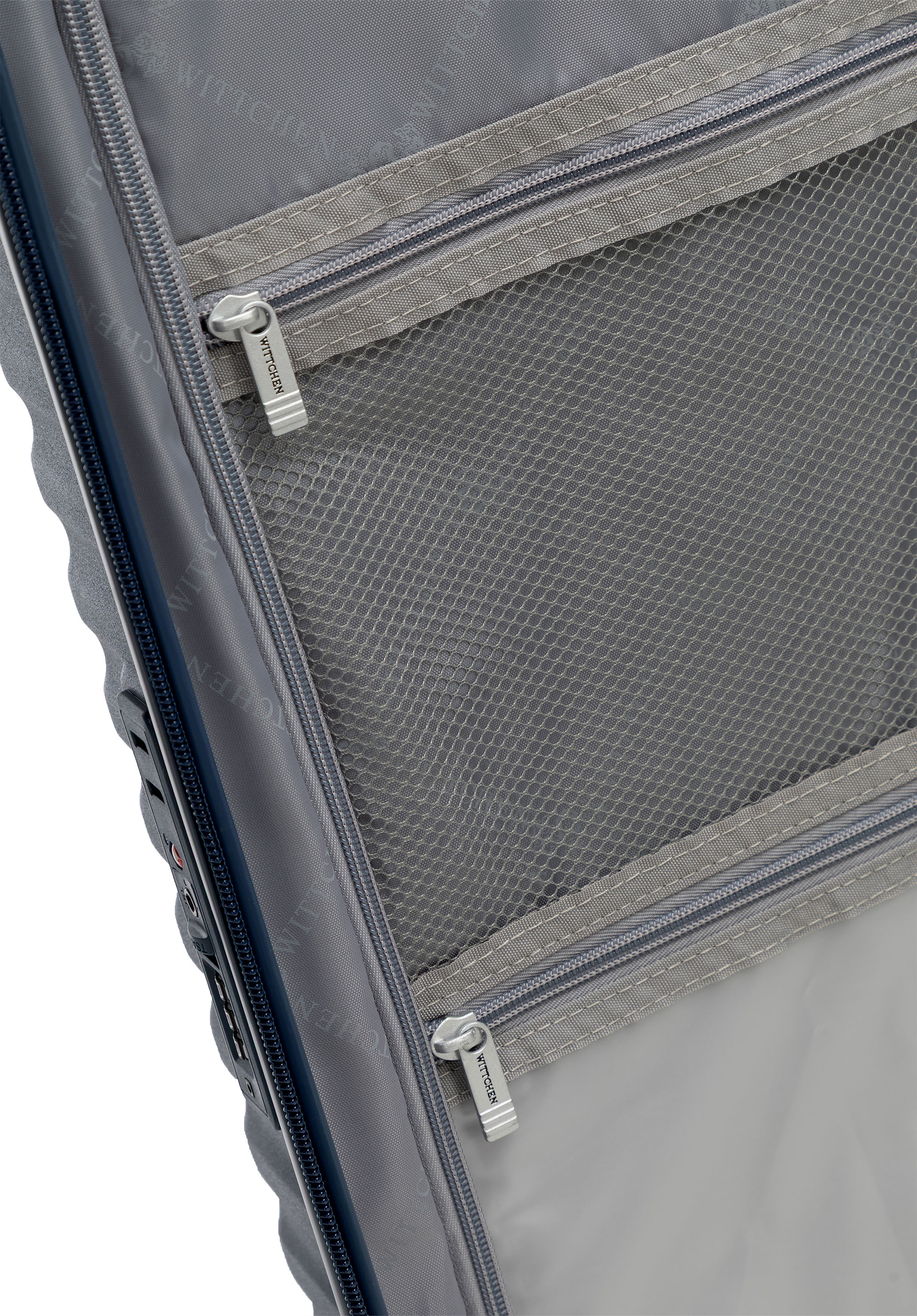 Közepes méretű polikarbonát bőrönd vízszintes barázdákkal Szín: sötétkék