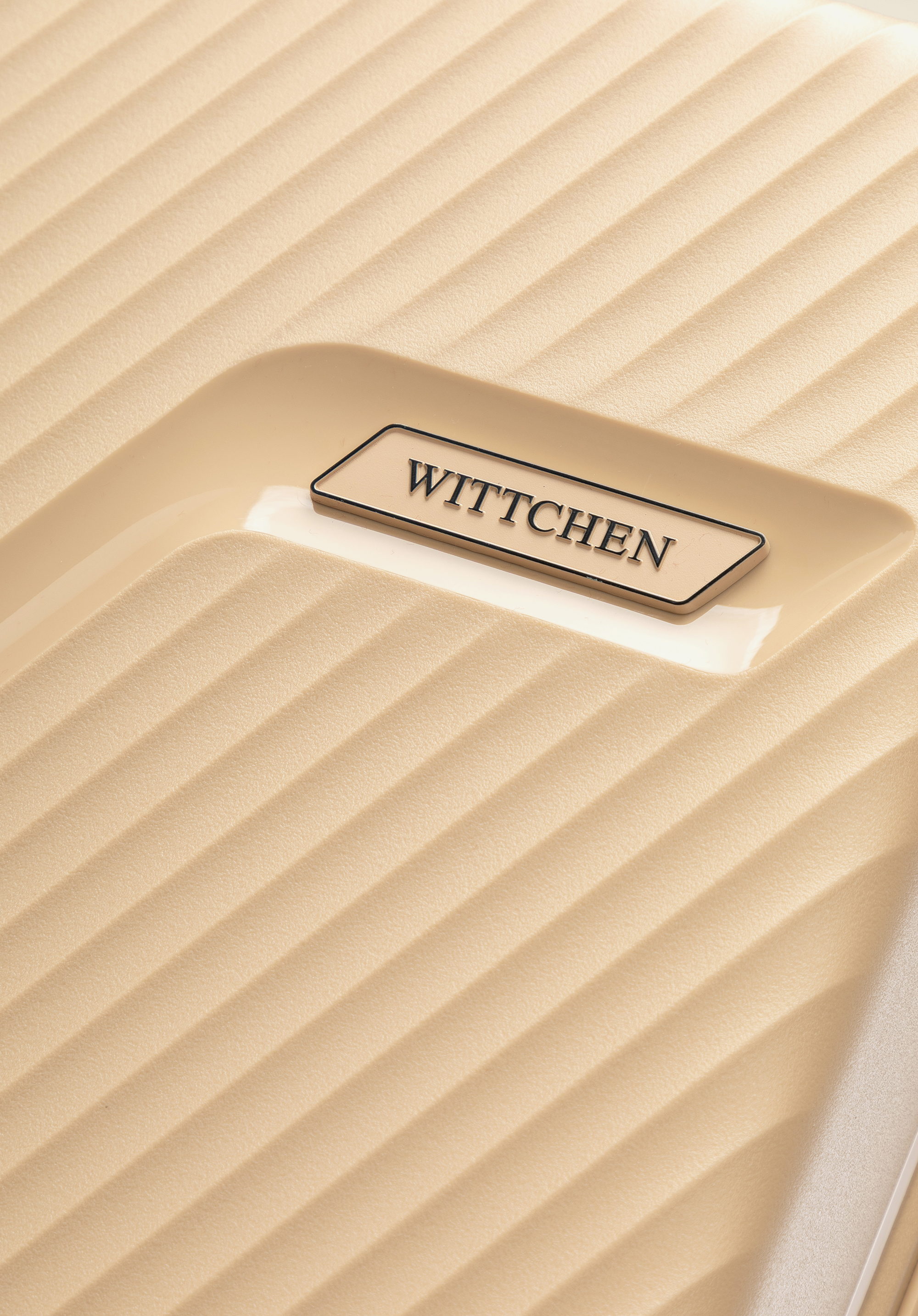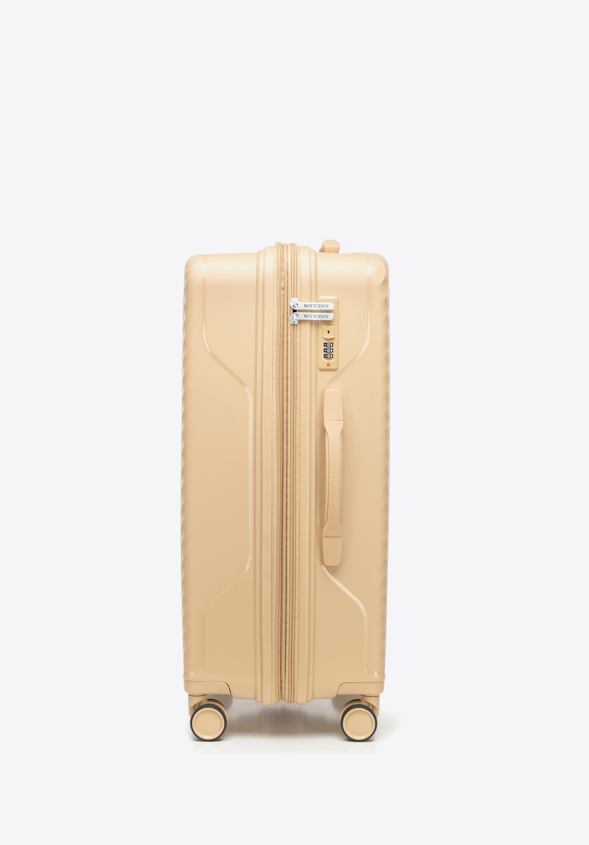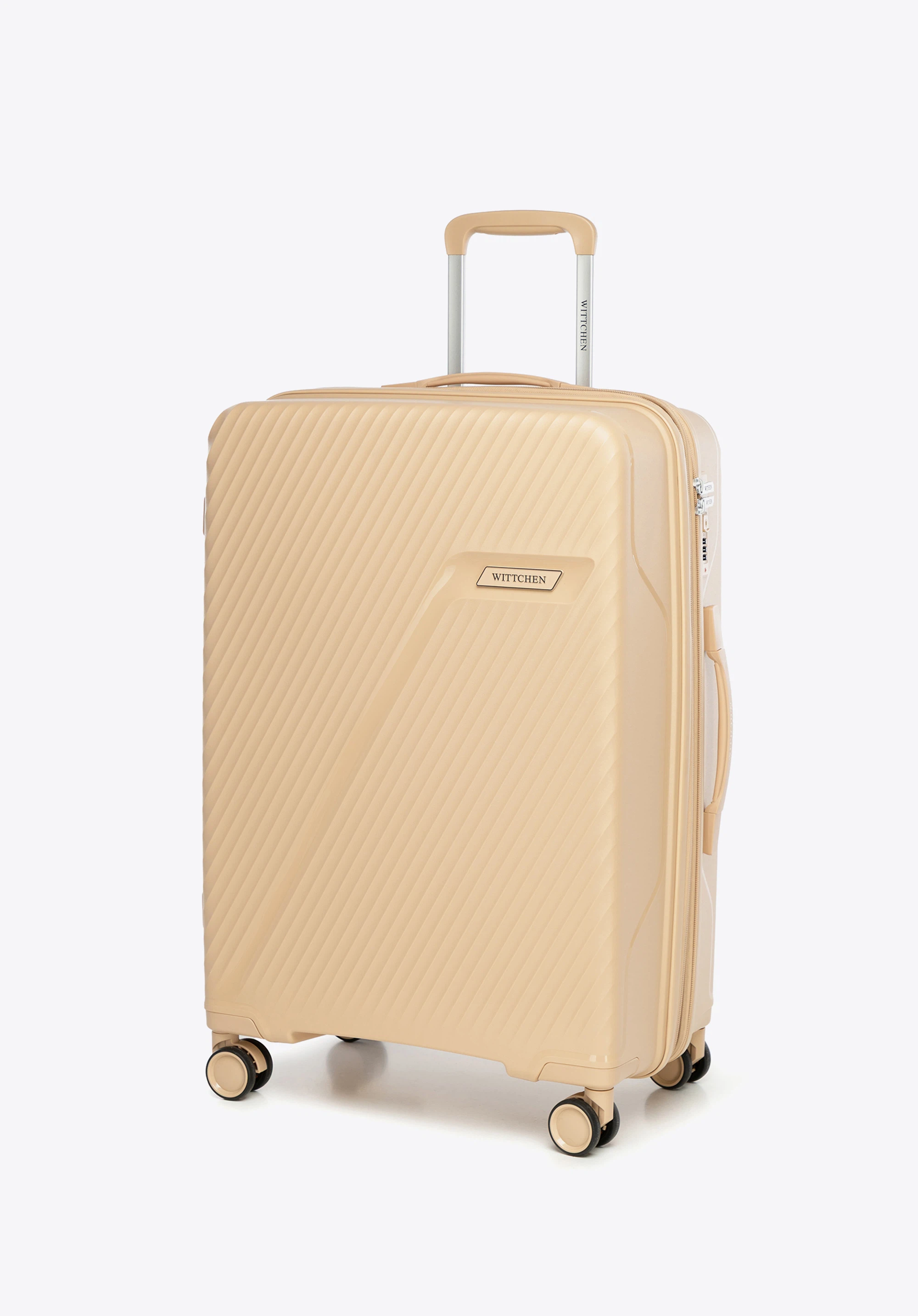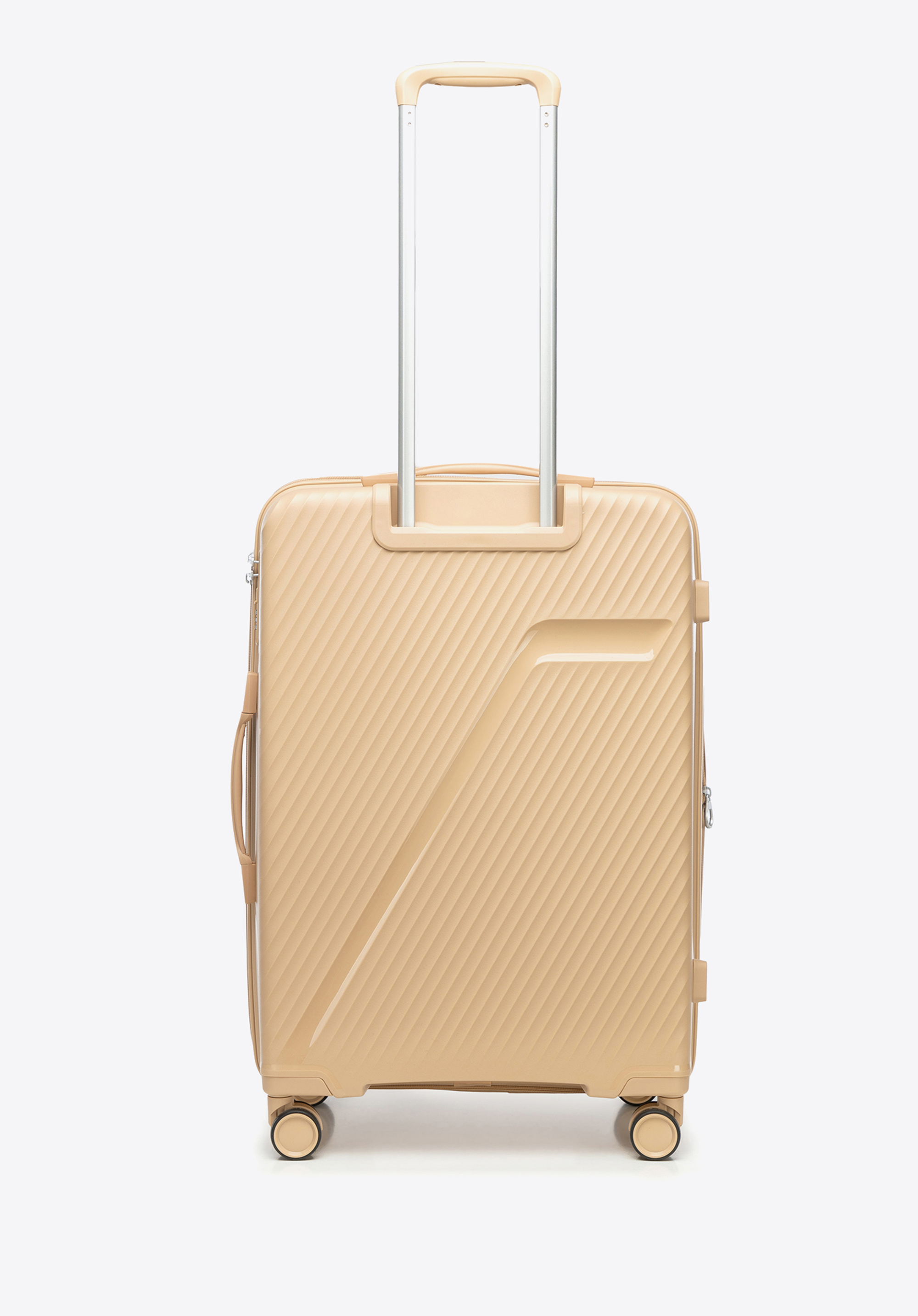Közepes méretű polipropilén bőrönd átlós csíkokkal Szín: bézs