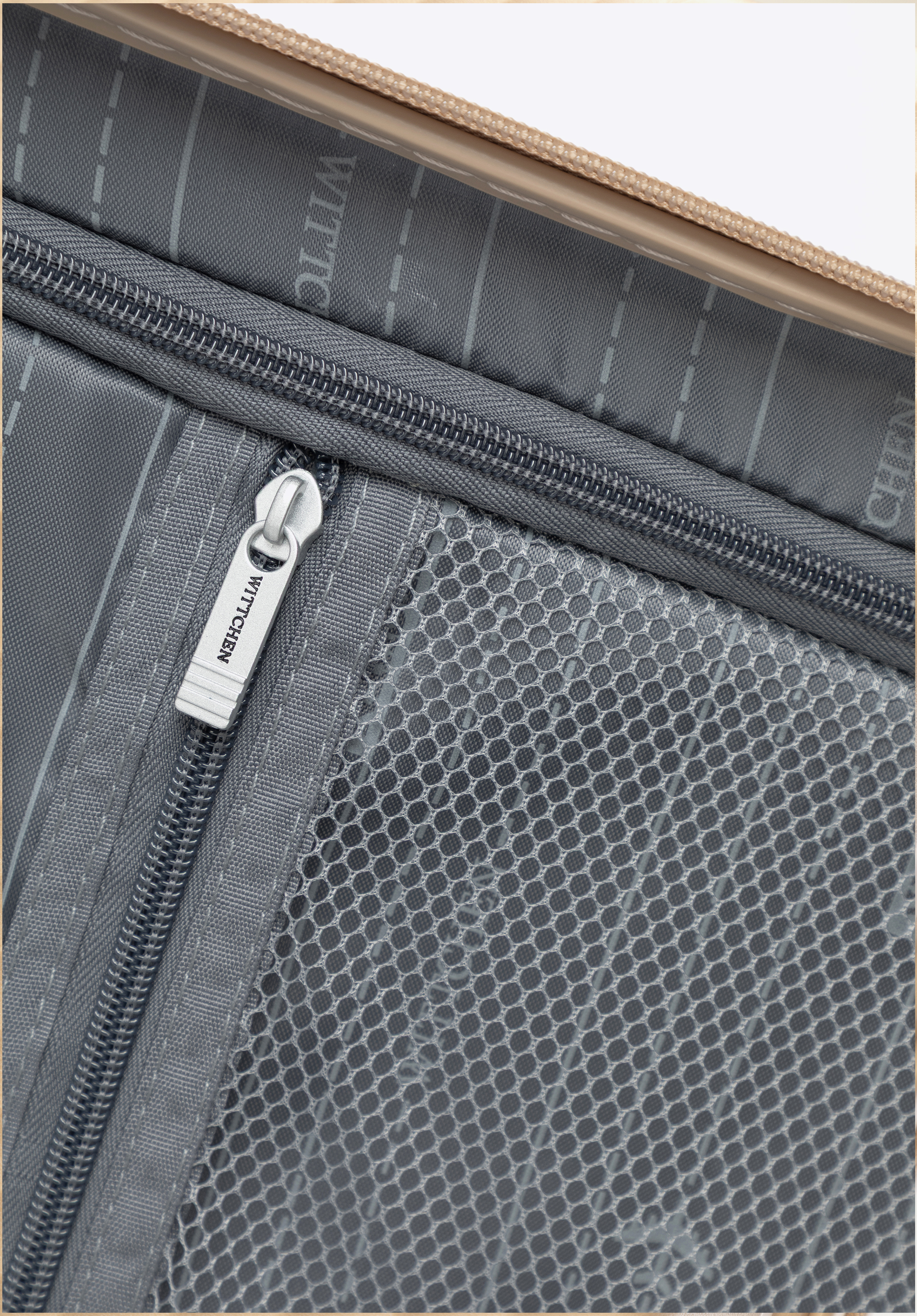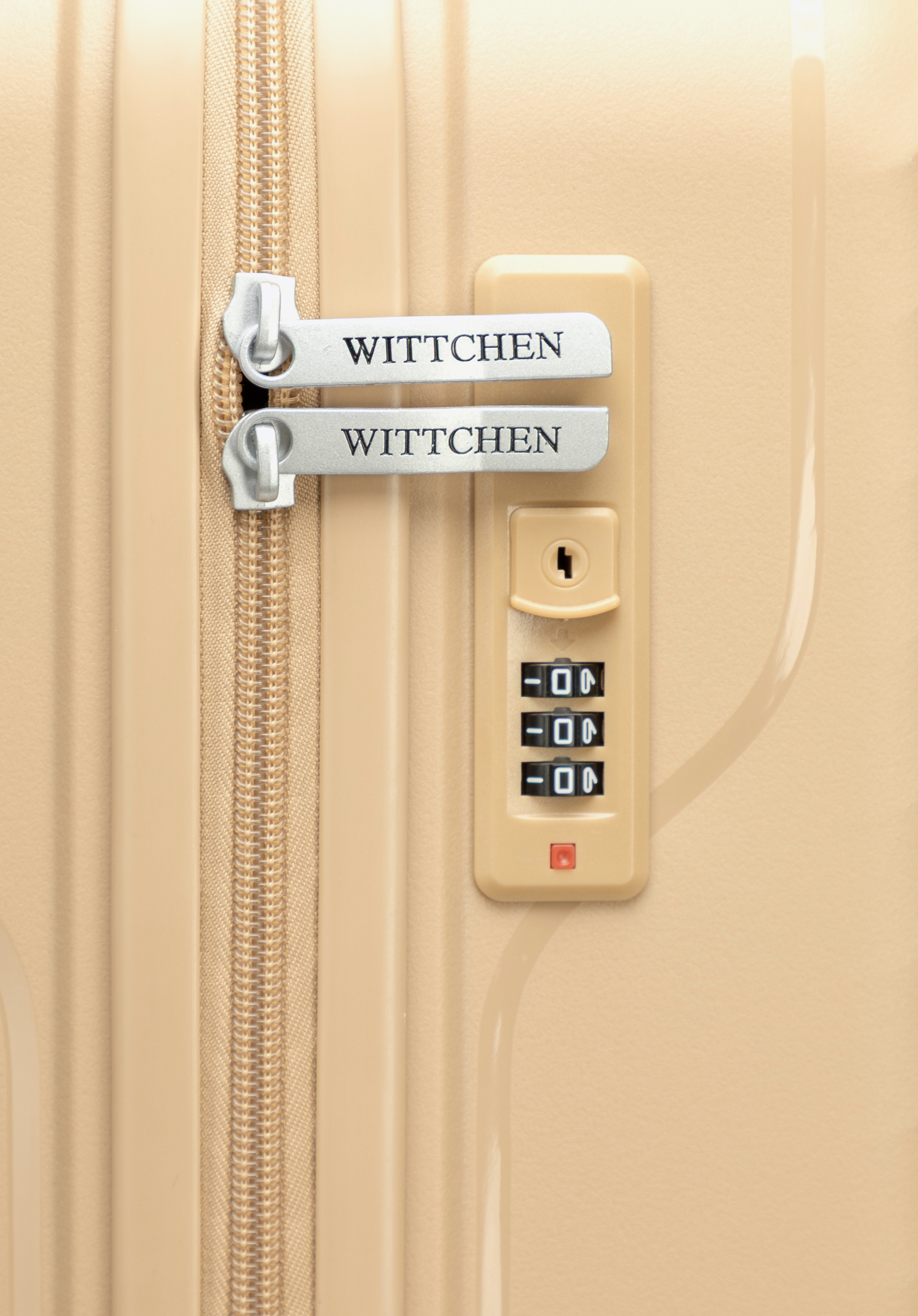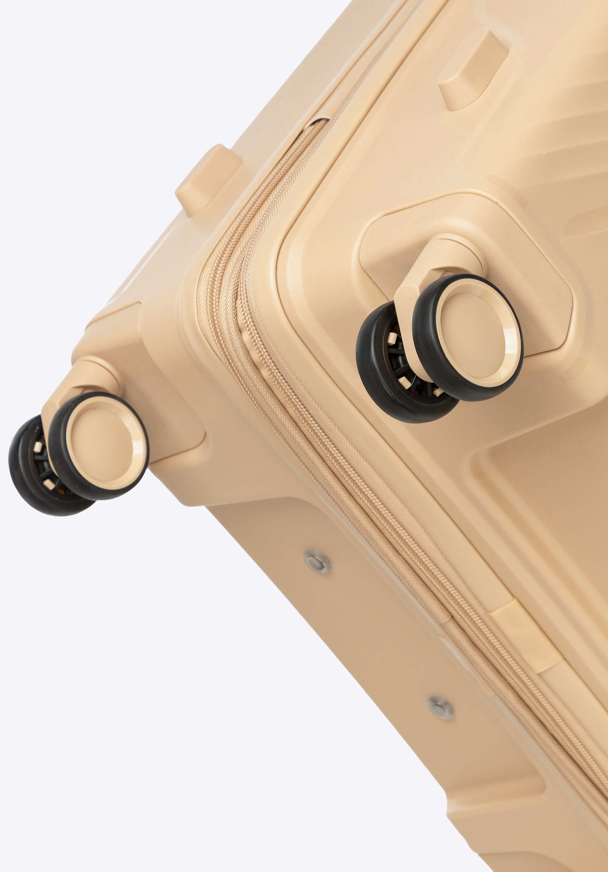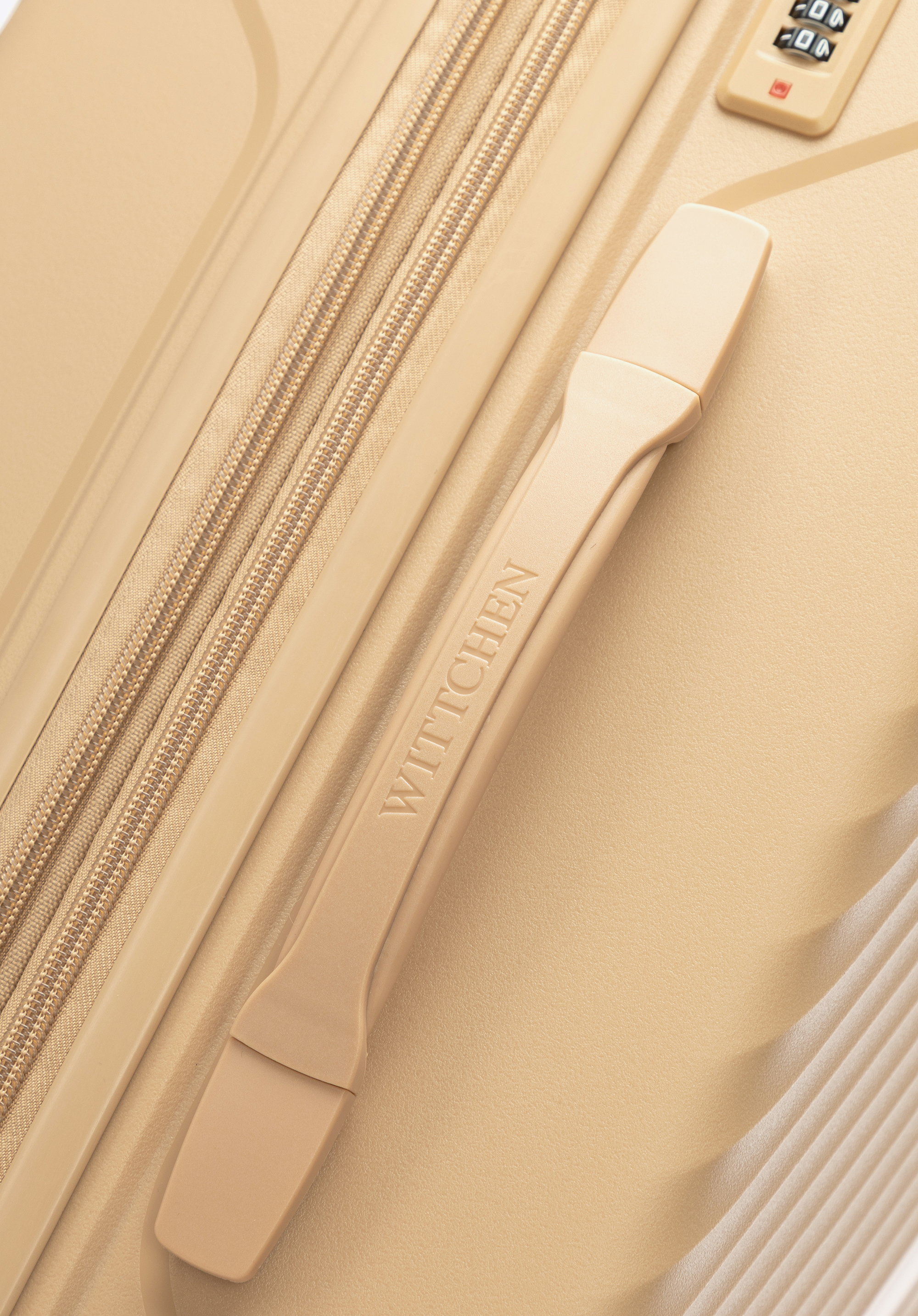 Közepes méretű polipropilén bőrönd átlós csíkokkal Szín: bézs