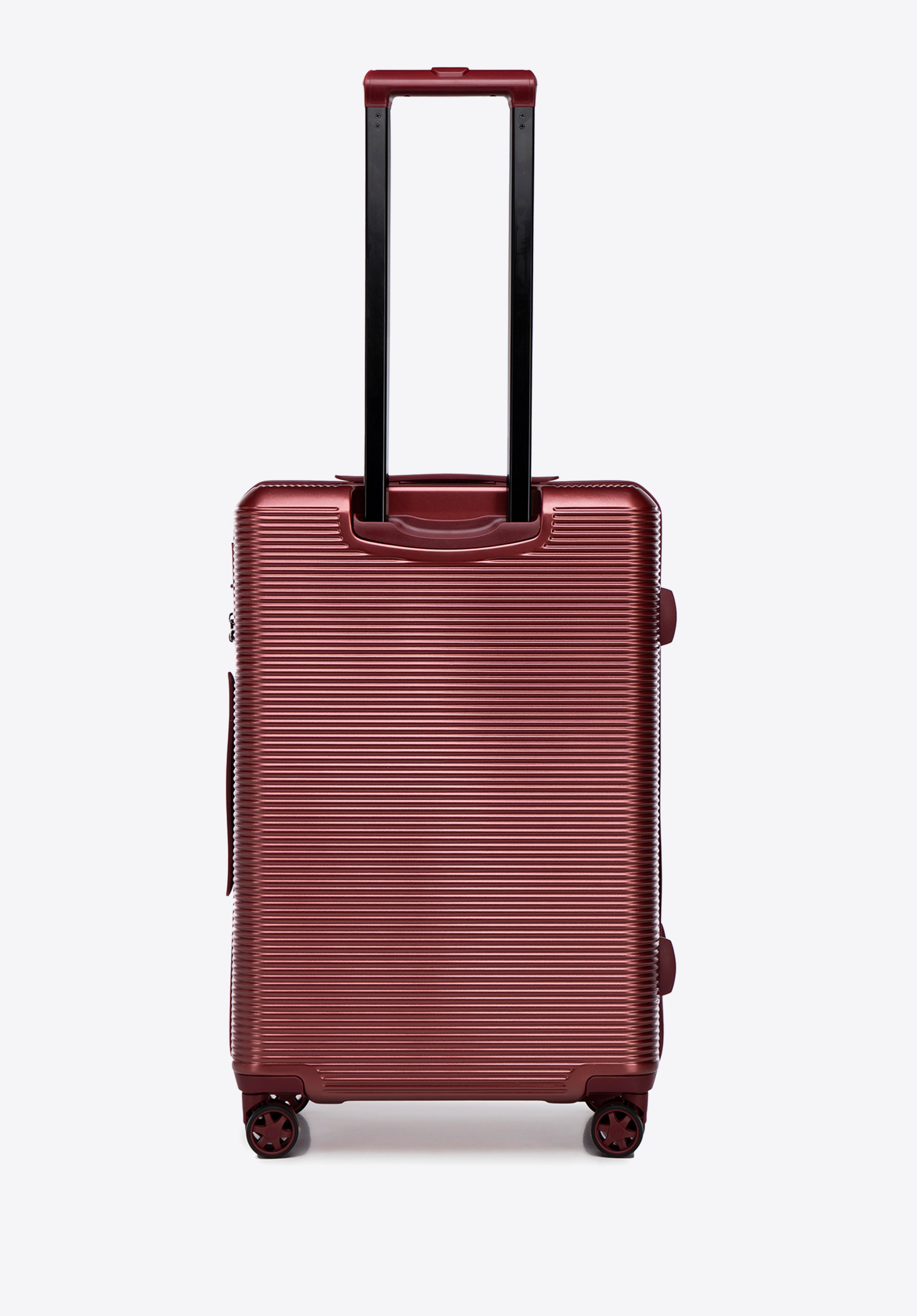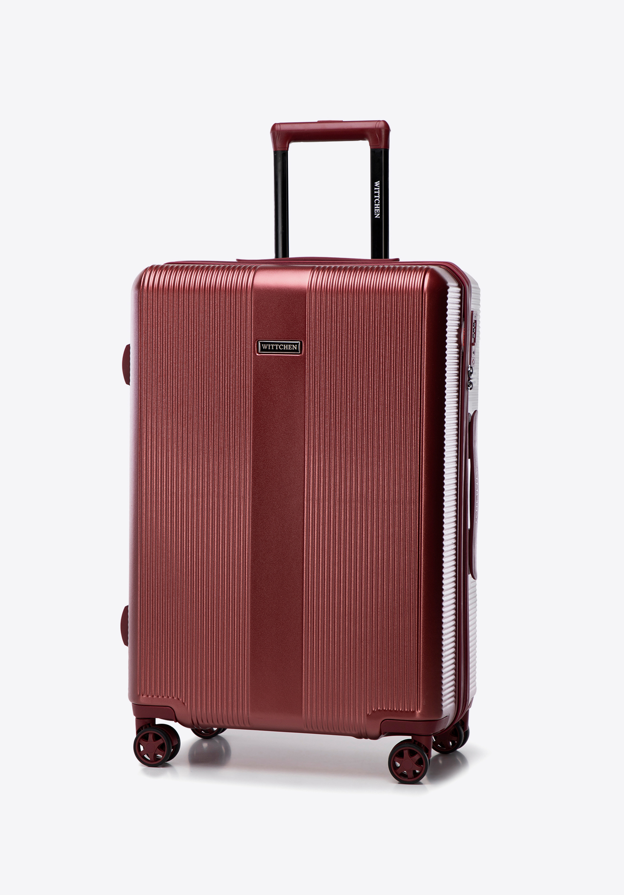 - Esztétika : A bőrönd modern kialakításával tűnik ki, függőleges csíkokkal , amelyek stílusos karaktert adnak. Egy sima csík a közepén finom varázst ad, harmonikus és elegáns megjelenést kölcsönözve.