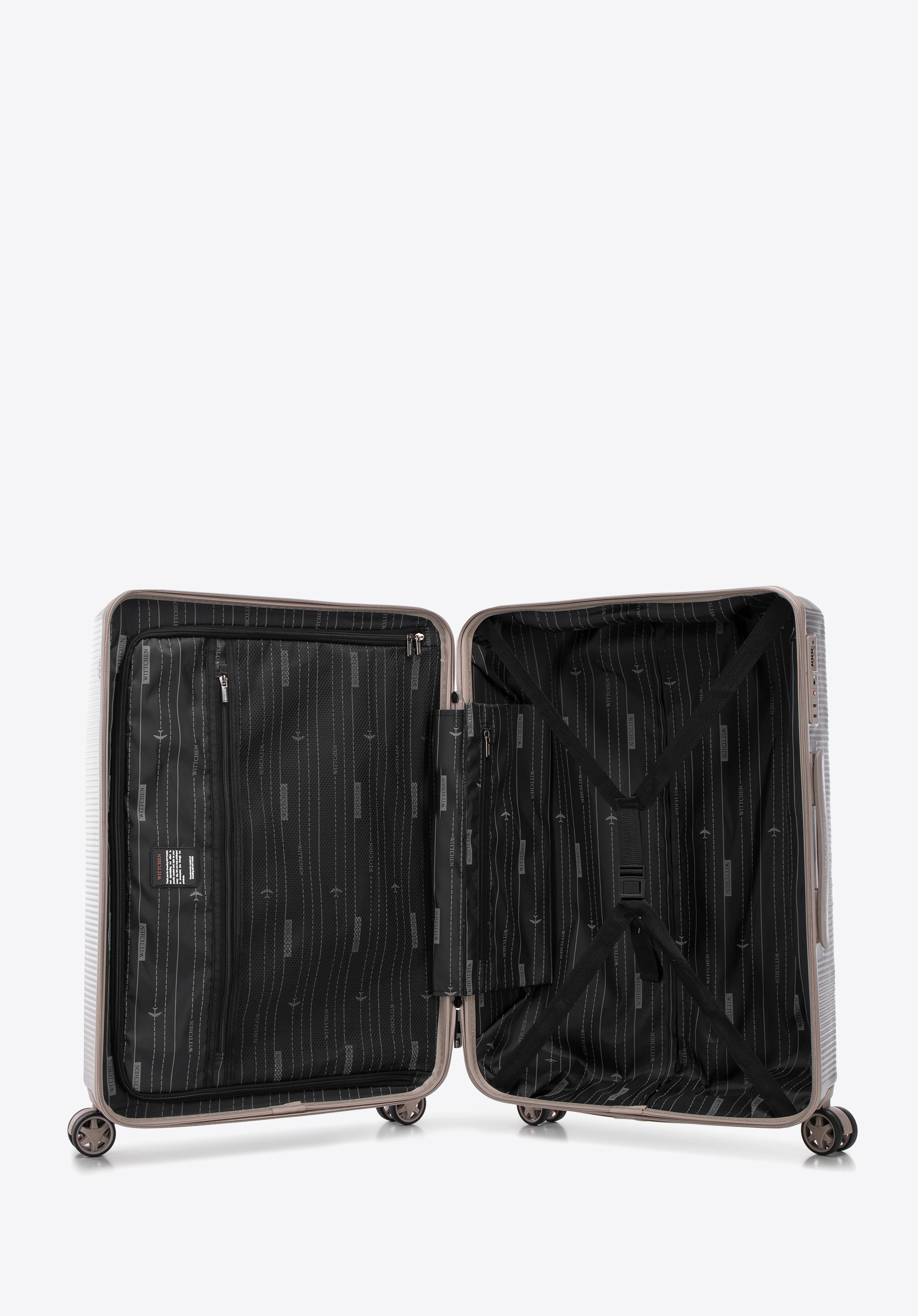 Közepes polikarbonát bőrönd függőleges dombornyomással Szín: pezsgő