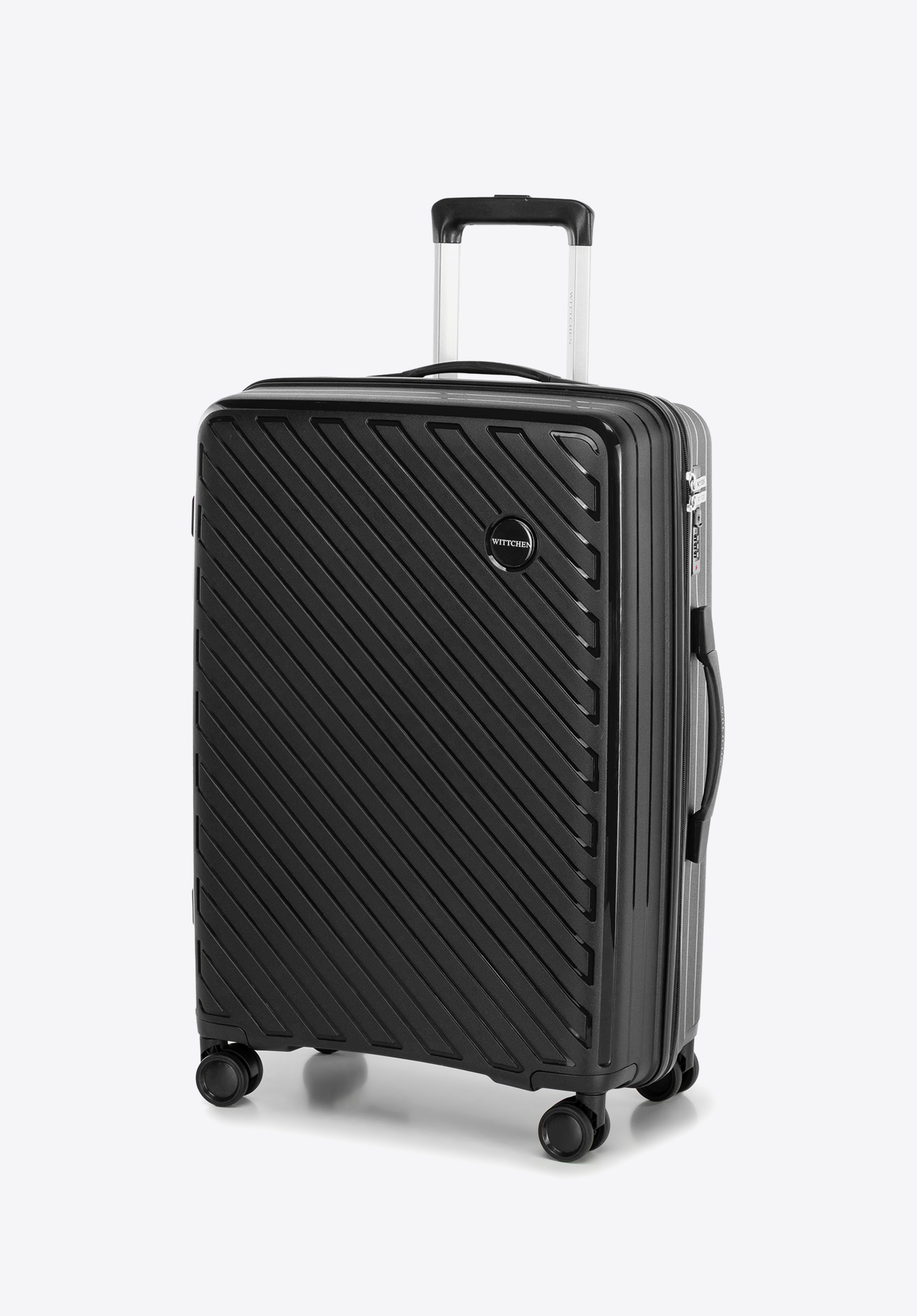 A WITTCHEN RAYA LINE kollekció közepes méretű bőröndje az elegáns dizájnt ötvözi a kiváló funkcionalitással. Könnyű polipropilénből készült, optimális védelmet nyújt holmidnak, modern megjelenése pedig minden utazáshoz eleganciát kölcsönöz. 4 dupla kerékkel, teleszkópos fogantyúval és praktikus belső funkciókkal, például kombinációs zárral felszerelve, kényelmes és biztonságos utazást biztosít.