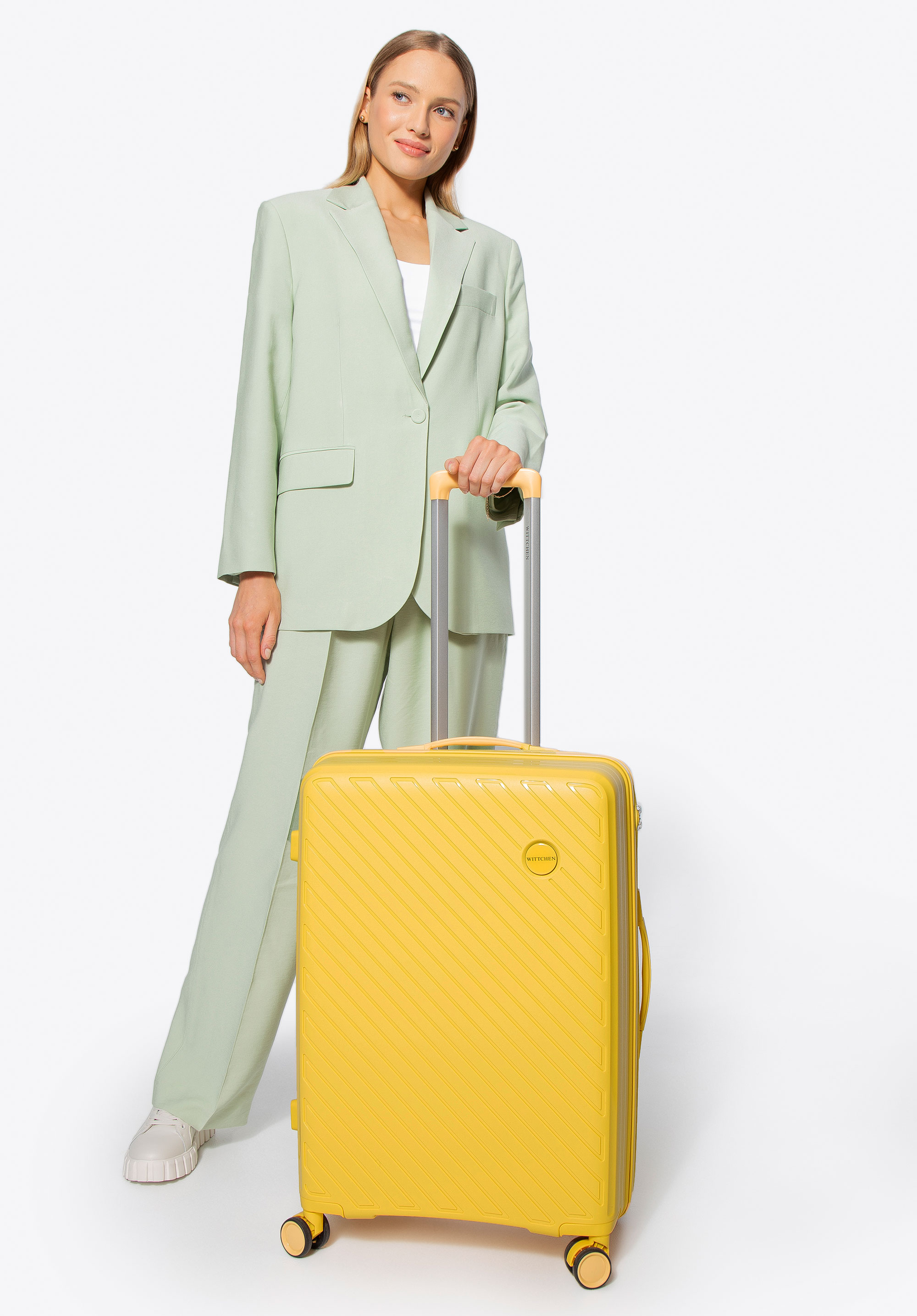 A WITTCHEN RAYA LINE kollekció közepes méretű bőröndje az elegáns dizájnt ötvözi a kiváló funkcionalitással. Könnyű polipropilénből készült, optimális védelmet nyújt holmidnak, modern megjelenése pedig minden utazáshoz eleganciát kölcsönöz. 4 dupla kerékkel, teleszkópos fogantyúval és praktikus belső funkciókkal, például kombinációs zárral felszerelve, kényelmes és biztonságos utazást biztosít.