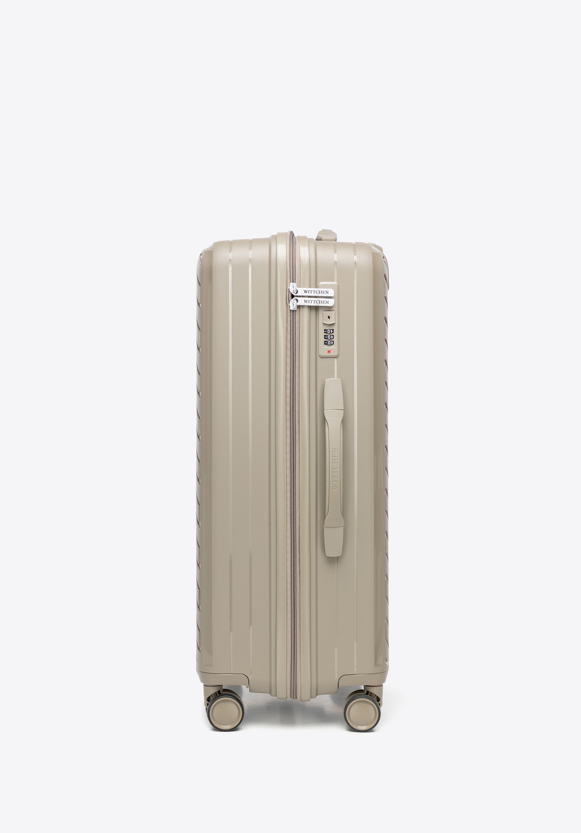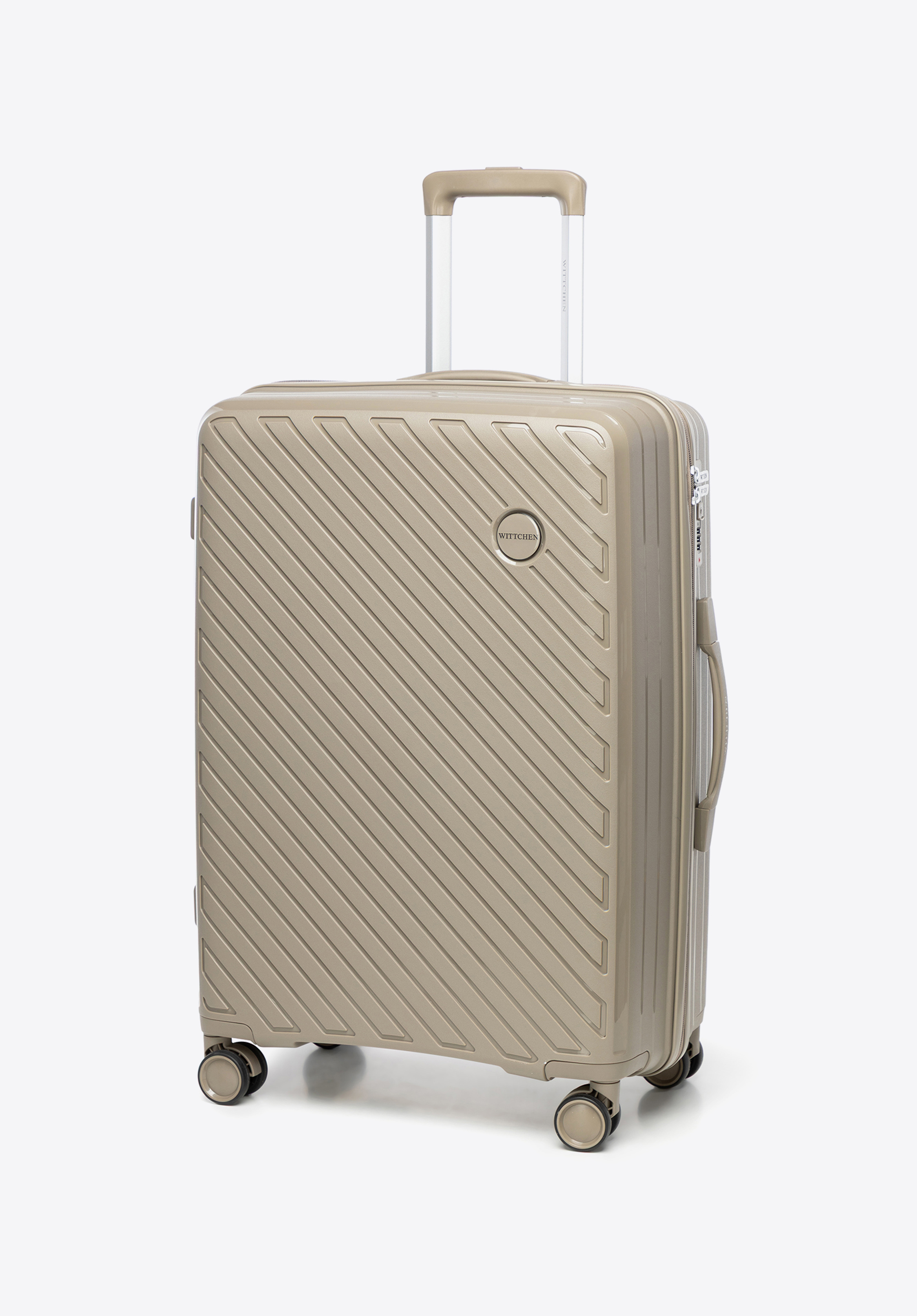 A WITTCHEN RAYA LINE kollekció közepes méretű bőröndje az elegáns dizájnt ötvözi a kiváló funkcionalitással. Könnyű polipropilénből készült, optimális védelmet nyújt holmidnak, modern megjelenése pedig minden utazáshoz eleganciát kölcsönöz. 4 dupla kerékkel, teleszkópos fogantyúval és praktikus belső funkciókkal, például kombinációs zárral felszerelve, kényelmes és biztonságos utazást biztosít.