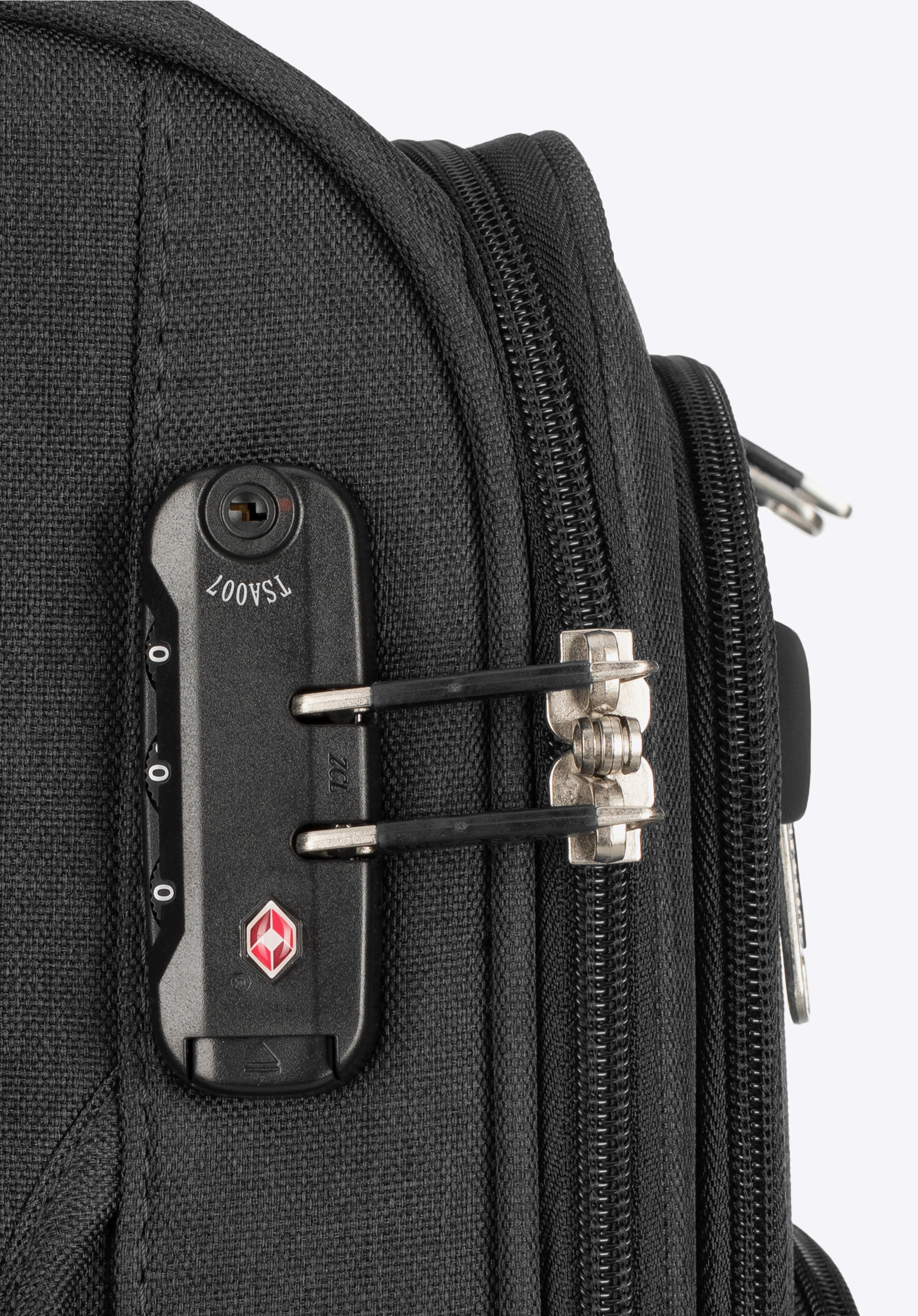 - TSA kóddal ellátott zár - nagyon hasznos a vámhatósági poggyászellenőrzés esetén - garantálja a bőrönd non-invazív nyitását és visszazárását anélkül, hogy a zárat megsértené;