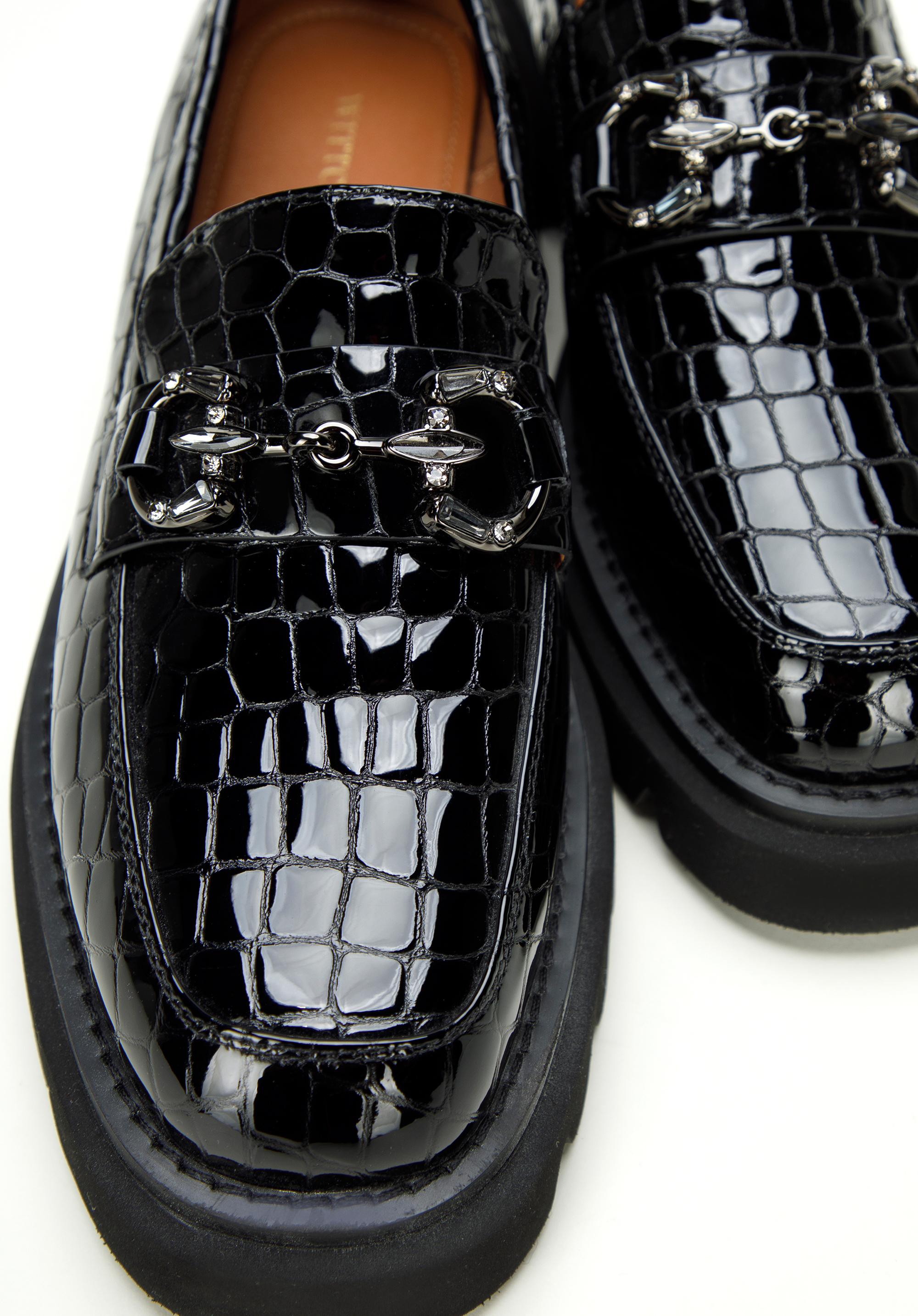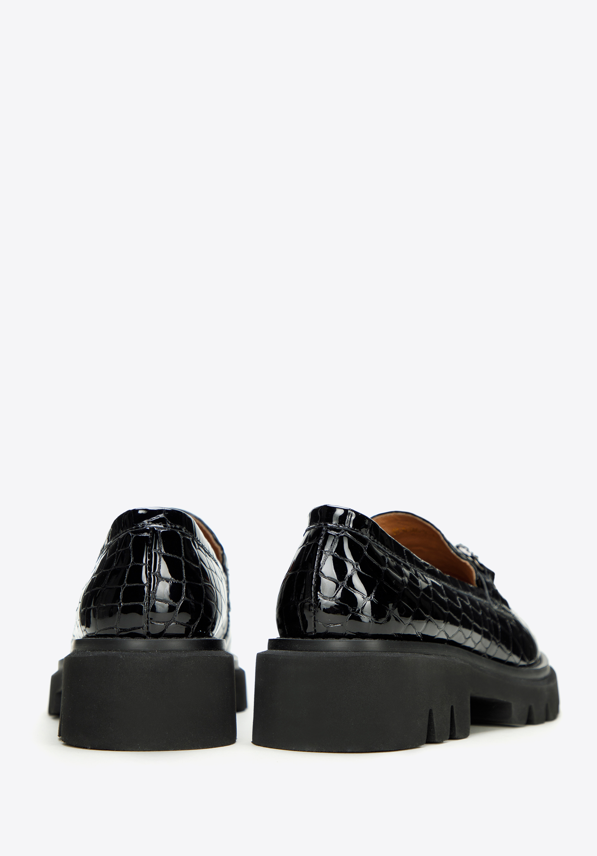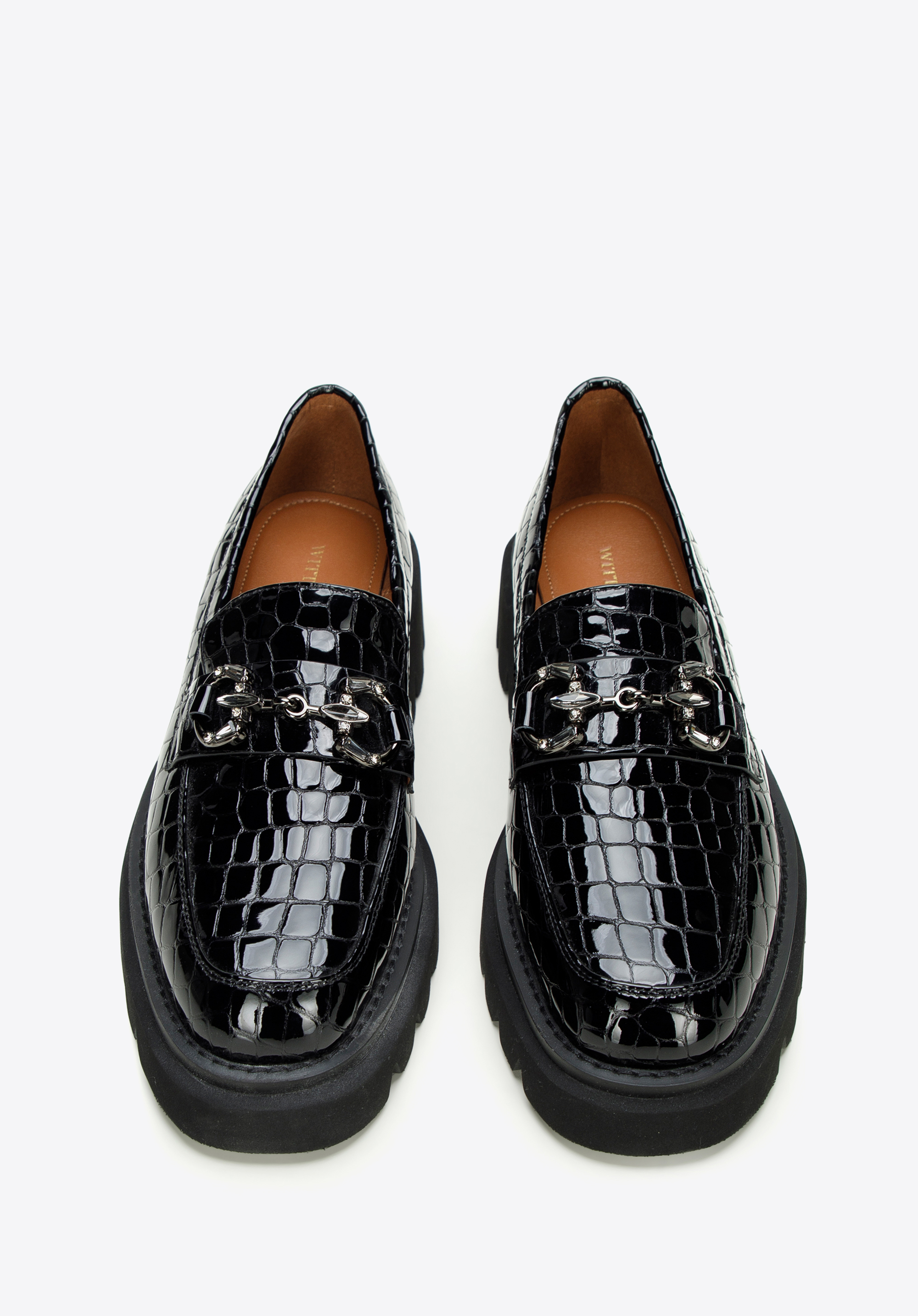 Sok figyelmet vonz majd ezekben az eredeti mokaszinokban. Elegáns lakkbőrből készültek . A kristályokkal díszített csat ragyogást ad. A platformnak köszönhetően több órán keresztül, szinte minden körülmény között kényelmesen viselheted őket. Viseld kedvenc miniruháddal vagy kombináld klasszikus kabáttal és farmerrel a mindennapi viselethez. A fényes platformos csatokkal ellátott női lakkcipő divatos kiegészítő, amelyet munka közben és után is viselhetsz – minden helyzetben stílusosan fogsz kinézni.