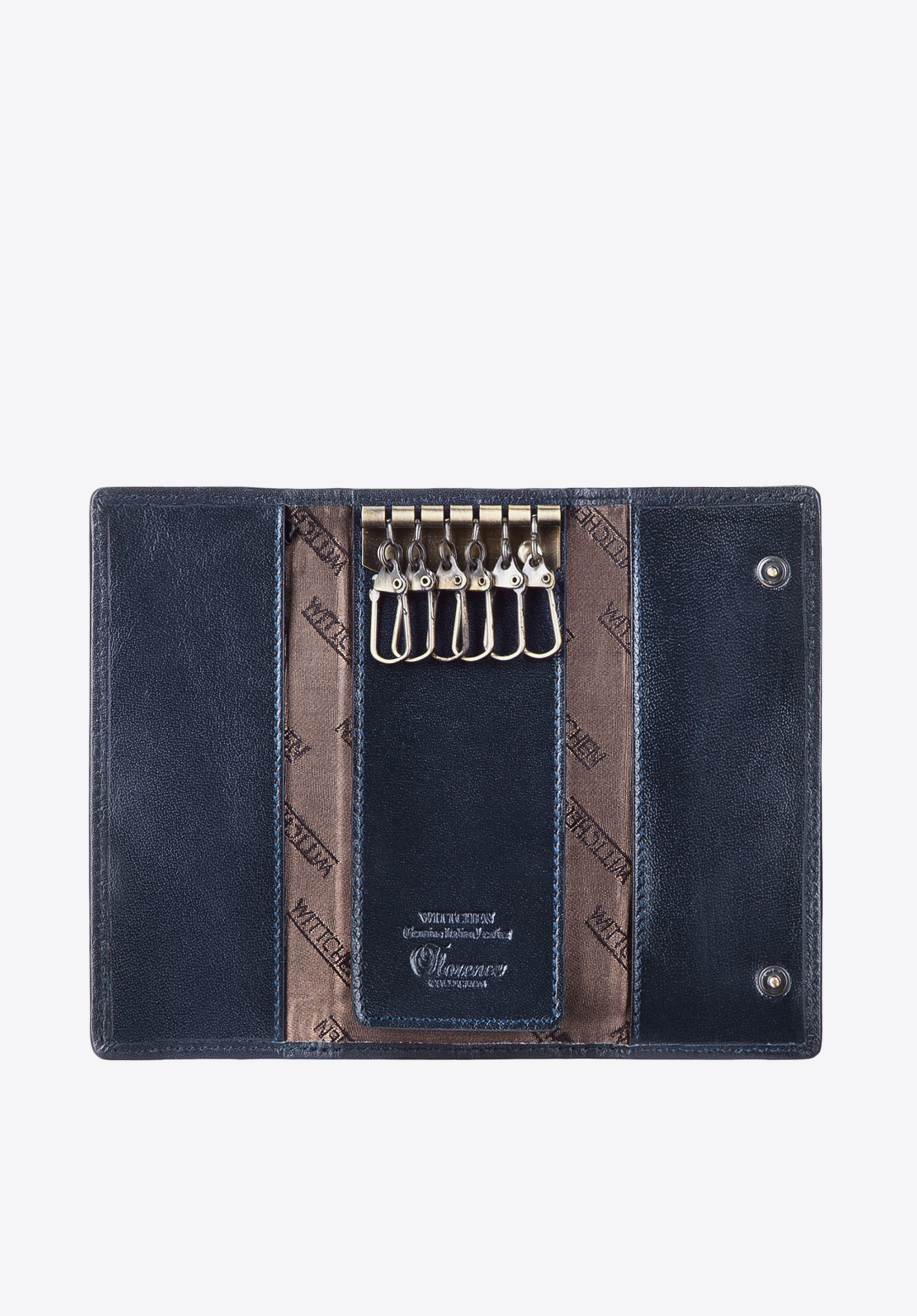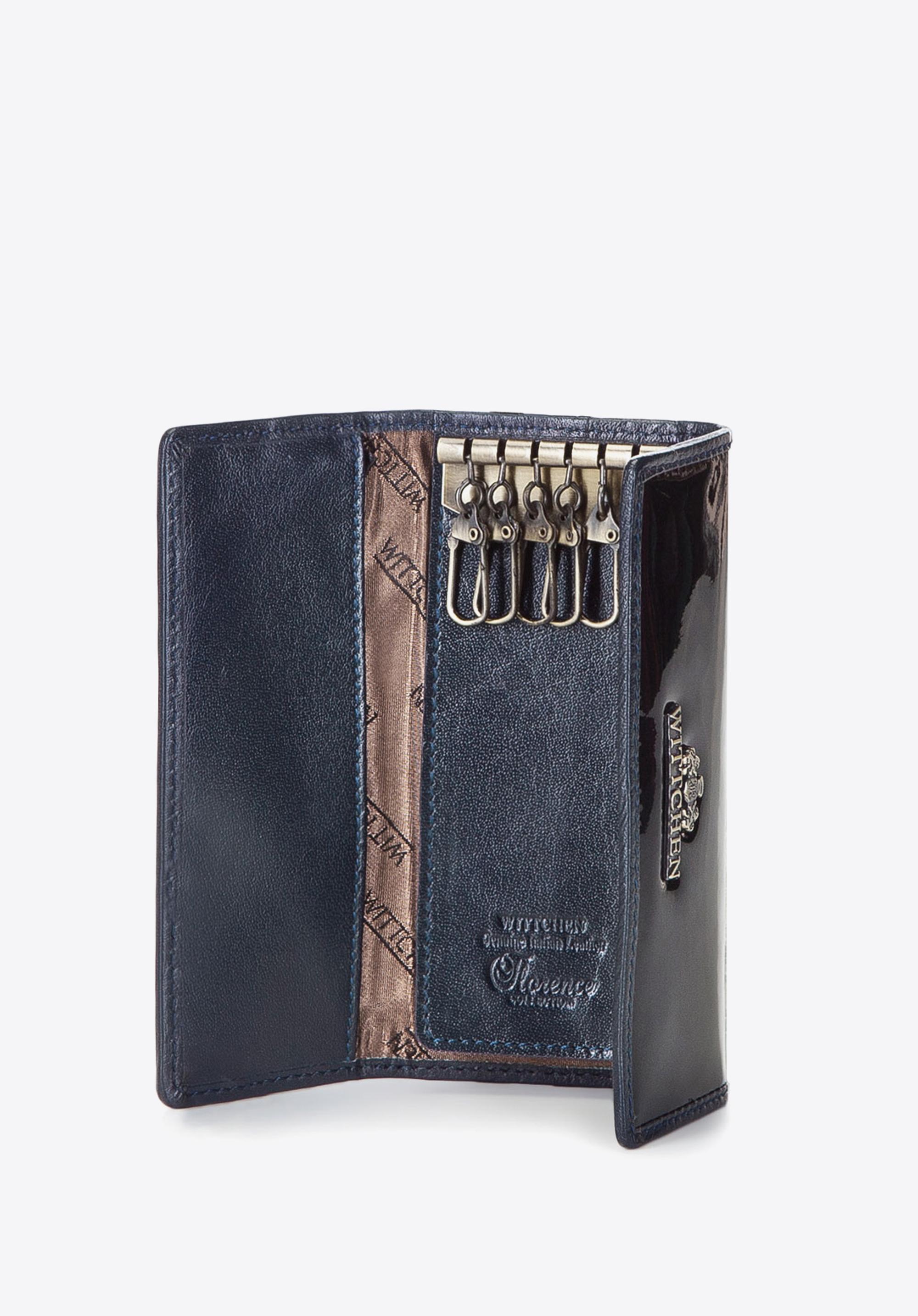 A lakkozott kulcstartó a funkcionalitás szinonimája elegáns kivitelben. Kívülről a modell fényes lakkbőrrel rendelkezik, míg a belső teret matt szemcsés bőr fedi, látható erezetekkel.