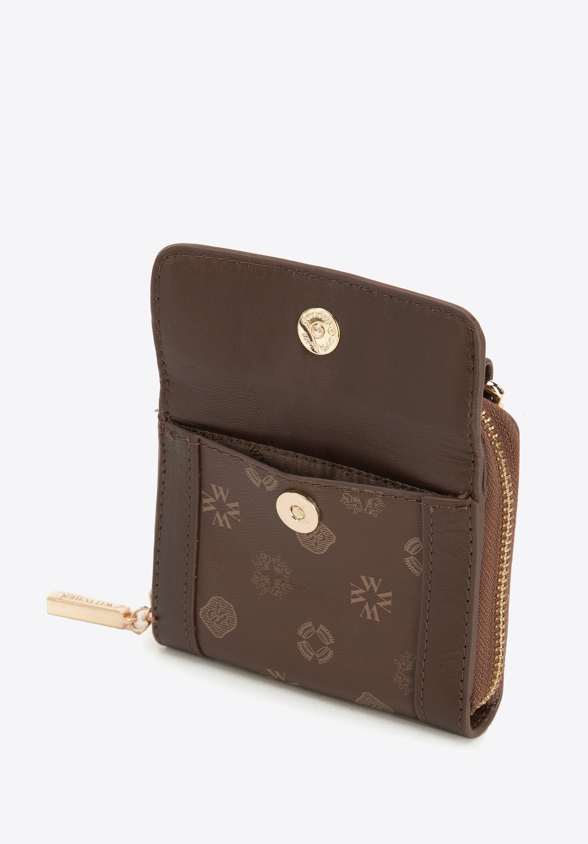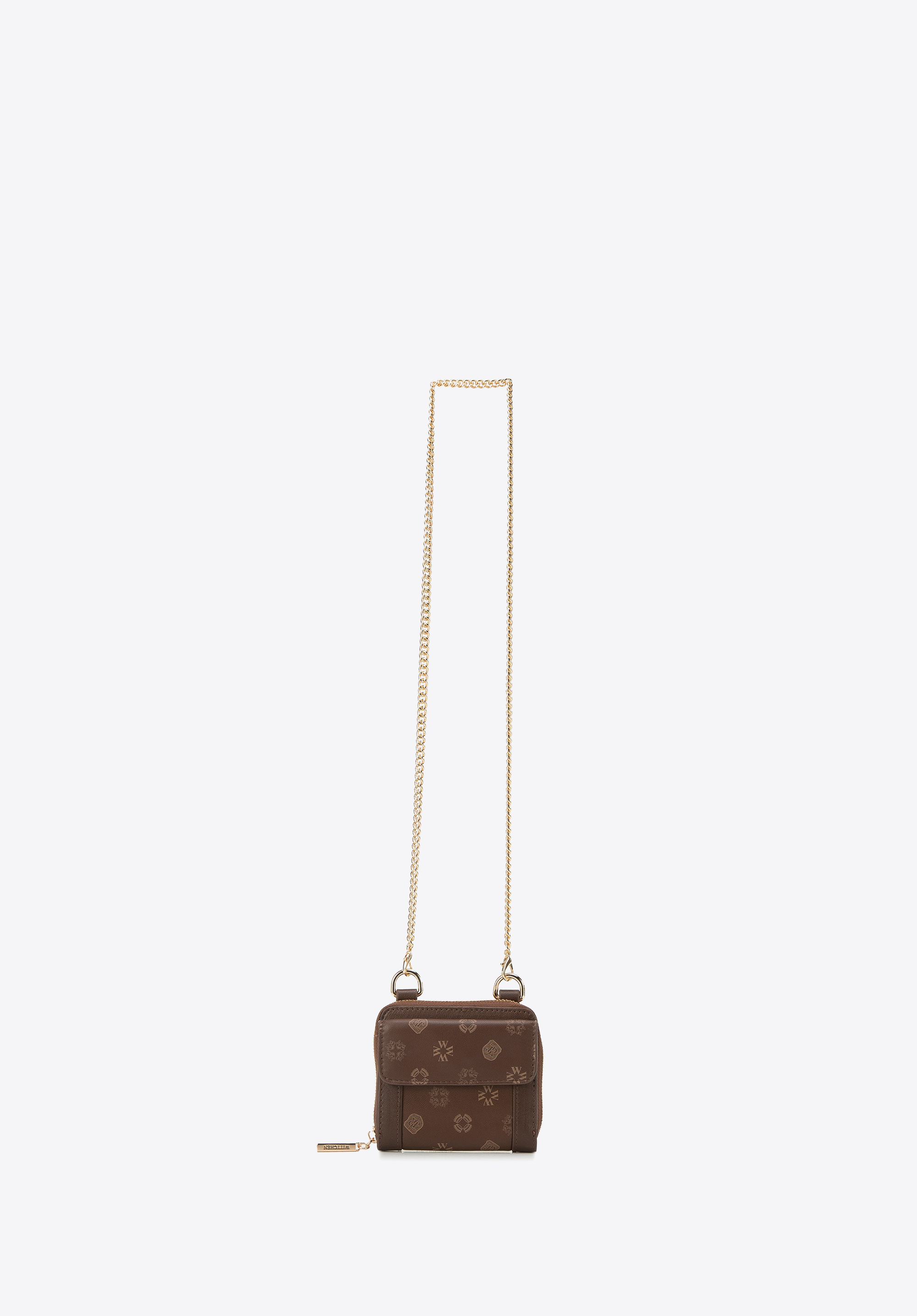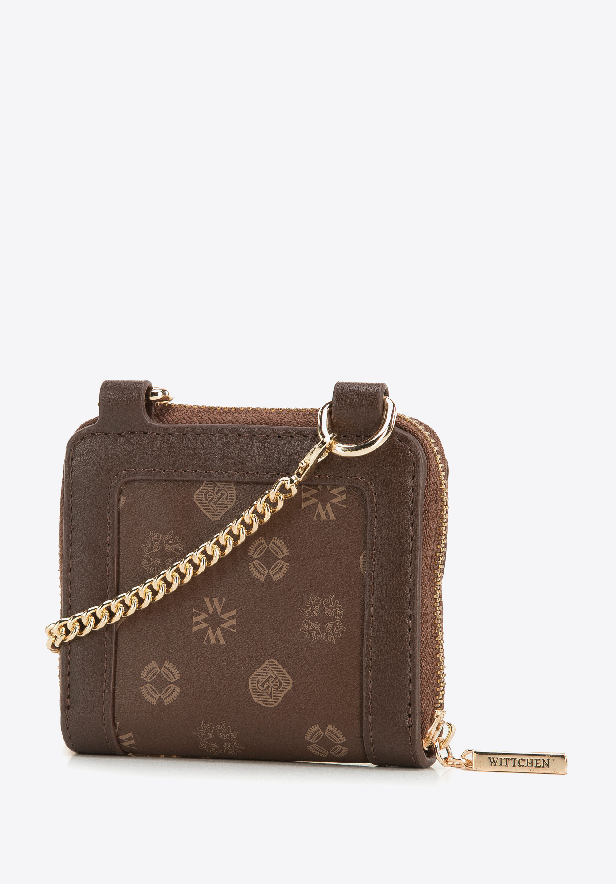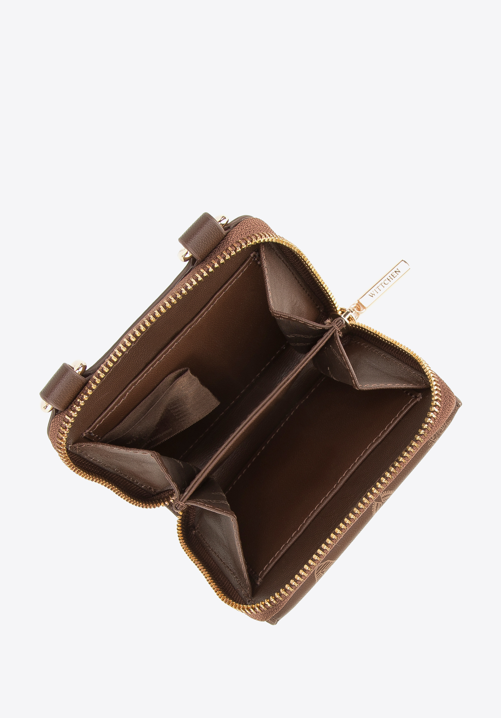 Ezt az egyedi pénztárcát hordhatod úgy is, mint egy kistáskát, a hozzácsatolt, fényes láncnak köszönhetően. WITTCHEN monogramos kiváló minőségű valódi bőrből készült, így, ez egy évekre szóló kiegészítő. Az arany részletek és lánc adnak neki csillogást, aminek használatával (lánc) egészen új karaktert kap. Belül aprópénzt és két hitelkártyát tárolhatsz, a mágnessel lezárt külső zsebbe pedig elrejthetsz például egy menetjegyet. A pénztárcát minden nap hordhatod, magaddal viheted, mint kistáskát egy esti programra vagy moziba. Ez a láncos női bőr pénztárca minden olyan nő számára hasznos lesz, aki szereti az egyedi kiegészítőket.