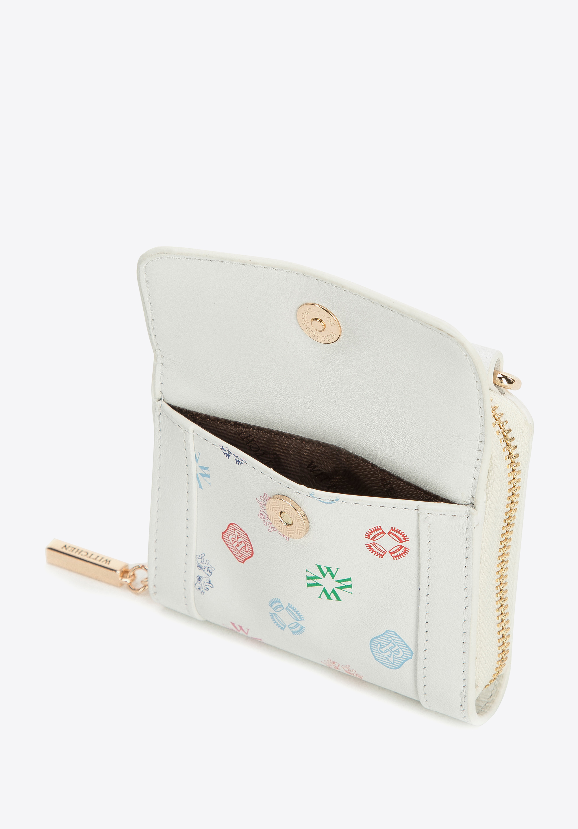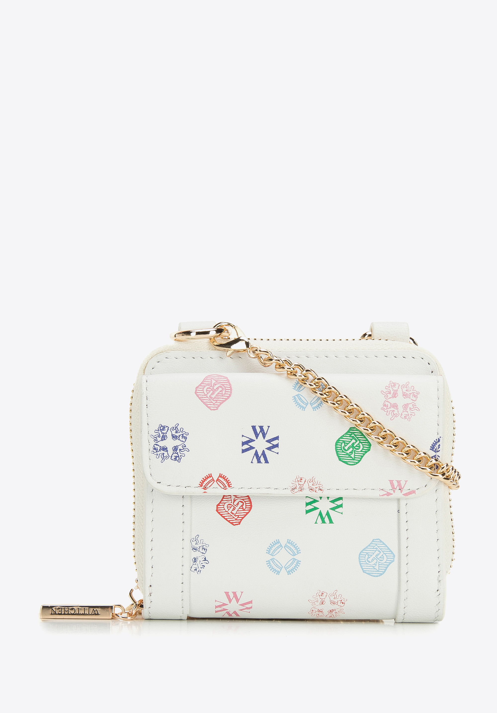 Ezt az egyedi pénztárcát hordhatod úgy is, mint egy kistáskát, a hozzácsatolt, fényes láncnak köszönhetően. WITTCHEN monogramos kiváló minőségű valódi bőrből készült, így, ez egy évekre szóló kiegészítő. Az arany részletek és lánc adnak neki csillogást, aminek használatával (lánc) egészen új karaktert kap. Belül aprópénzt és két hitelkártyát tárolhatsz, a mágnessel lezárt külső zsebbe pedig elrejthetsz például egy menetjegyet. A pénztárcát minden nap hordhatod, magaddal viheted, mint kistáskát egy esti programra vagy moziba. Ez a láncos női bőr pénztárca minden olyan nő számára hasznos lesz, aki szereti az egyedi kiegészítőket.