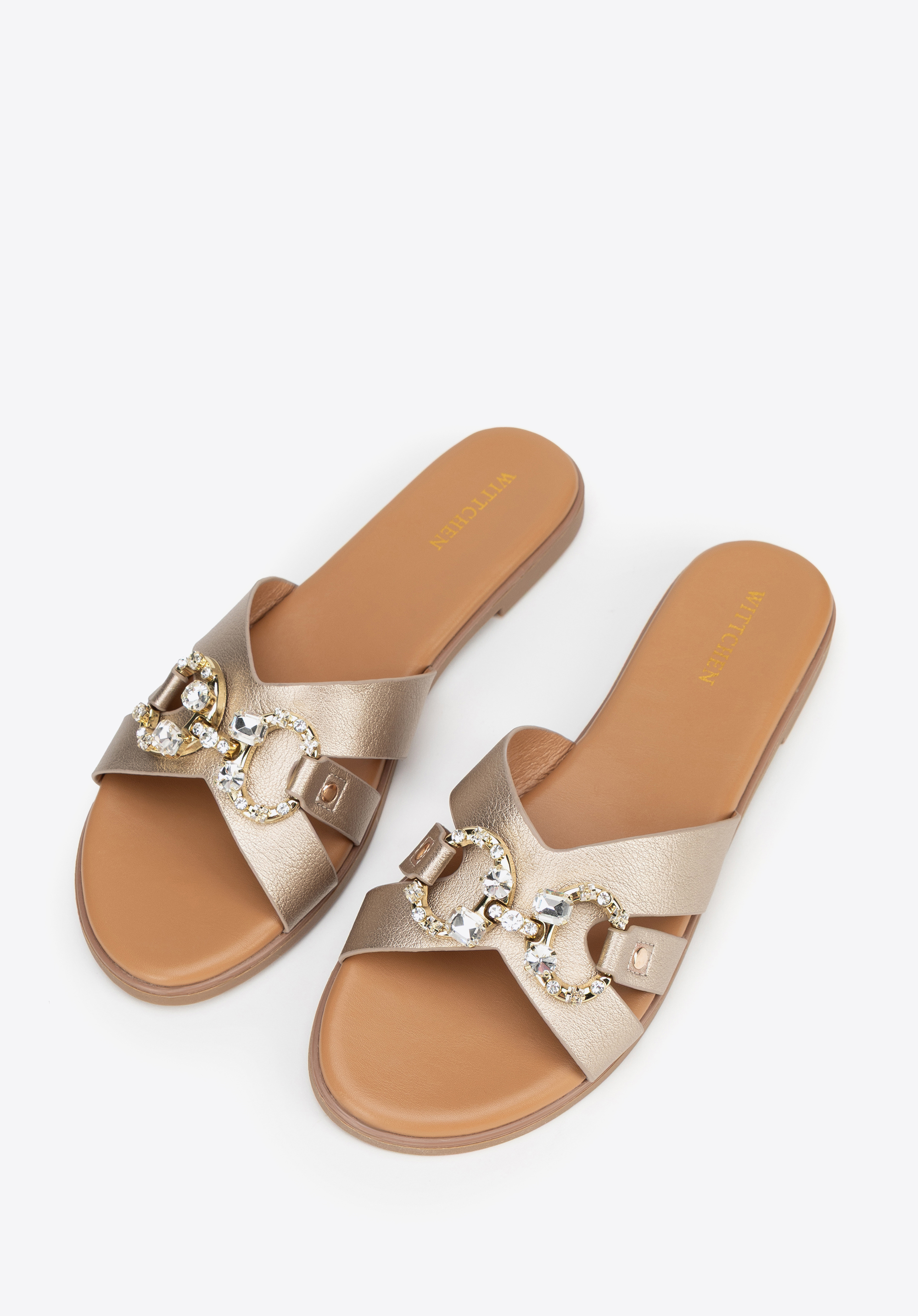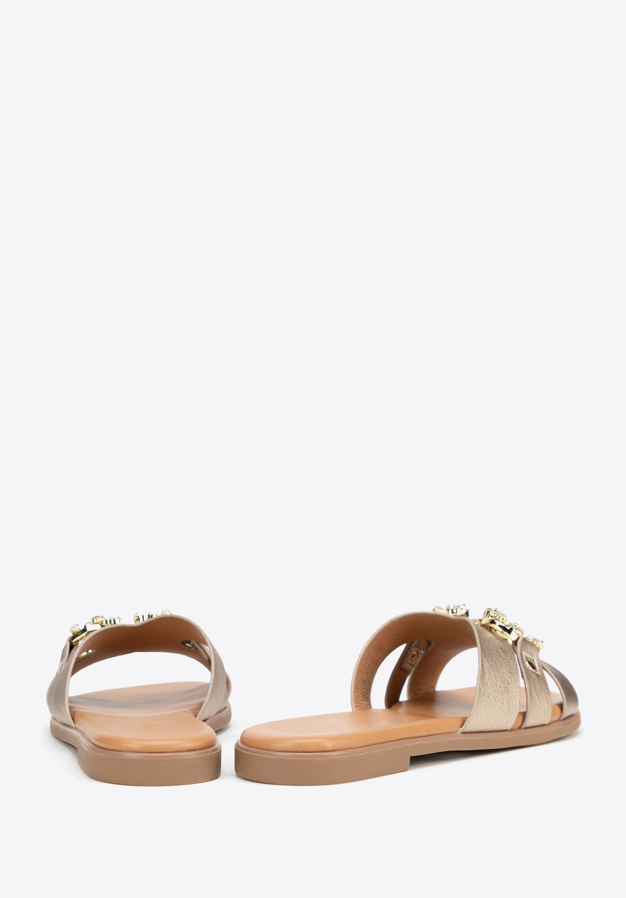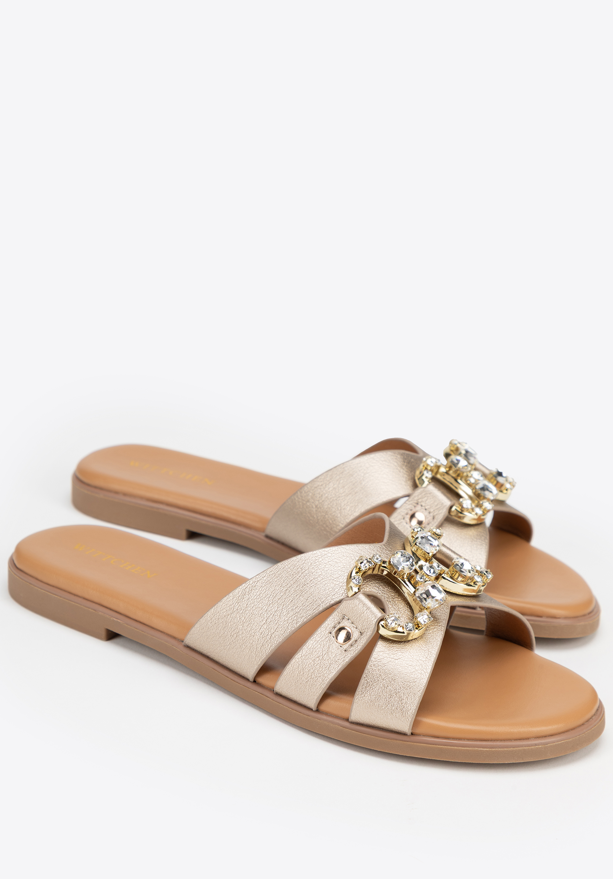 - Dekoratív, fényes csat: Szemet gyönyörködtető, és alkalmassá teszi a papucsot a mindennapi viselésre.