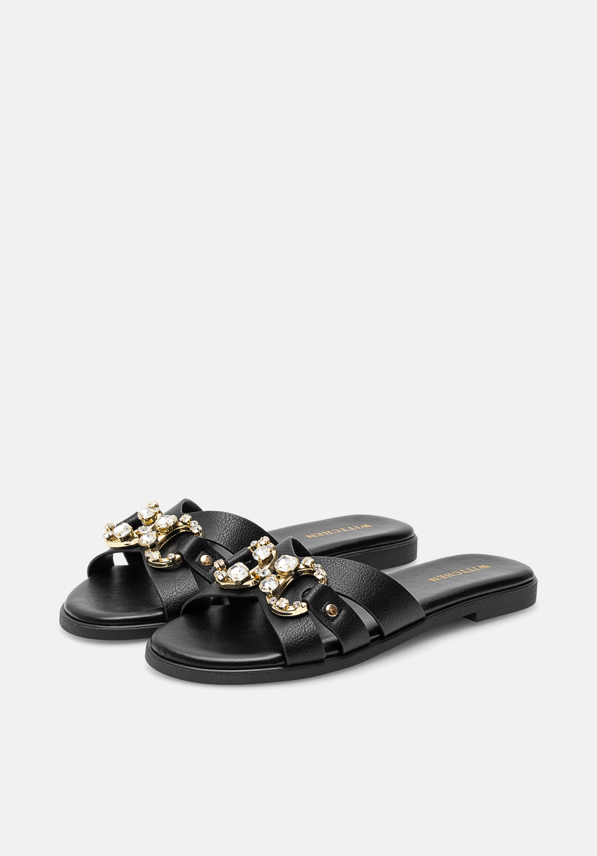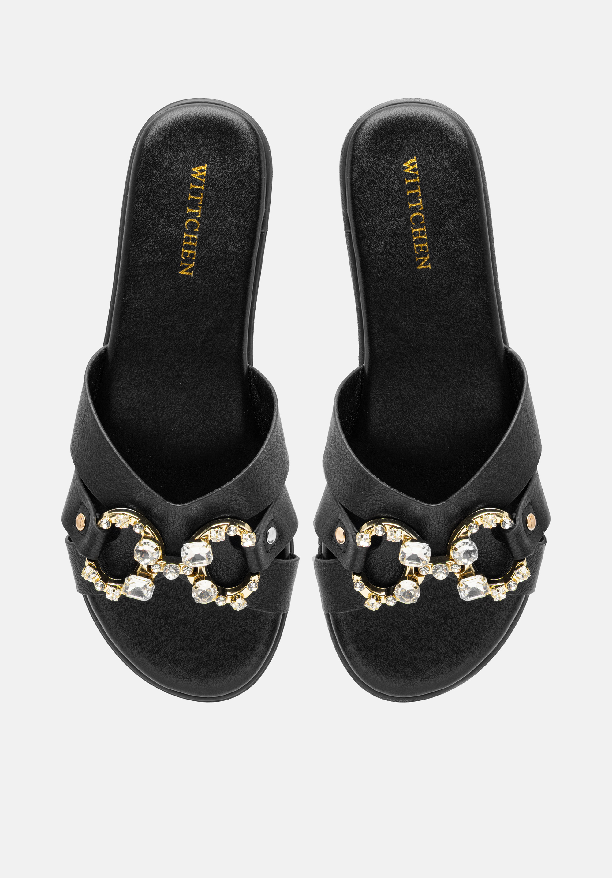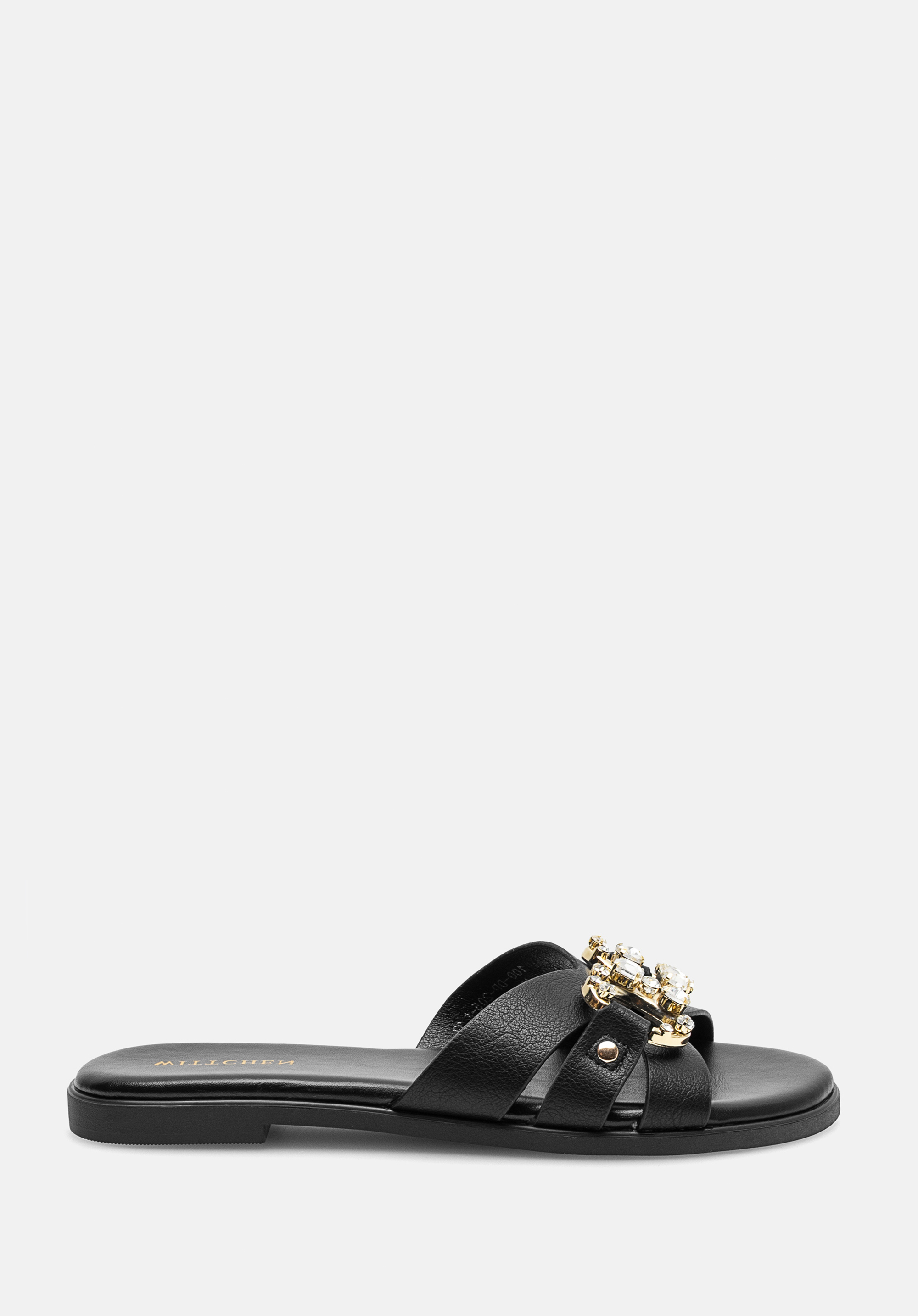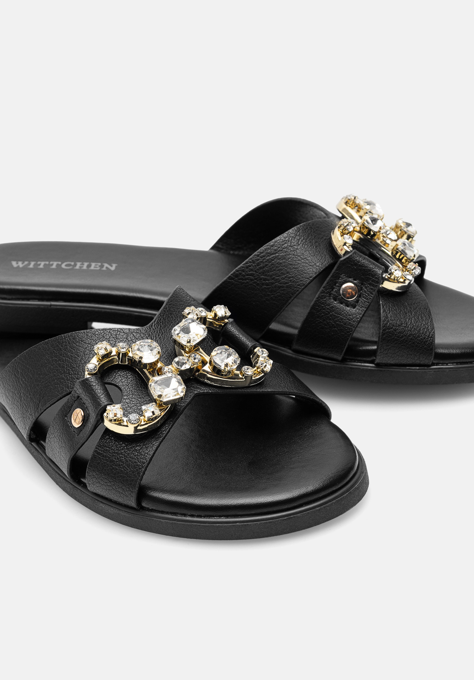 Lapos sarkú női papucs díszcsattal fekete