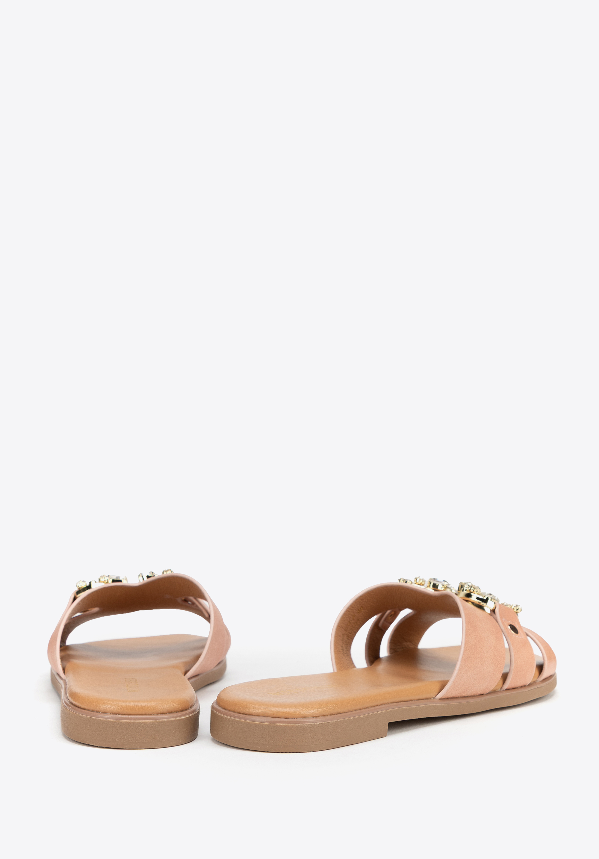 - Dekoratív, fényes csat: Szemet gyönyörködtető, és alkalmassá teszi a papucsot a mindennapi viselésre.