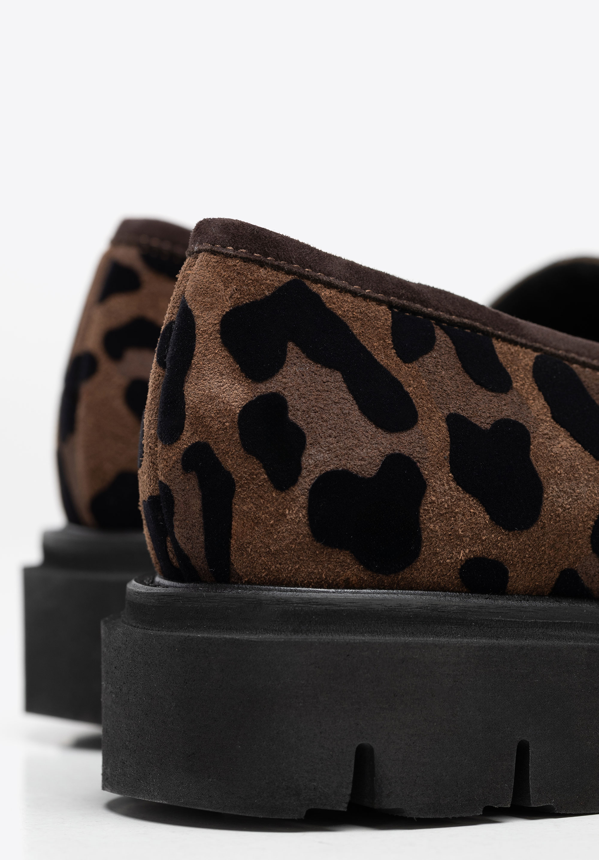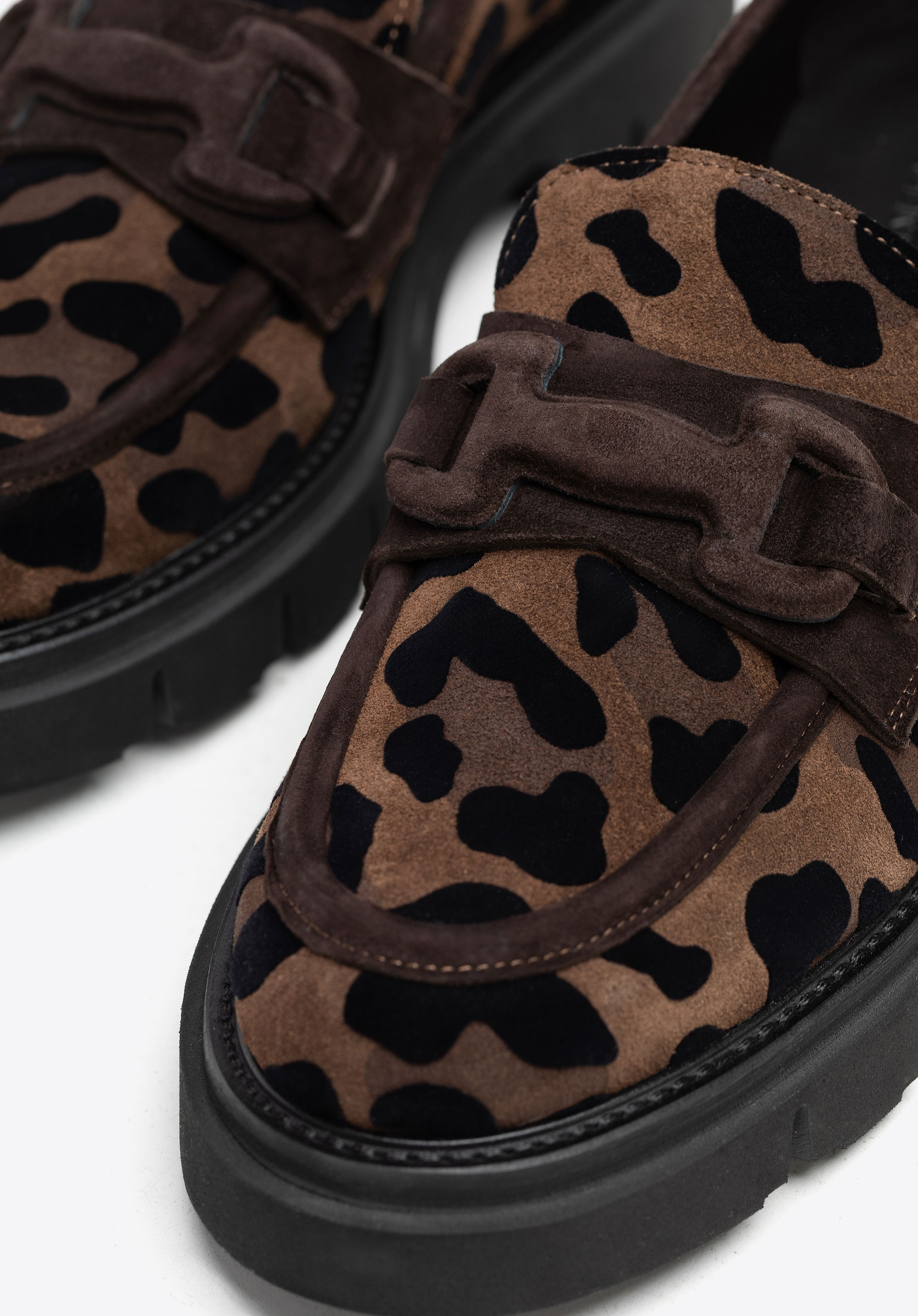 Vigyél egy csipetnyi vad eleganciát a mindennapi megjelenésedbe! Ez a puha, természetes velúrból és divatos leopárdmintával készült mokaszin a luxust és a merész karaktert ötvözi, így kitűnsz vele a tömegből. A velúr finom textúrája kivételes puhaságot kölcsönöz, míg az érzéki minta minden lépésedbe egyedi energiát visz. A klasszikus lekerekített orr megnyújtja a lábat, a tartós gumi platformtalp pedig egész napos kényelmet és stabilitást biztosít.