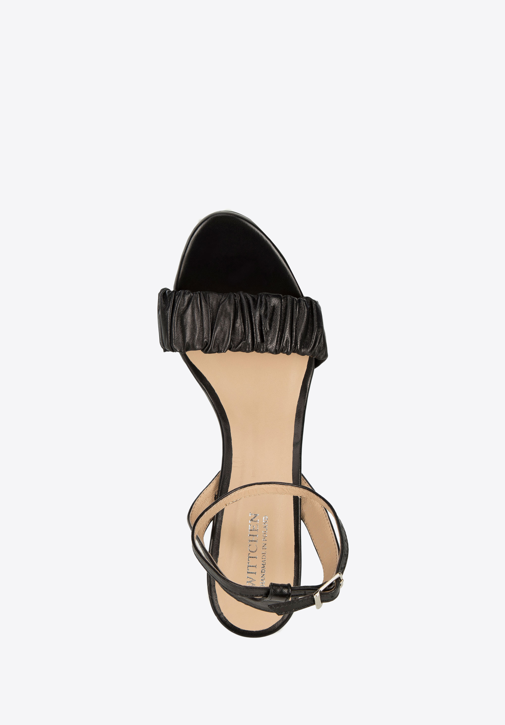 Ez a stílusos női bőr szandál minden ünnepi alkalom egyedi kiegészítője lesz. Kiváló minőségű természetes bőrből készült Lengyelországban, így hosszú éveken át hordhatod majd. A lábfejet egy divatos és nagyon egyedi gyűrt pánt tartja. A vékony bokapánt kifinomult és egyben praktikus is, mely kényelmesen helyén tartja a lábadat. A sarok meglehetősen magas, de ennek ellenére kényelmes. Szépen karcsúsítja alakodat, és több órán át kényelmesen sétálhatsz benne. Ezt a formás modellt légies ruhával, de farmerrel és bőrdzsekivel is egyaránt viselheted. Ez a gyűrt bőrből készült, magassarkú női szandál minden különleges alkalomra ideális kiegészítő lesz.