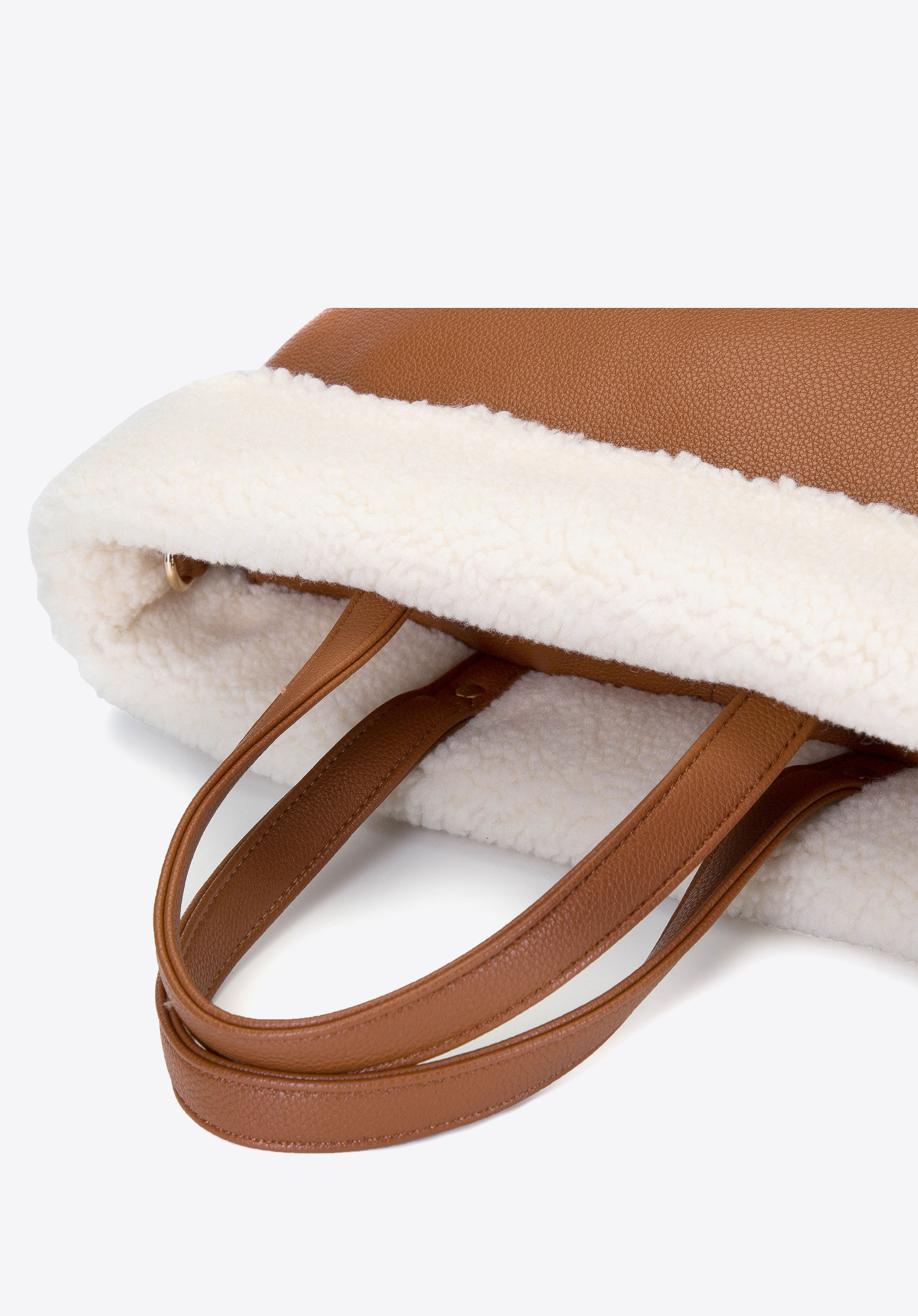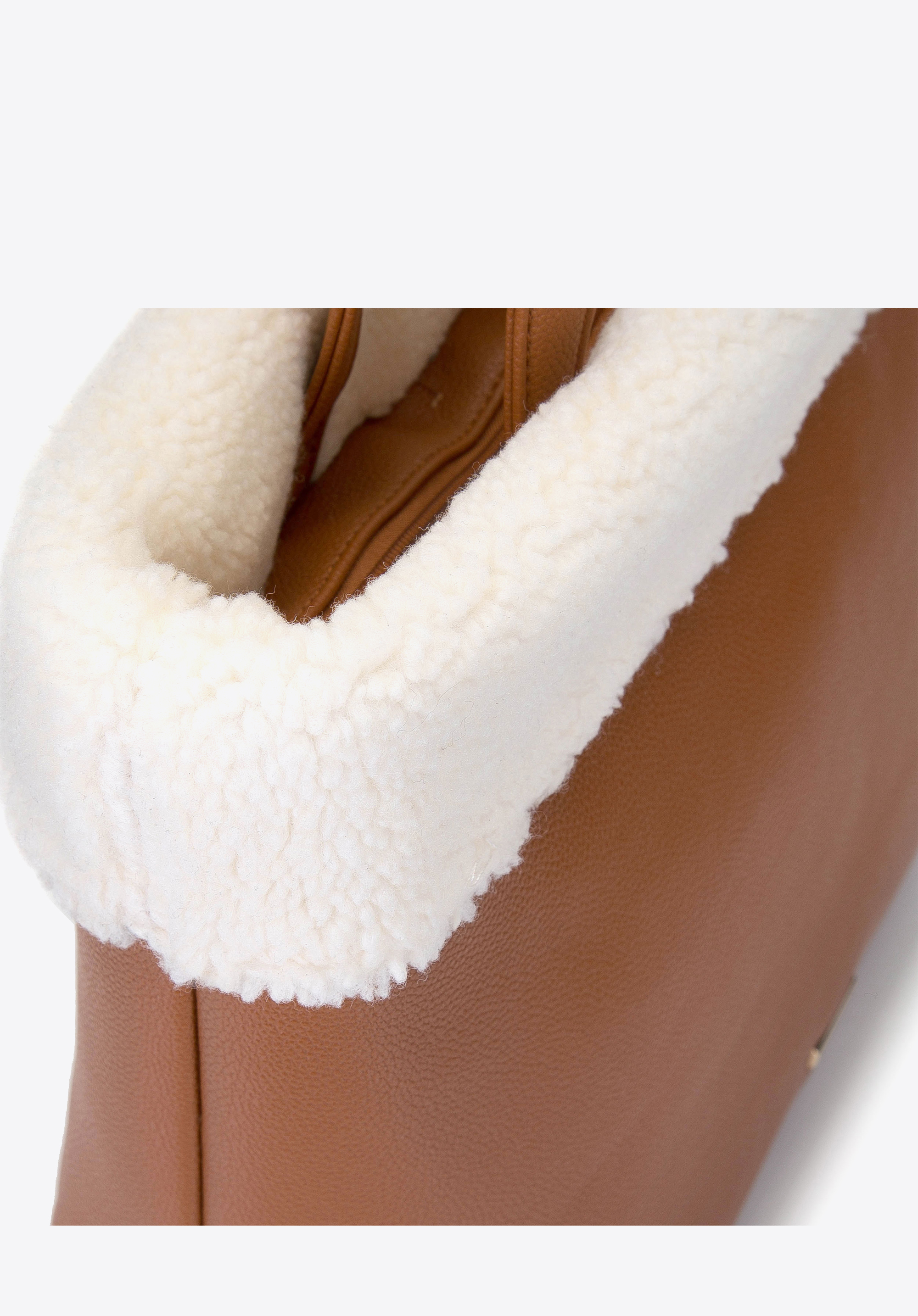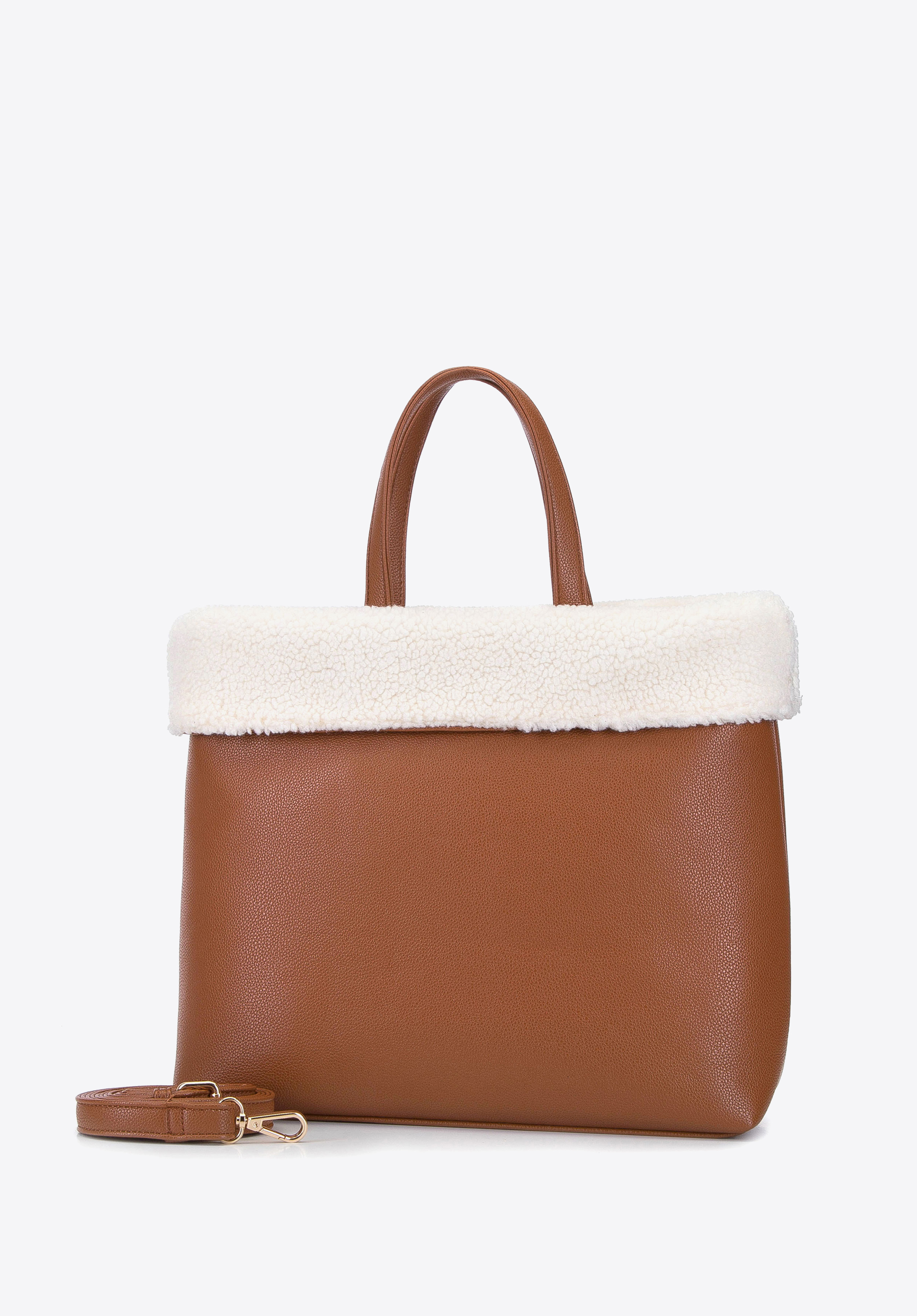 Tökéletes táska azoknak a nőknek, akik egész évben várják az ünnepeket. A táska klasszikus szabása mesterséges műszőrmével lett megtörve. A táska kiváló minőségű ökológiai bőrből készült. A két fogantyúnál fogva hordozhatod a kezedben, vagy az állítható pánt segítségével kényelmesen a válladra akaszthatod. Belül sok hely van, három zseb segít a rendtartásban. Ez a női kézitáska tökéletes lesz egy szezonális táskának, amelyet minden ősszel szívesen veszel majd elő.