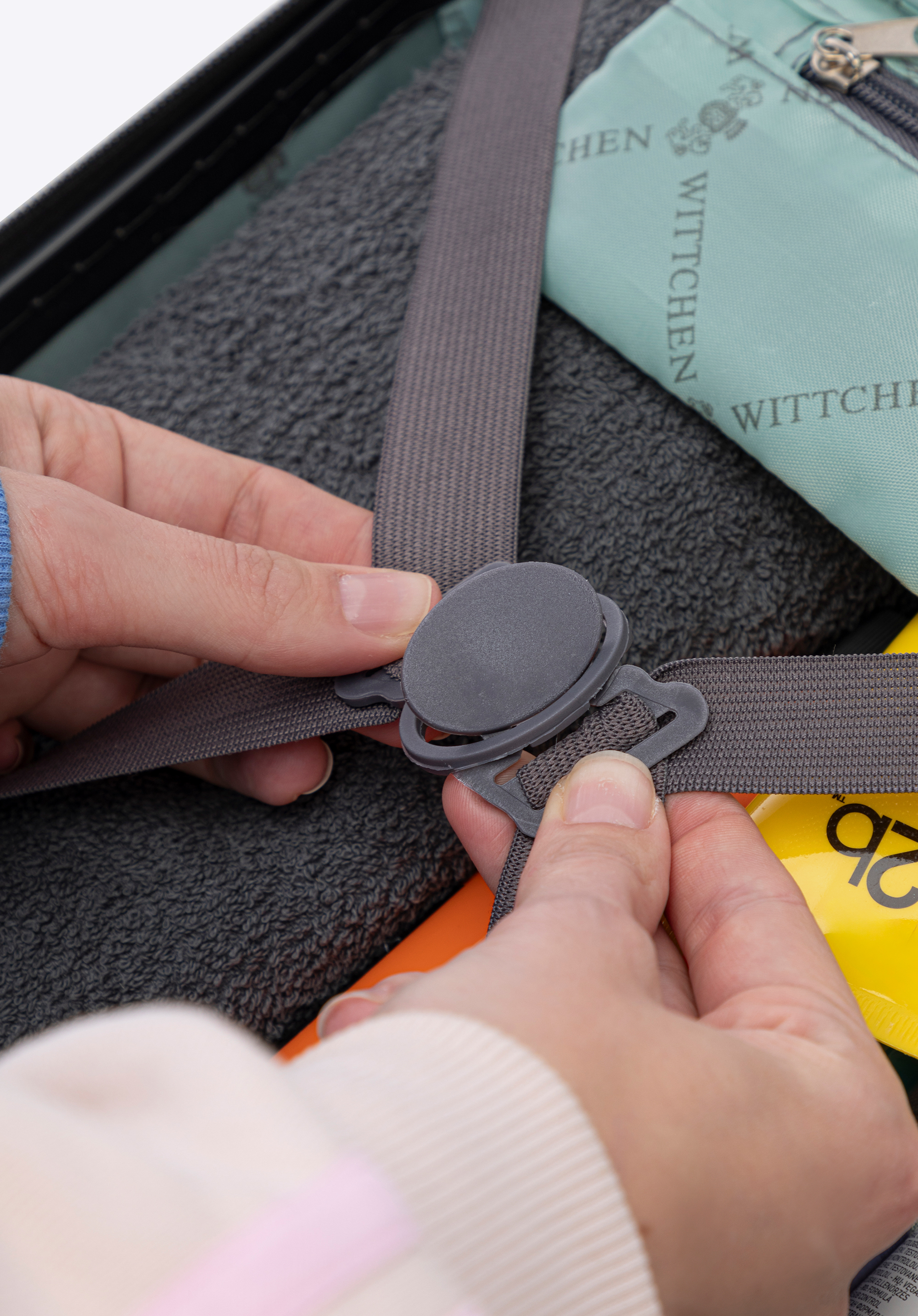 Tippünk: A neszeszer hátsó elasztikus pánttal rendelkezik, amely lehetővé teszi, hogy utazáskor a bőrönd fogantyújára rögzíthesd.