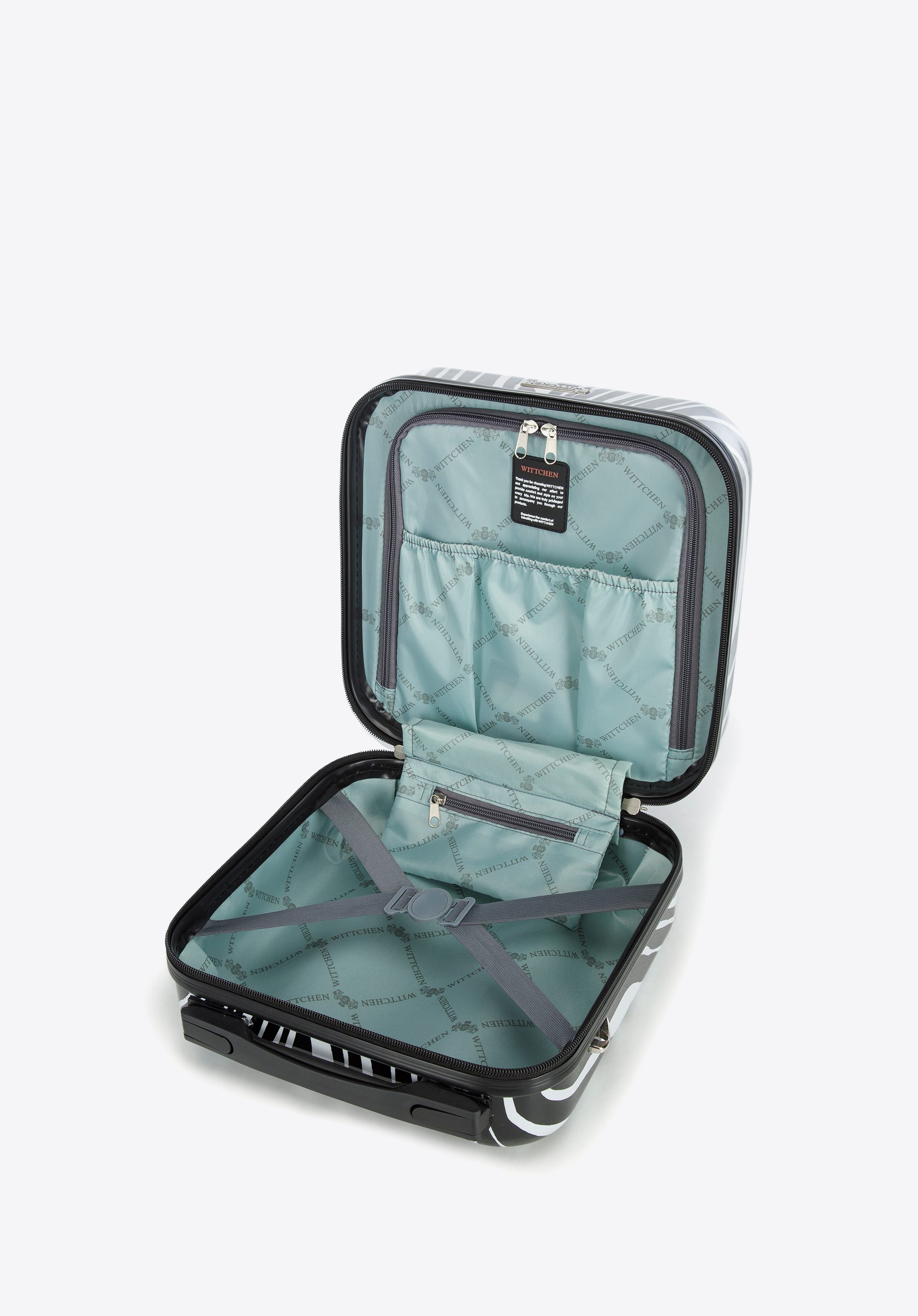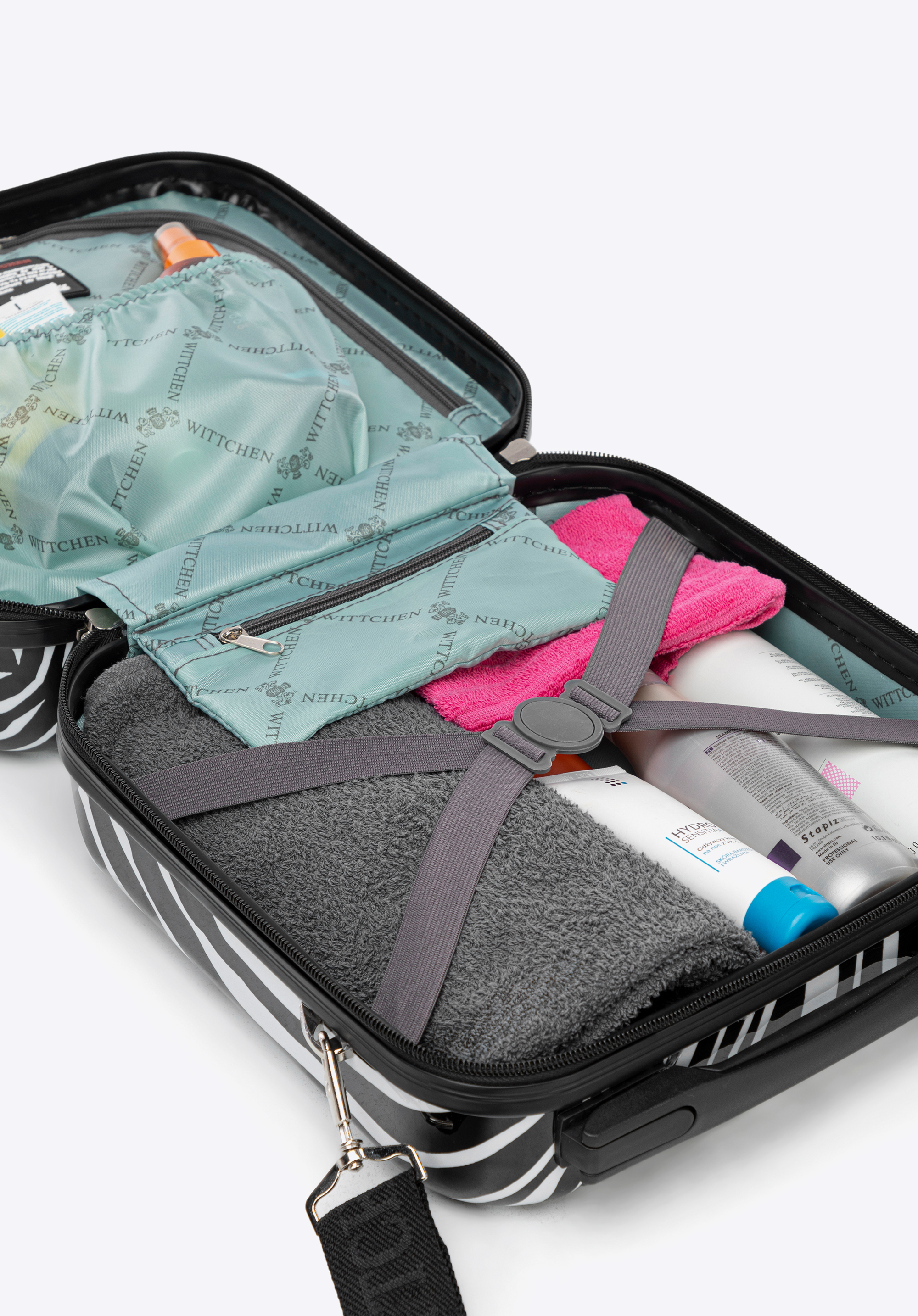 Ez a modern kozmetikai táska minden olyan nő számára hasznos lesz, aki szereti a különleges kiegészítőket utazás közben. ABS anyagból készült és további polikarbonát réteggel van bevonva. Belseje jól rendezett: egyik oldalán cipzáras rekesz található nagy zsebbel, míg a másik oldalon egy pánttal lehet rögzíteni a belső tartalmat. Elfér benne például egy kis méretű hajszárító, kedvenc kozmetikumaid, parfümjeid és egyéb szükséges kiegészítők. Ezt a modellt kombinálhatod a Young kollekció bőröndjeivel, ami minden utazás során egységes megjelenést fog biztosítani. A kontrasztos színek a természetre utaló motívumokkal együtt remek párosítás, változatossá tesznek minden utazást. Ez a mintás ABS utazó neszeszer egy praktikus és stílusos kiegészítő, amely utazáshoz és otthoni használatra is hasznos lesz.