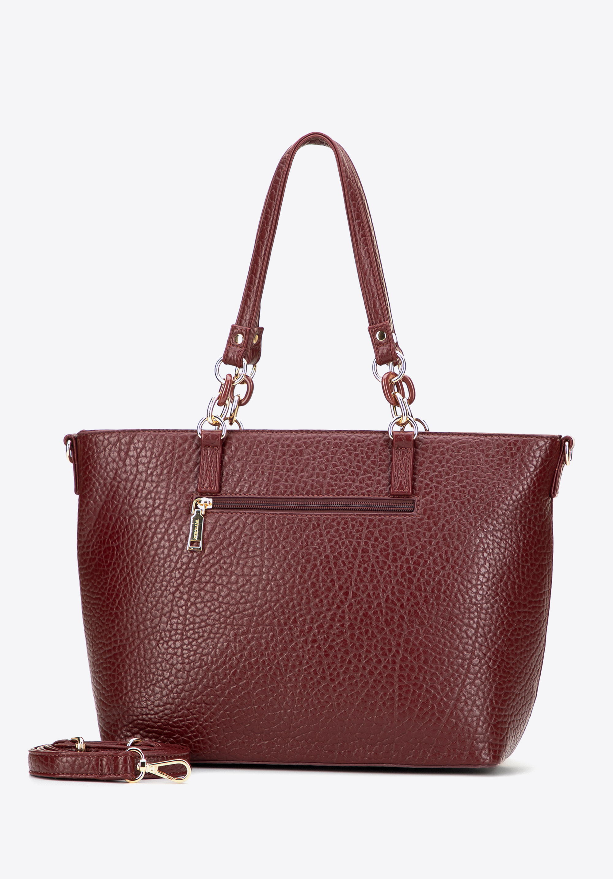 - Láncos elemekkel ellátott fogantyú a kézitáska fő színében: Divatos kiegészítő, amely lehetővé teszi a válltáska kézben tartását, miközben eleganciát és színharmóniát kölcsönöz az öltözékednek.