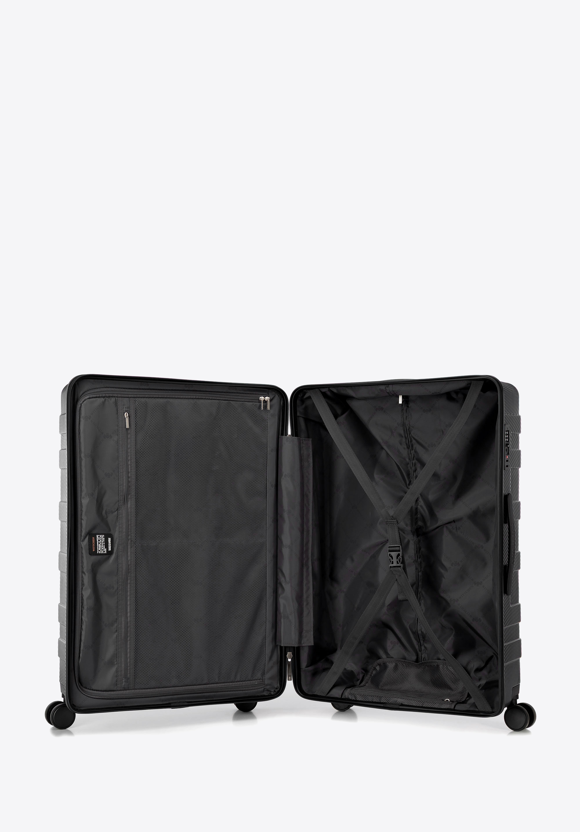 Ez a nagy bőrönd tökéletes választás azok számára, akiknek tágas és strapabíró poggyászra van szükségük hosszabb utakhoz – a formatervezés és a funkcionalitás terén nem kell kompromisszumot kötni. A robusztus polikarbonátból készült, modern megjelenéssel és átgondolt belső térrel büszkélkedhet. Nagy kapacitásának, extra fogantyúinak és intelligens funkcióinak köszönhetően a csomagolás könnyebbé válik, az utazás pedig még élvezetesebbé.