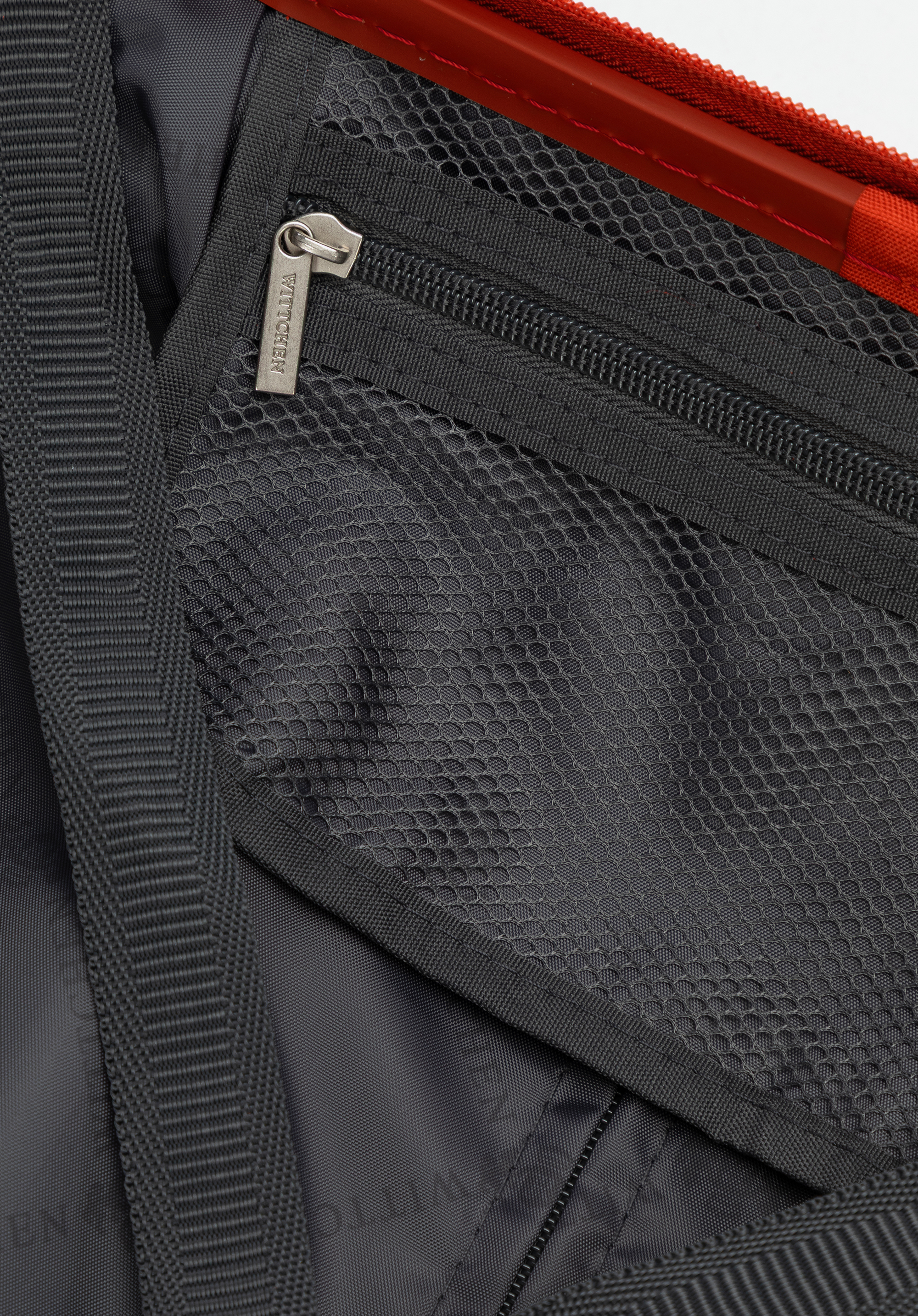 - Belső rész: Intelligens elrendezés keresztpántokkal, cipzáras hálós zsebbel és két további cipzáras rekesszel, amelyek segítenek a hatékony csomagolásban és mindent rendben tartani.