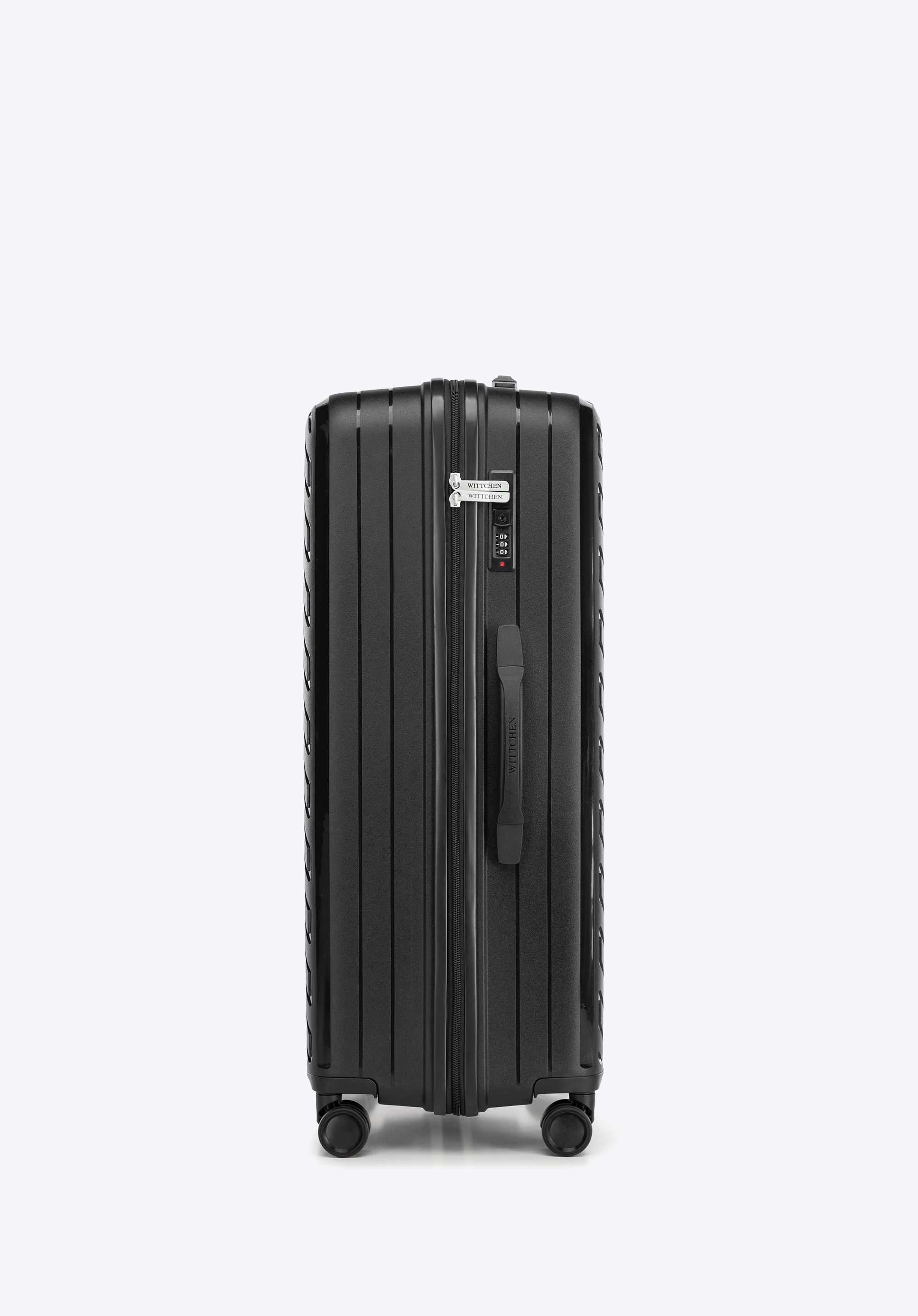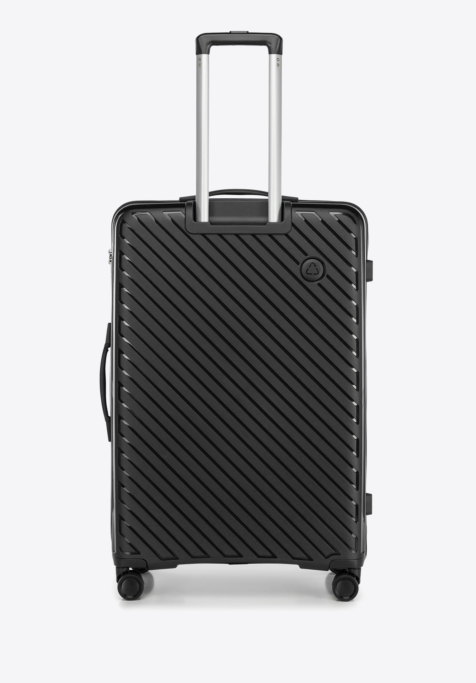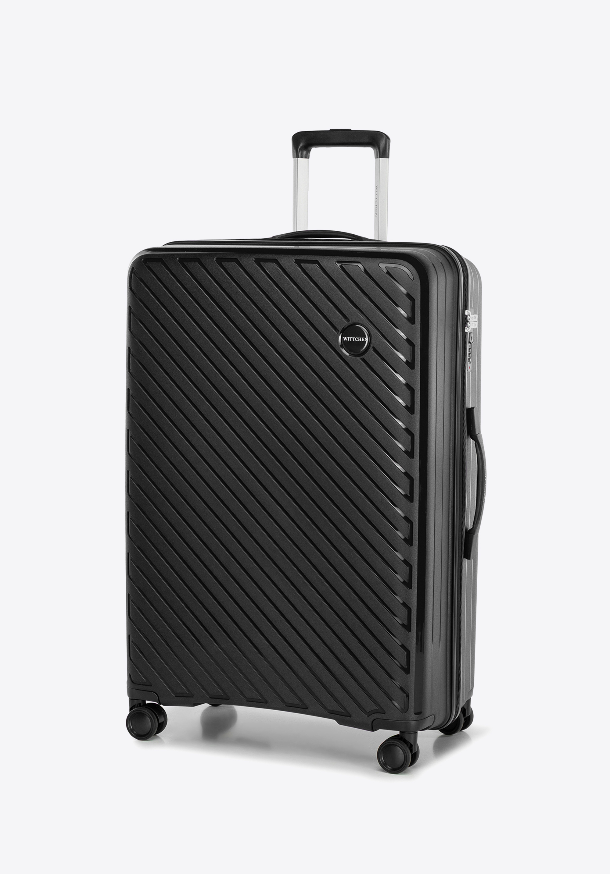 Nagy polipropilén bőrönd dombornyomott csíkokkal fekete