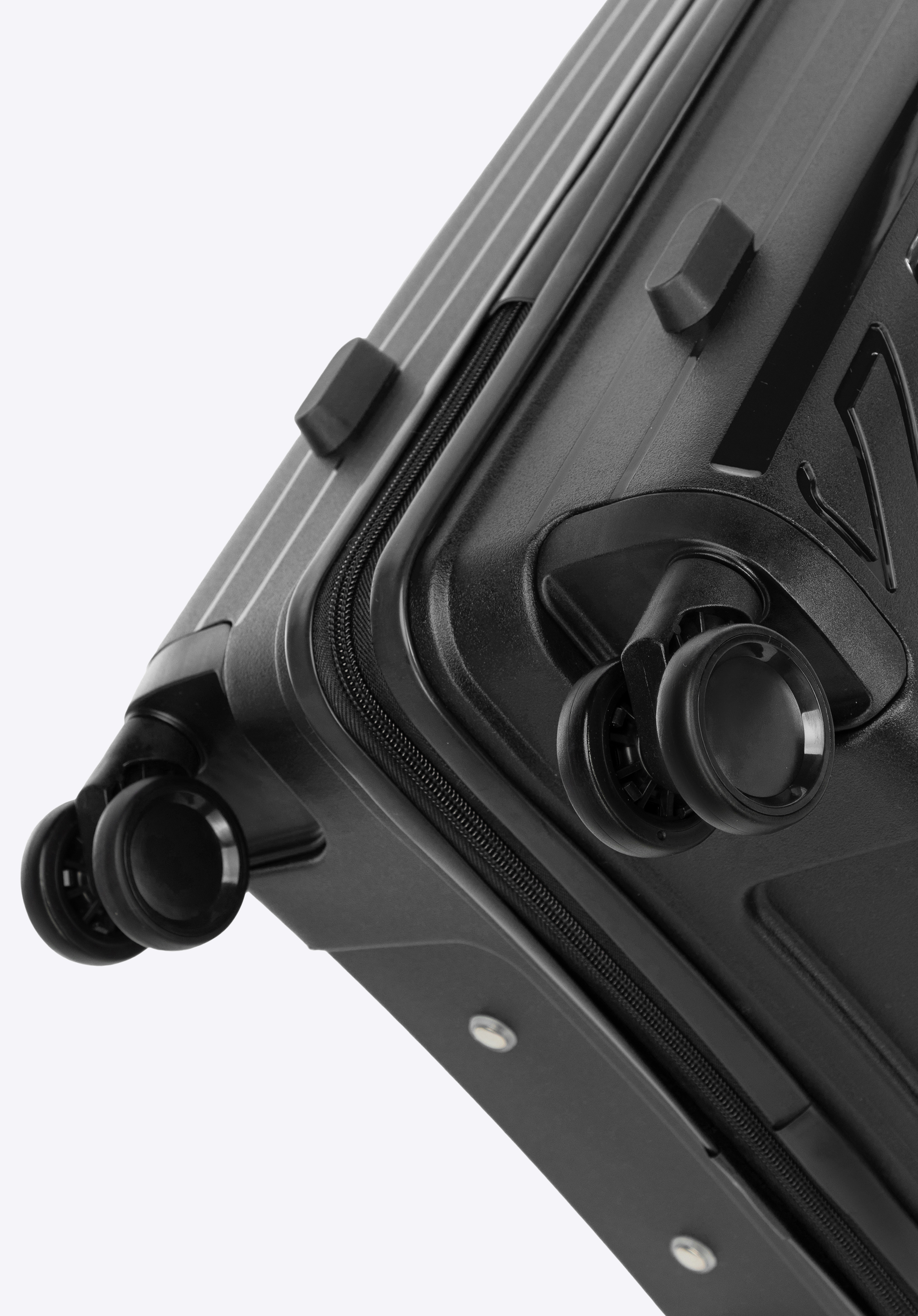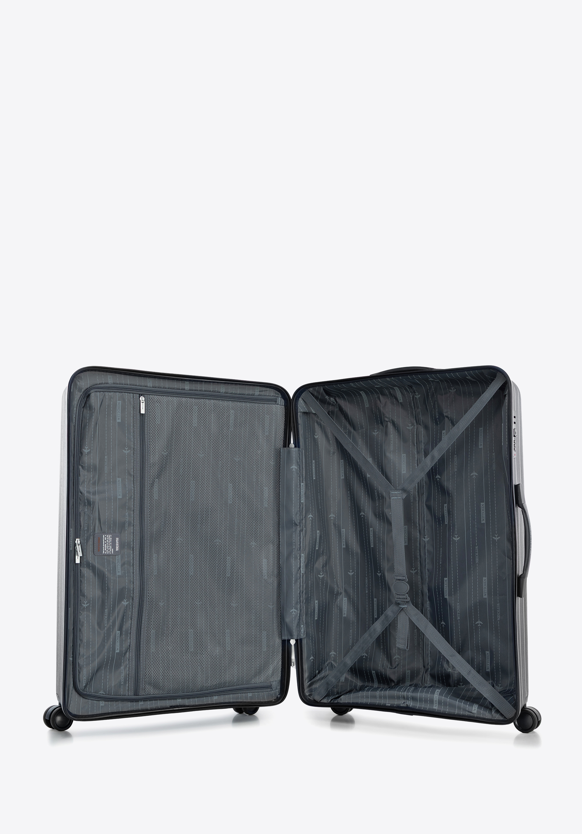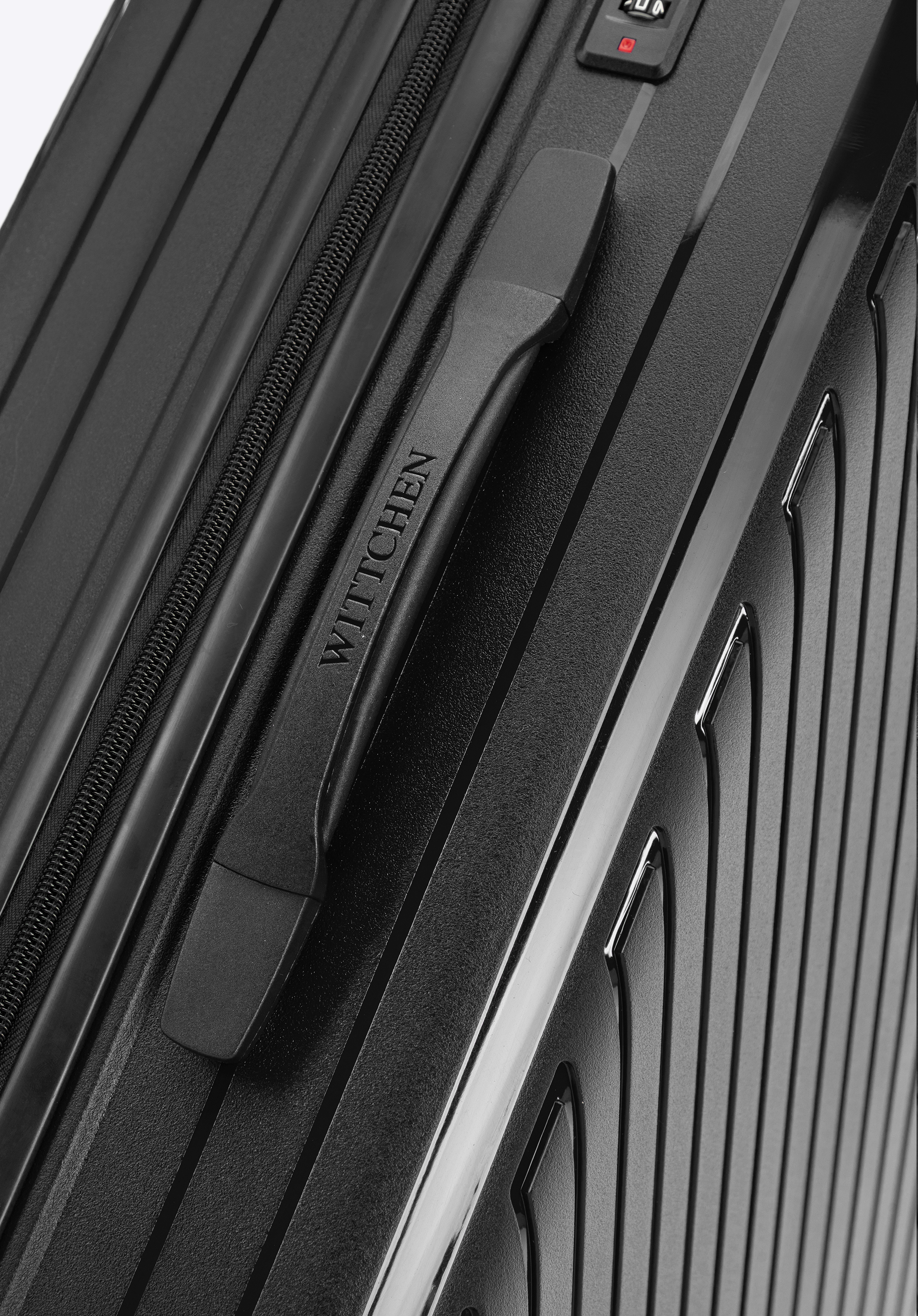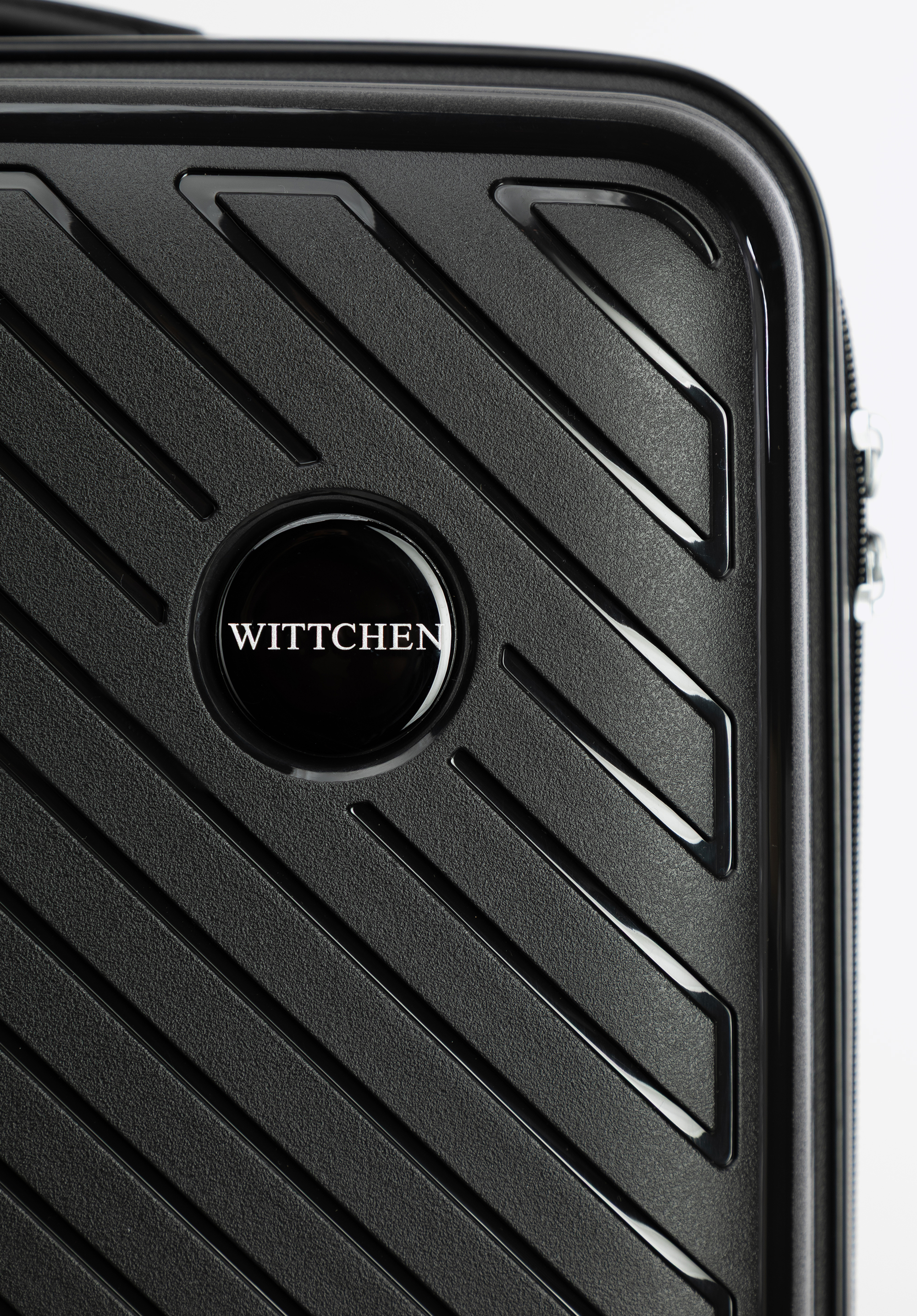 Nagy polipropilén bőrönd dombornyomott csíkokkal fekete