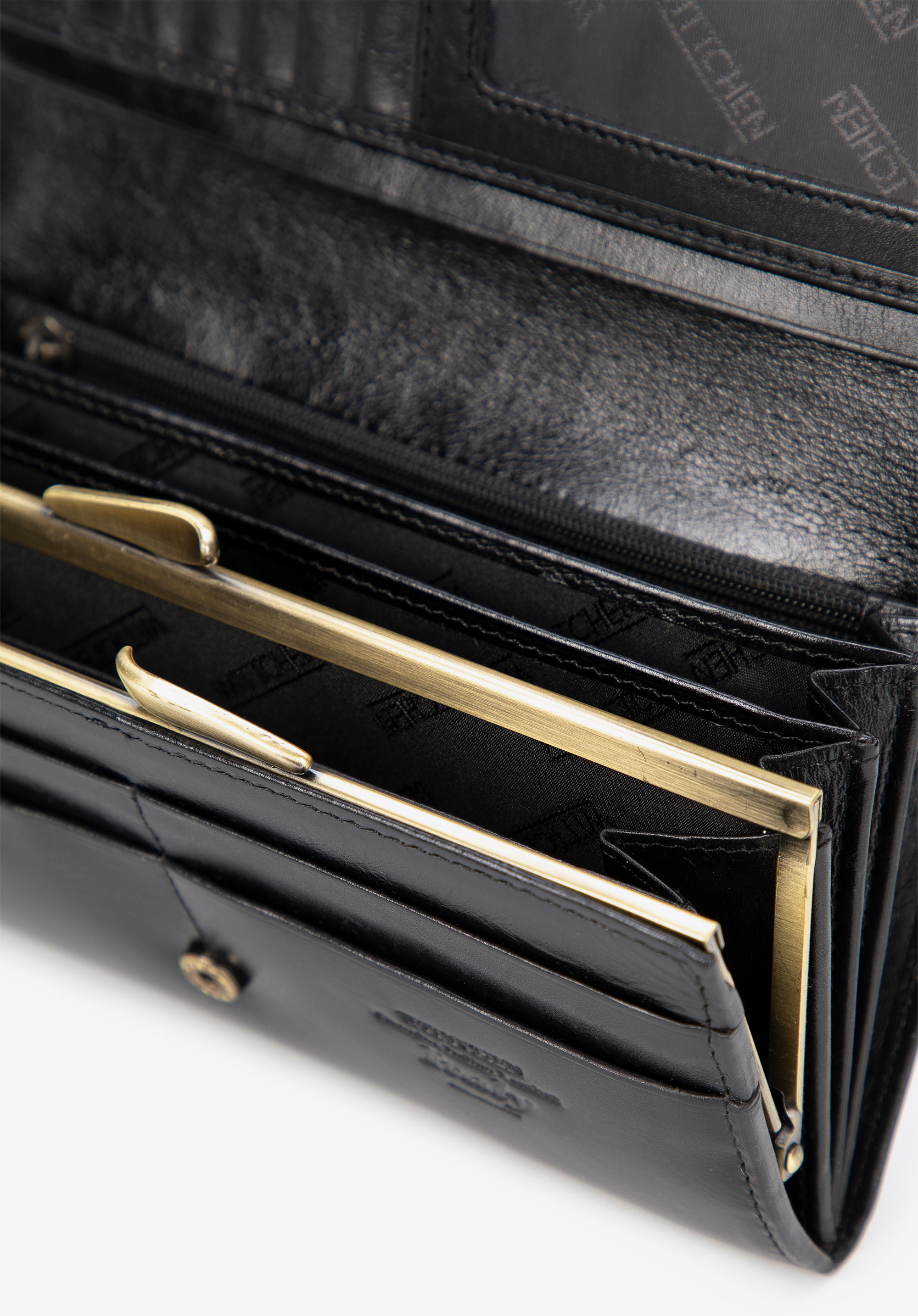 Női pénztárcánk az időtlen stílust ötvözi a kiemelkedő praktikummal. Prémium, puha, természetes bőrből készült, egyszerre strapabíró és elegánsan kidolgozott. Patentgombos rögzítésének és tágas, kétrekeszes aprópénztartó zsebének köszönhetően kényelmesen tárolhatod benne készpénzt, kártyákat és dokumentumokat. Klasszikus kialakításának köszönhetően ez a pénztárca soha nem megy ki a divatból.