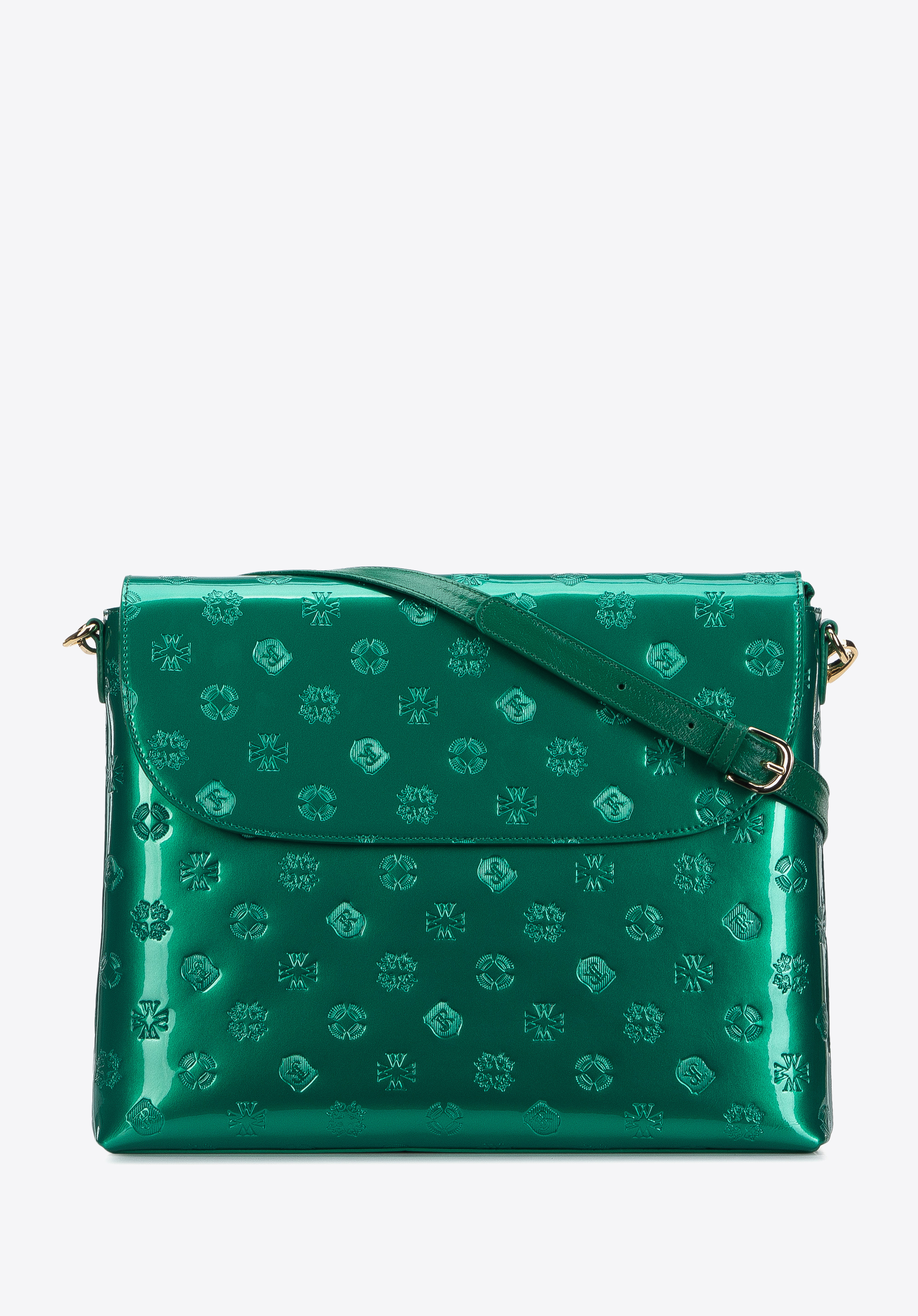 Egyedi női táskát nem csak különleges alkalmakra érdemes bevinni a ruhatáradba. Ez monogrammal dombornyomott lakkbőrből készült táska nagy és téglalap alakú, így stílusos aktatáskaként is használható. Belül minden elfér, ami a munkához kell: A4-es dokumentumok, naptár és jegyzetek, valamint sok személyes tárgy. Két rekesze van, így könnyen rendben tarthatod. Ez a táska kiegészít például egy elegáns, nőies kosztümöt, és elegánsabbá teszi a hétköznapi farmert és pólót. Magaddal viheted az egyetemre, munkába, vagy sétára - minden helyzetben egyedi lesz megjelenésed.