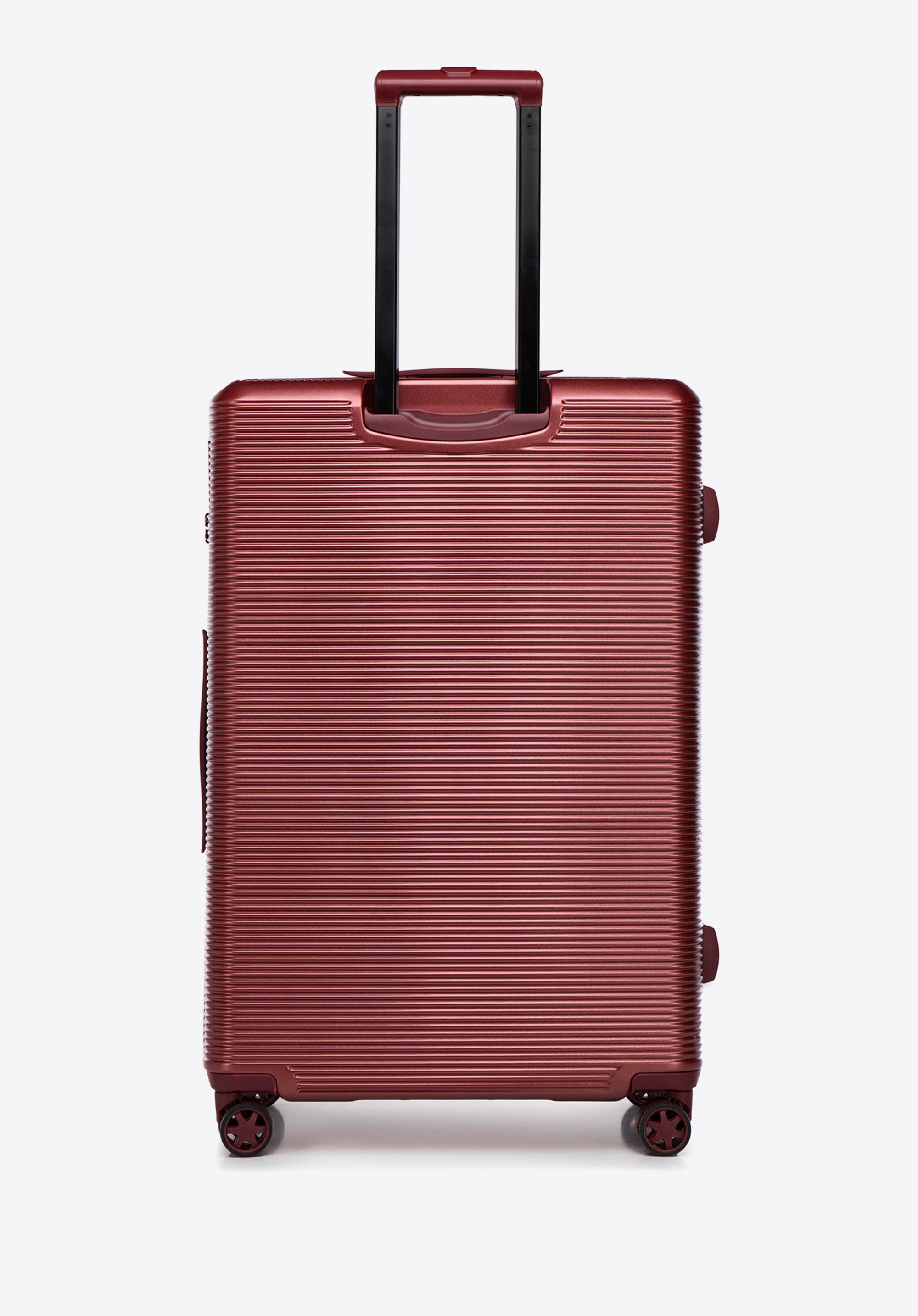 - Az alumíniumból készült, kétfokozatú, különböző magasságban állítható teleszkópos fogantyú lehetővé teszi, hogy a bőröndöt a te magasságodhoz igazítsd, garantálva a kényelmet és a mozgás szabadságát.
