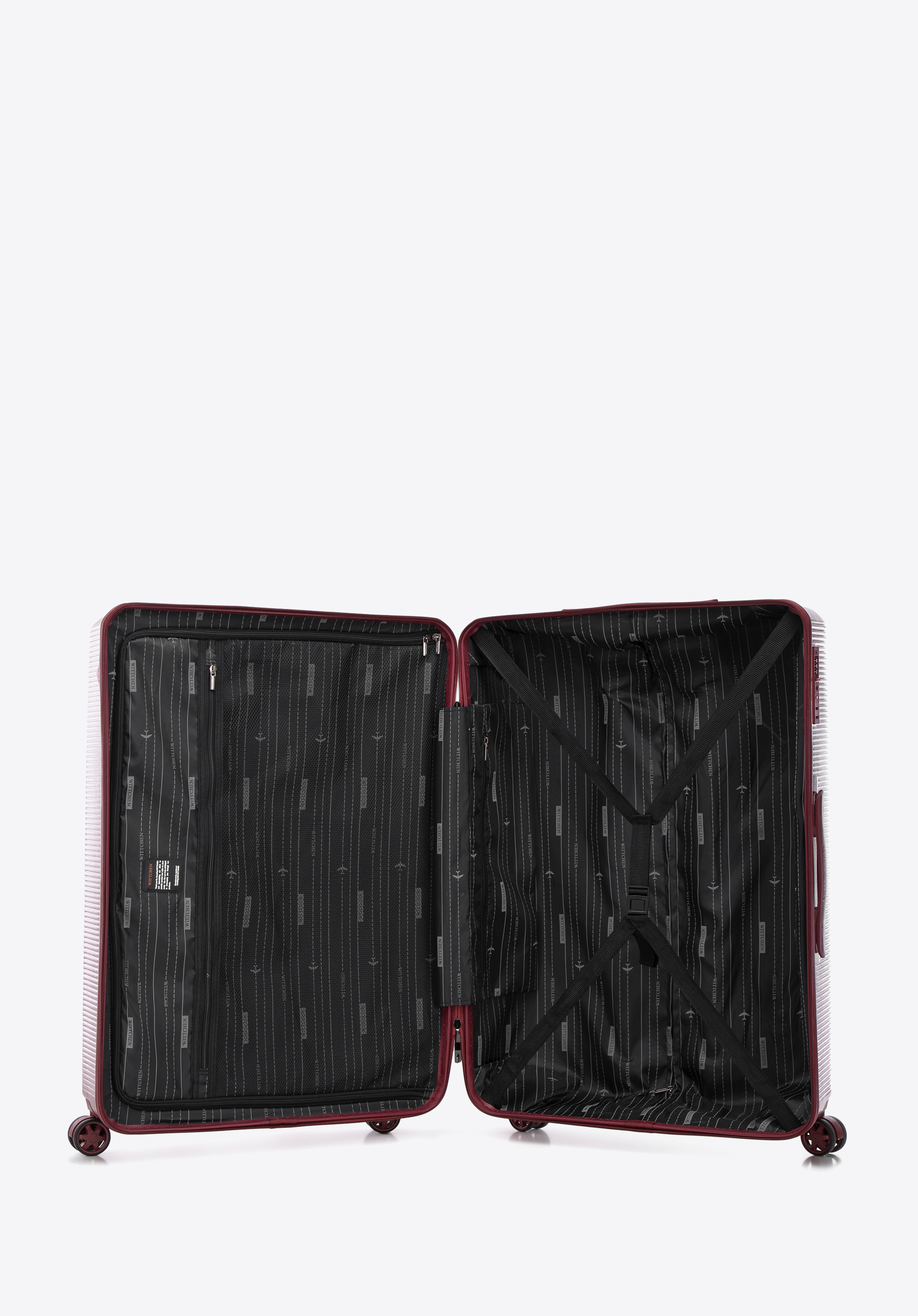 - Tökéletes rendszerezés: a bőrönd egyik rekesze állítható pántokkal van ellátva, amelyek a ruhákat a helyükön tartják. A második cipzáras rekeszben egy hálós cipzáras zseb található.
