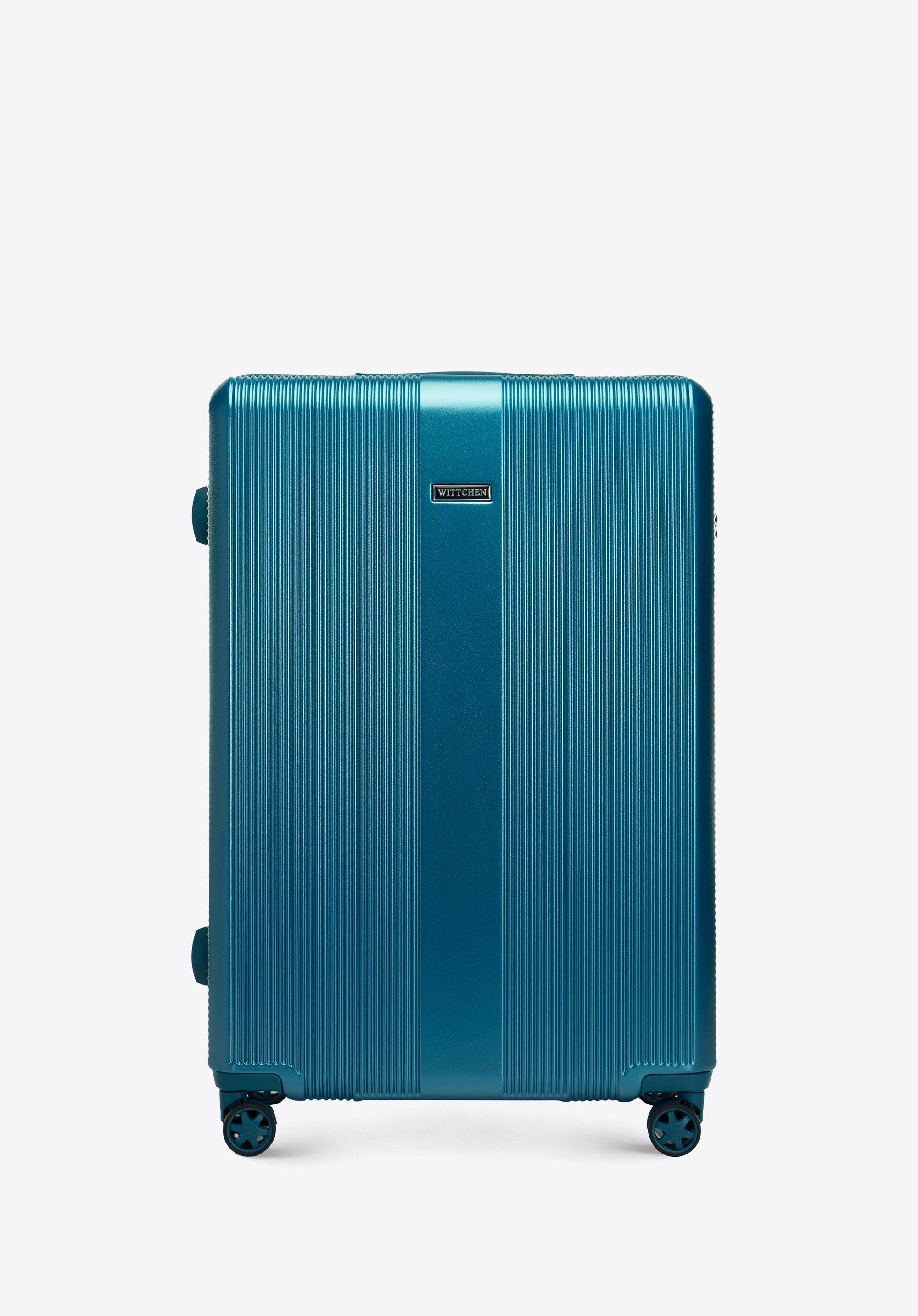 Nagyméretű polikarbonát bőrönd függőleges dombornyomással Szín: kék