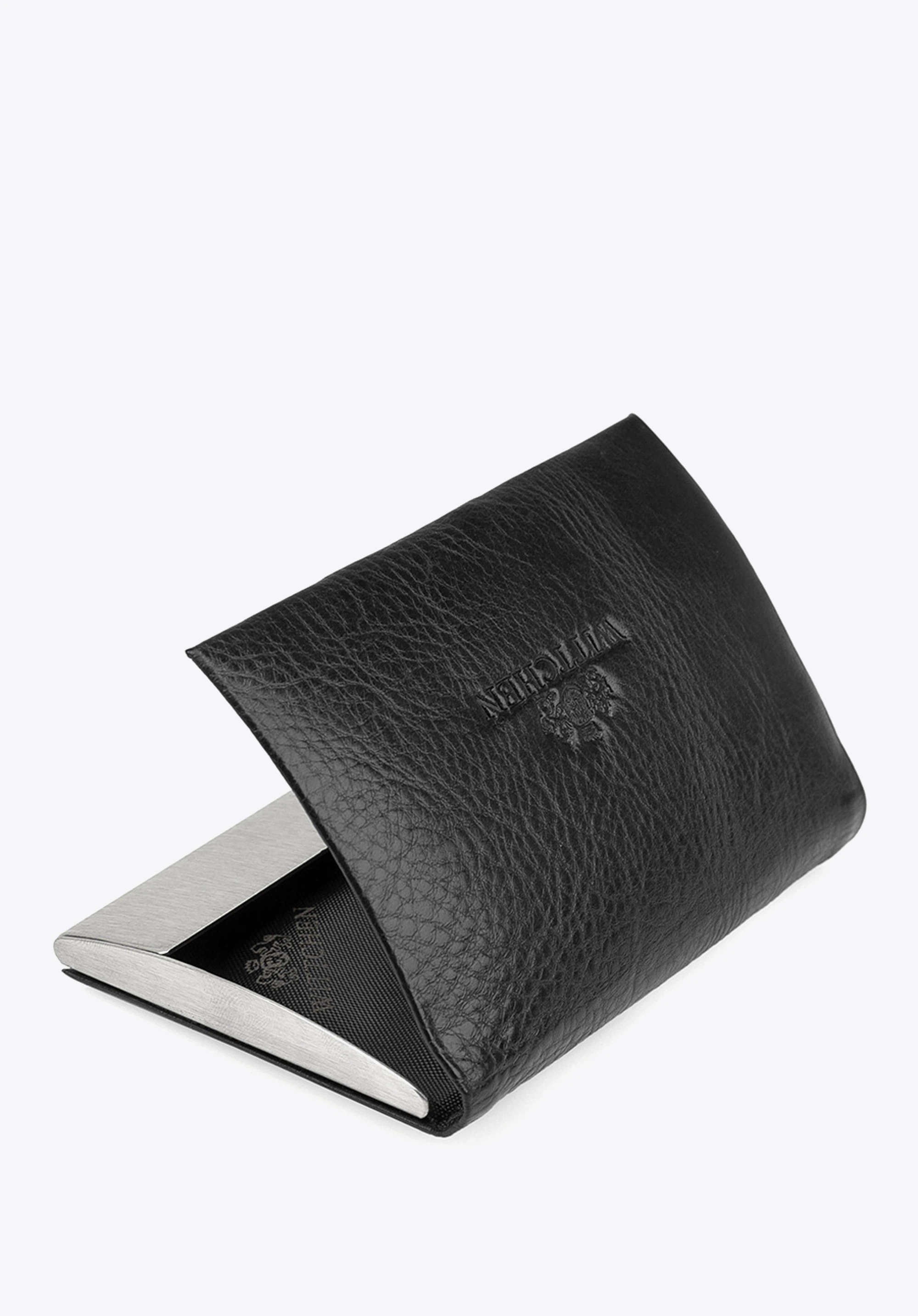 Bőr névjegykártya tartó klasszikus fazonnal, elegáns és nagyon praktikus kiegészítő. Kényelmesen elfér benne a szükséges mennyiségű névjegykártya, és védi a kártyákat.