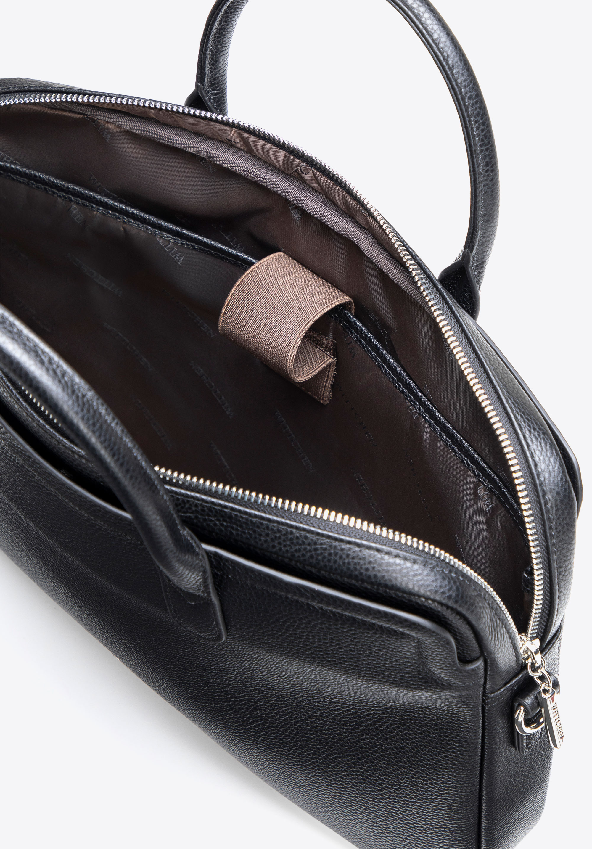Ez a női laptoptáska tökéletes, ha a professzionális stílust a kényelemmel és a funkcionalitással szeretnéd ötvözni. Természetes bőrből készült a luxus érzetért, mikroszálas részletekkel – a hosszú pánt, a fogantyú és a zsebdíszítés – pedig könnyűvé és modernné teszik. A levehető és állítható pántnak köszönhetően pontosan úgy hordhatod, ahogy szeretnéd: kézben vagy a válladon. Ez egy olyan táska, amely mindent rendben tart – a dokumentumoktól a technikai eszközökig.