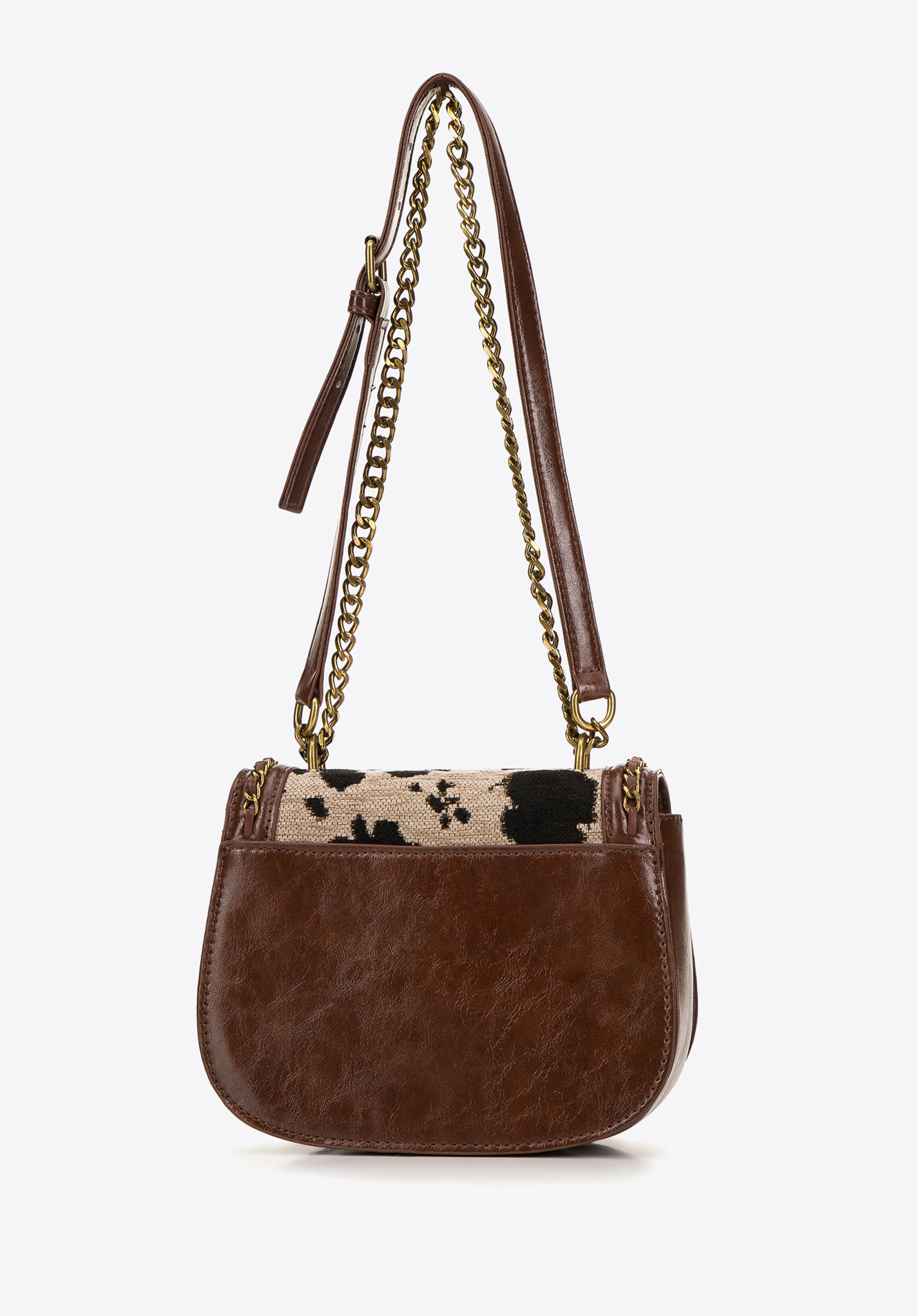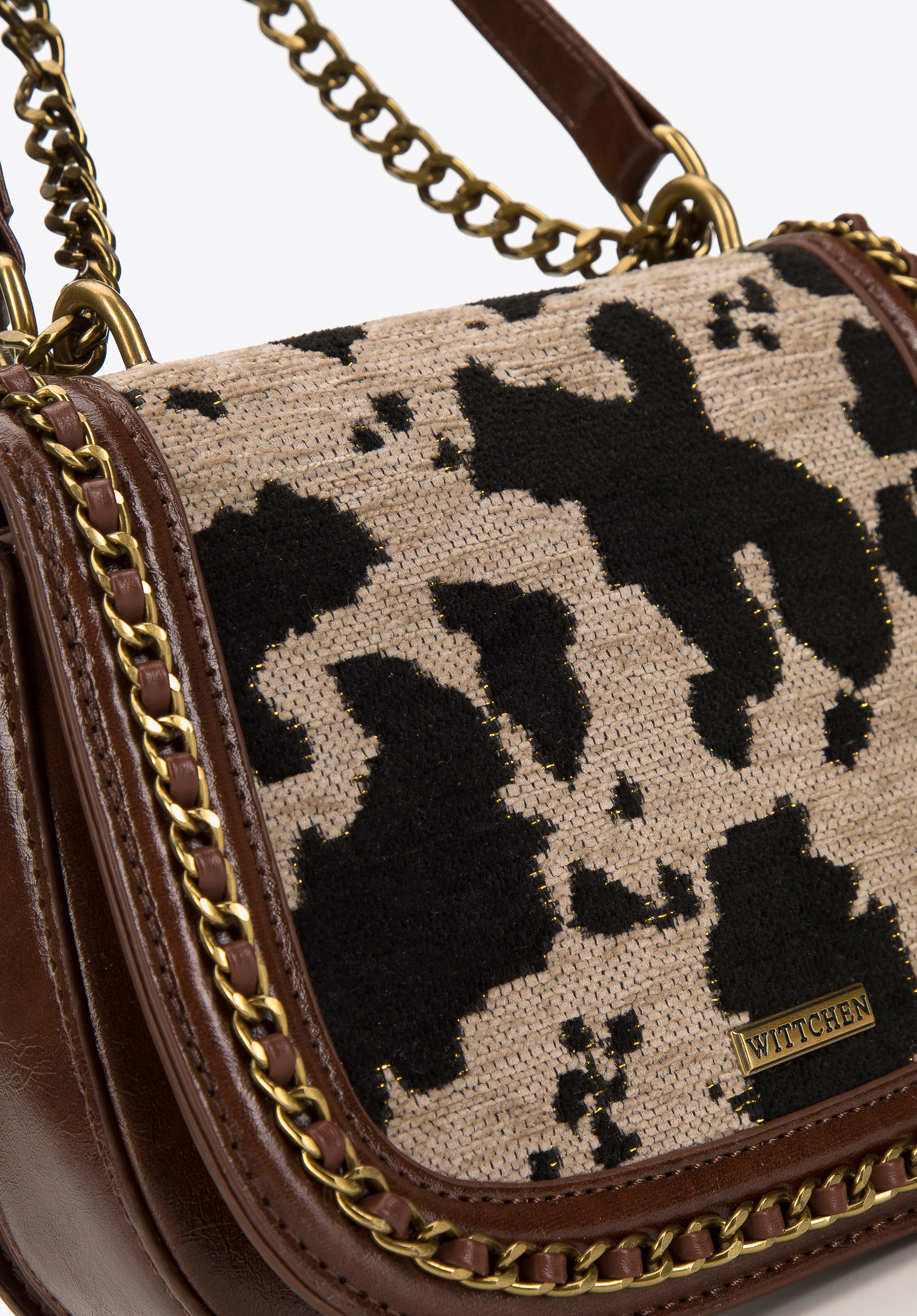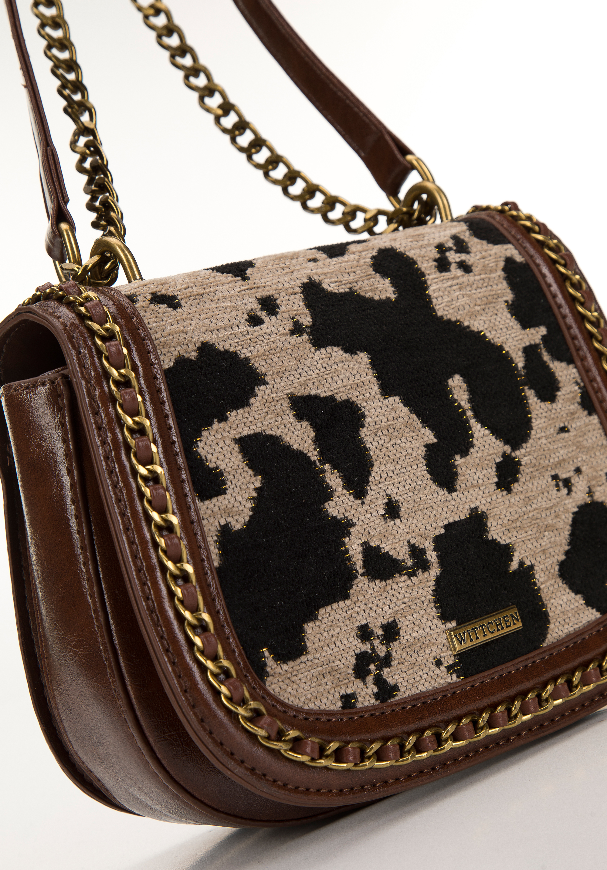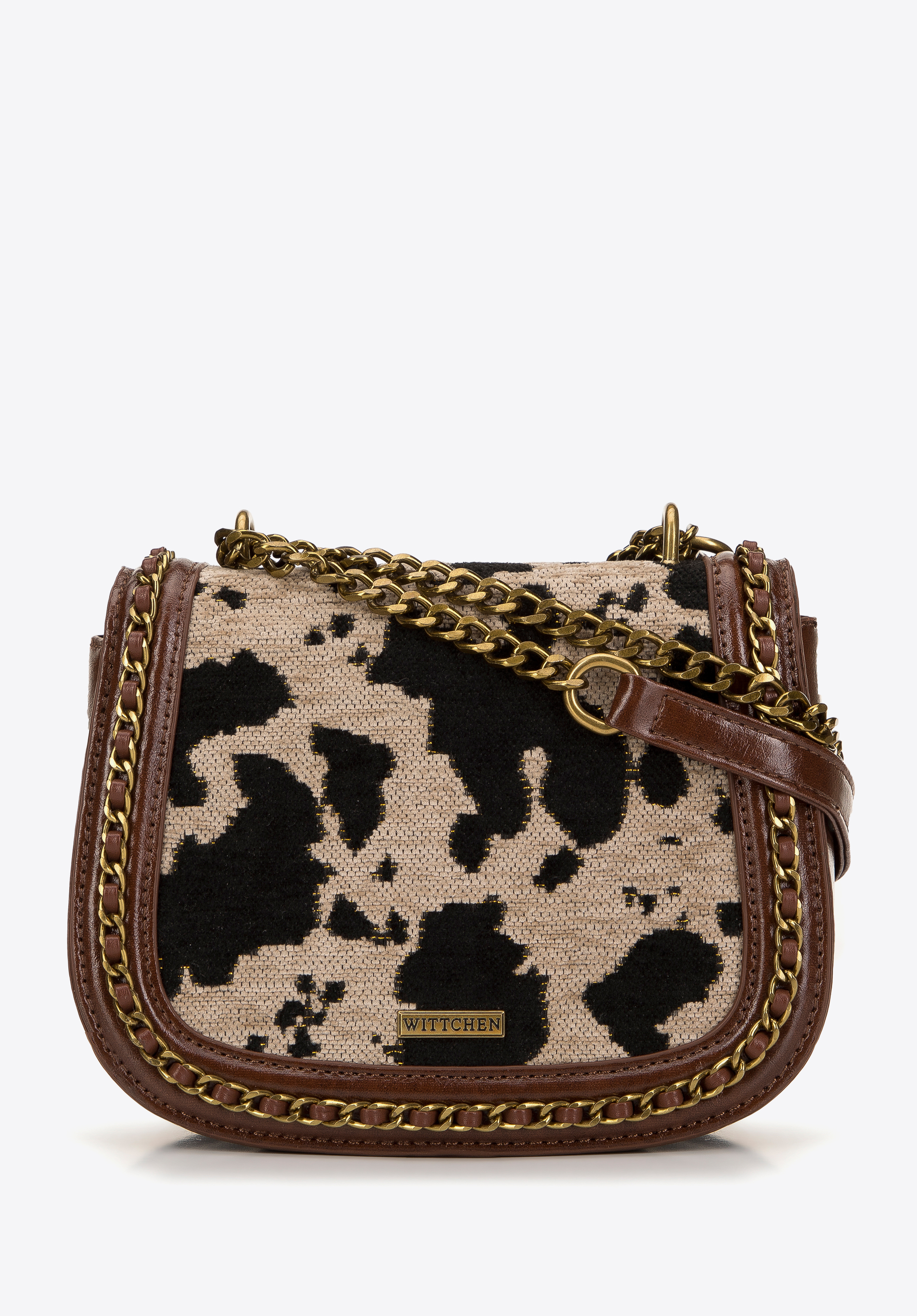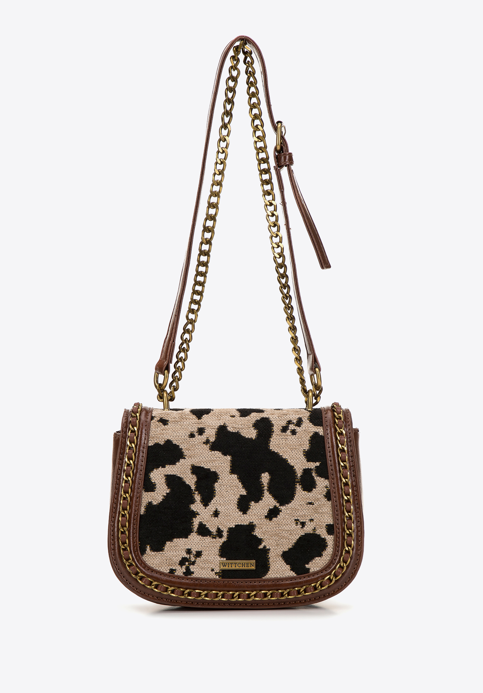 Ez az eredeti kézitáska divatosan kiemeli bármelyik öltözéked. A patentot állatmintás anyaggal és lánccal díszítettük, hogy kiemeljük a formáját. Az egész táska kiváló minőségű műbőrből készült. Belsejében elfér egy pénztárca, telefon, kézápoló és egy kis jegyzetfüzet - ideális a moziba, baráti társaságba vagy akár csak egy sétára. Dobd fel kedvenc estélyi fekete ruhád, vagy kombináld például boyfriend farmerrel és inggel. A női állatmintás oldaltáska láncos patenttal számos alkalomra kihagyhatatlan kiegészítő, ezért mindenképpen legyen egy a szekrényedben.