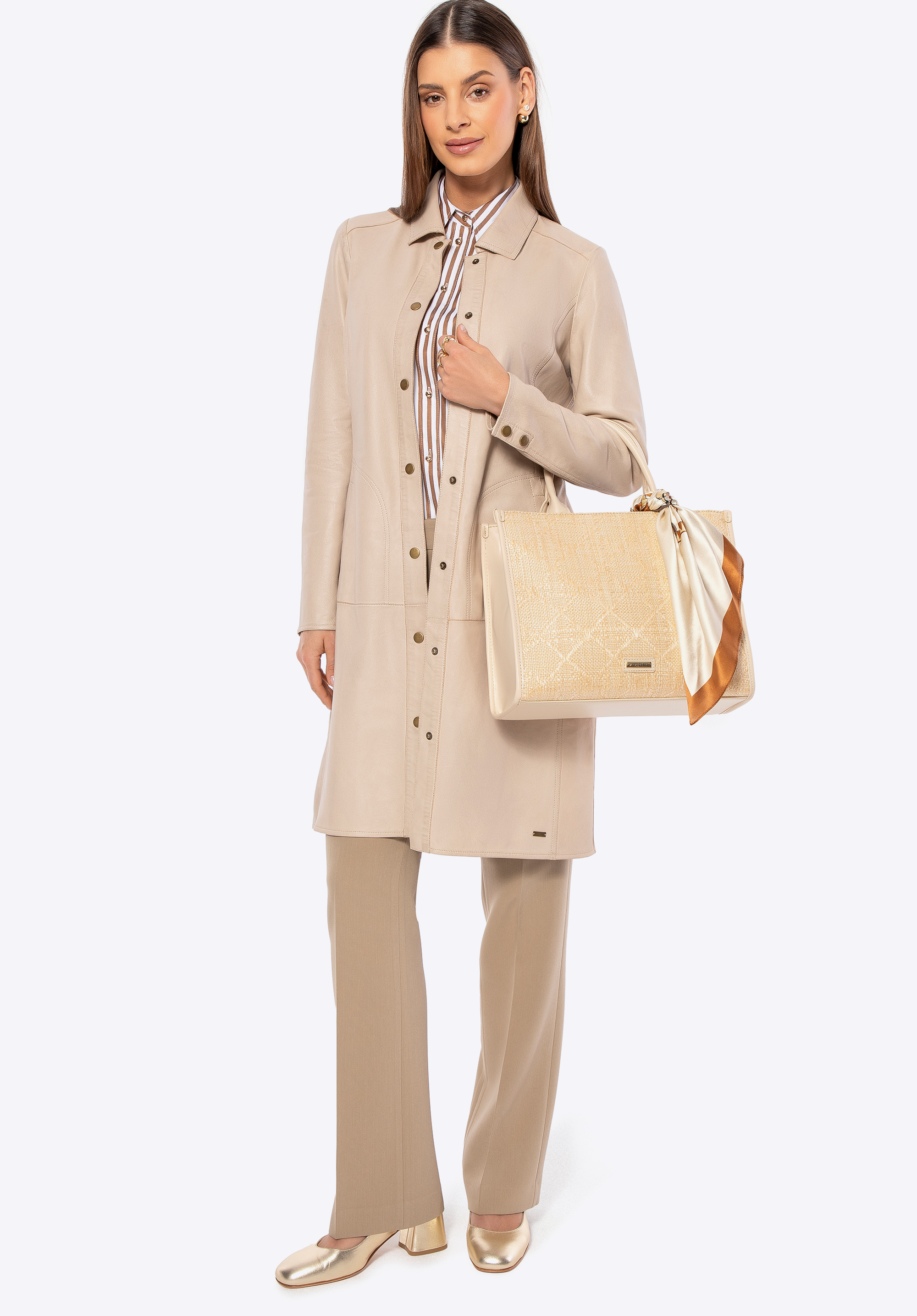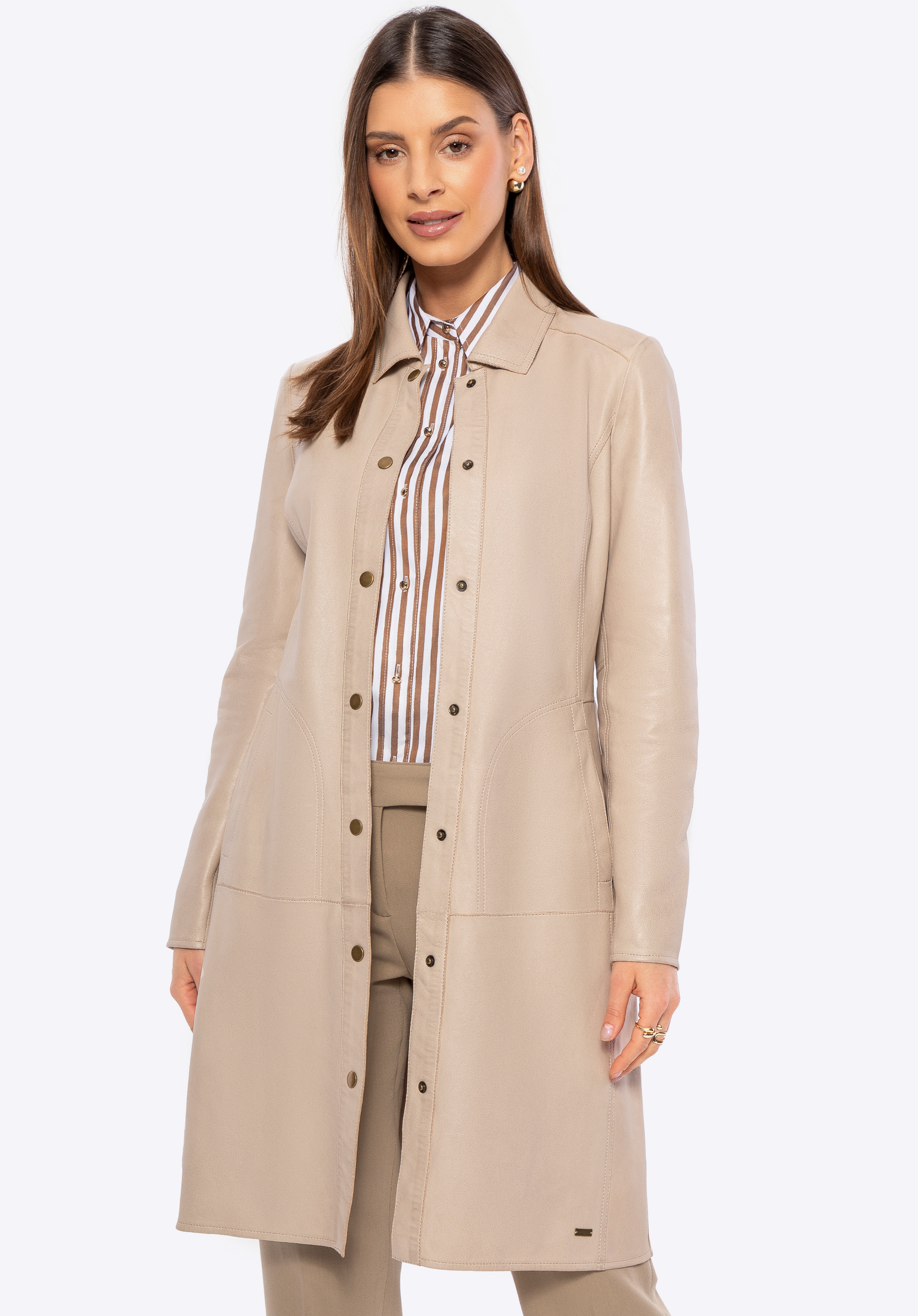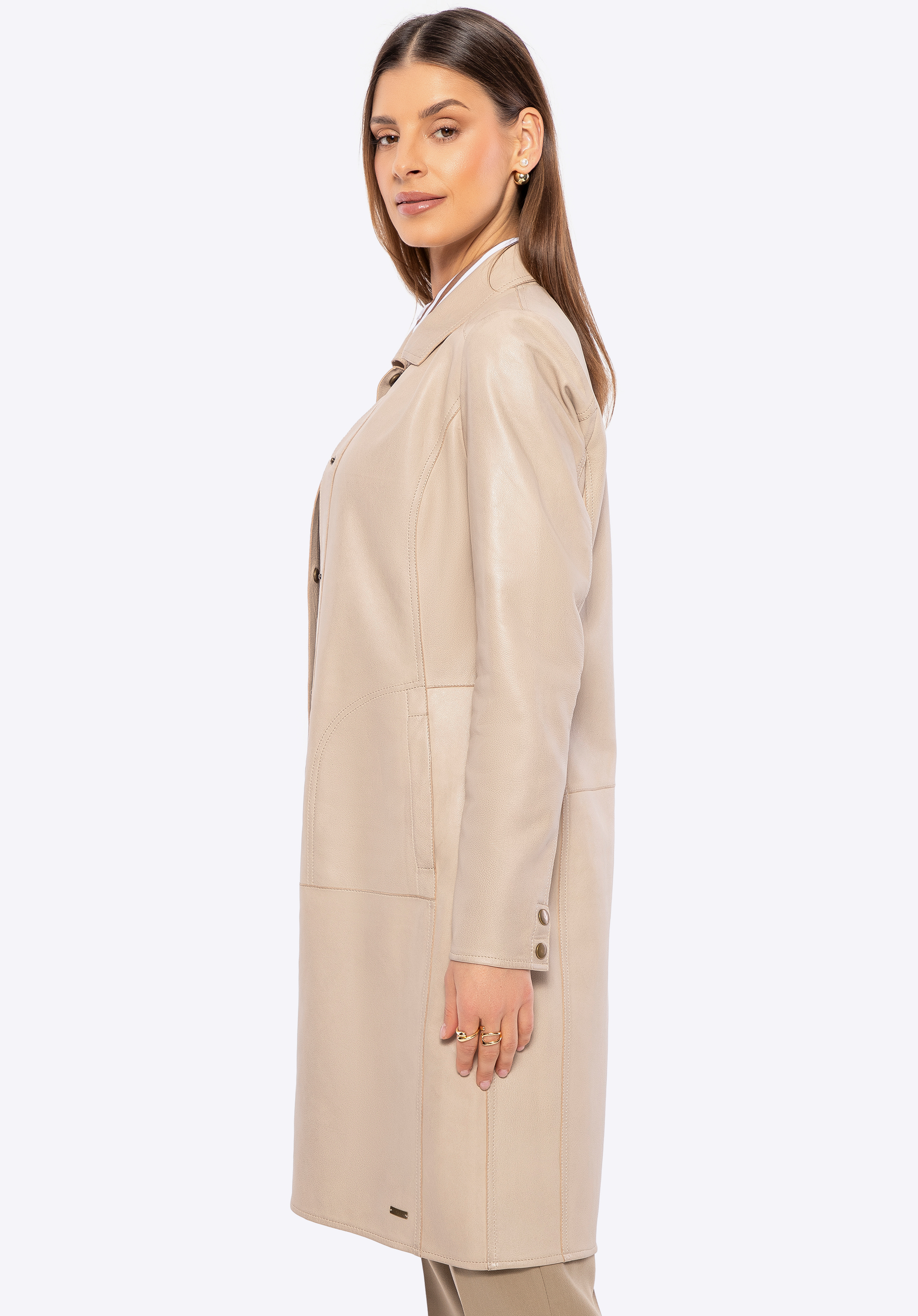 Emeld a stílusodat a következő szintre ezzel az egyedi kabáttal. Természetes báránybőrből készült, a klasszikus elegancia és a modern design kombinációja. A cipzárak, a funkcionális zsebek és a hátsó hasíték kényelmet és mozgásszabadságot biztosítanak anélkül, hogy feláldoznád az eleganciát. A kabát természetes bőrbelsője egész nap kényelembe burkol, és olyan luxusérzetet nyújt, amely soha nem megy ki a divatból. Ez egy befektetés az időtlen stílusba, amely soha nem megy ki a divatból.