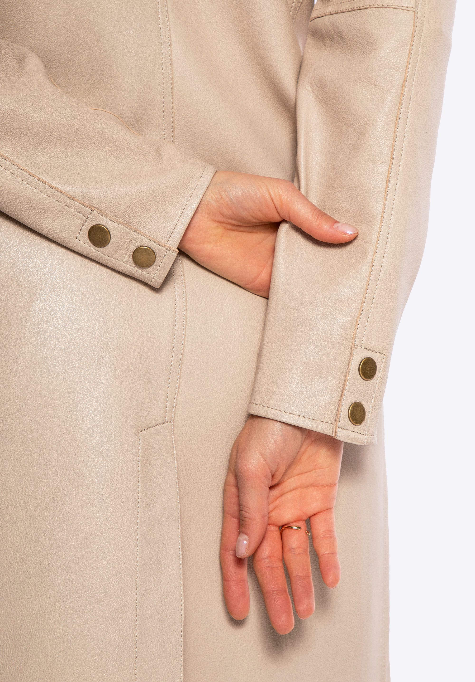 - Nyomógombos rögzítés: Visszafogott, de funkcionális, megkönnyíti a használatot, és modern jelleget kölcsönöz a kabátnak.