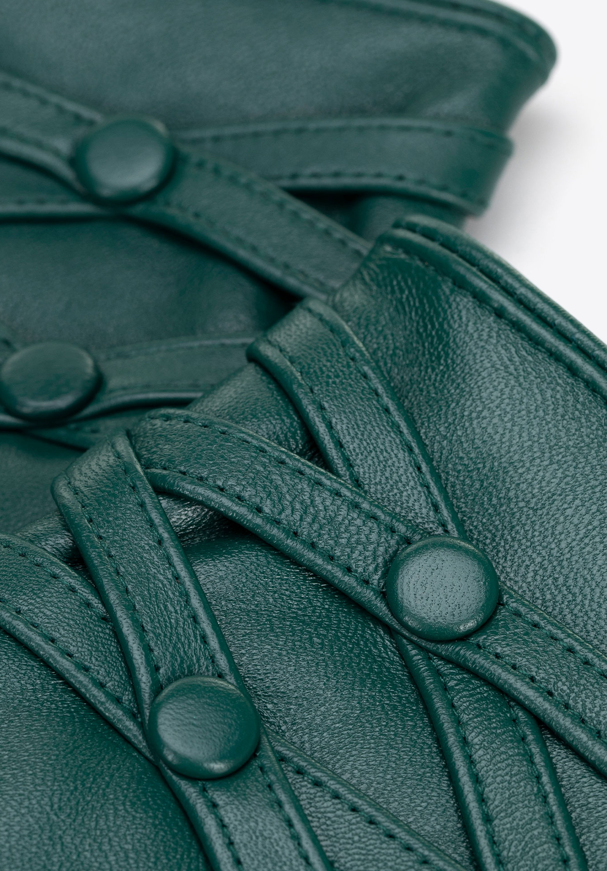 - Anyag: természetes báránybőr, kivételesen puha, rugalmas és kellemes tapintású. Tökéletesen illeszkedik a kézhez, elegáns megjelenést és tartósságot biztosít.