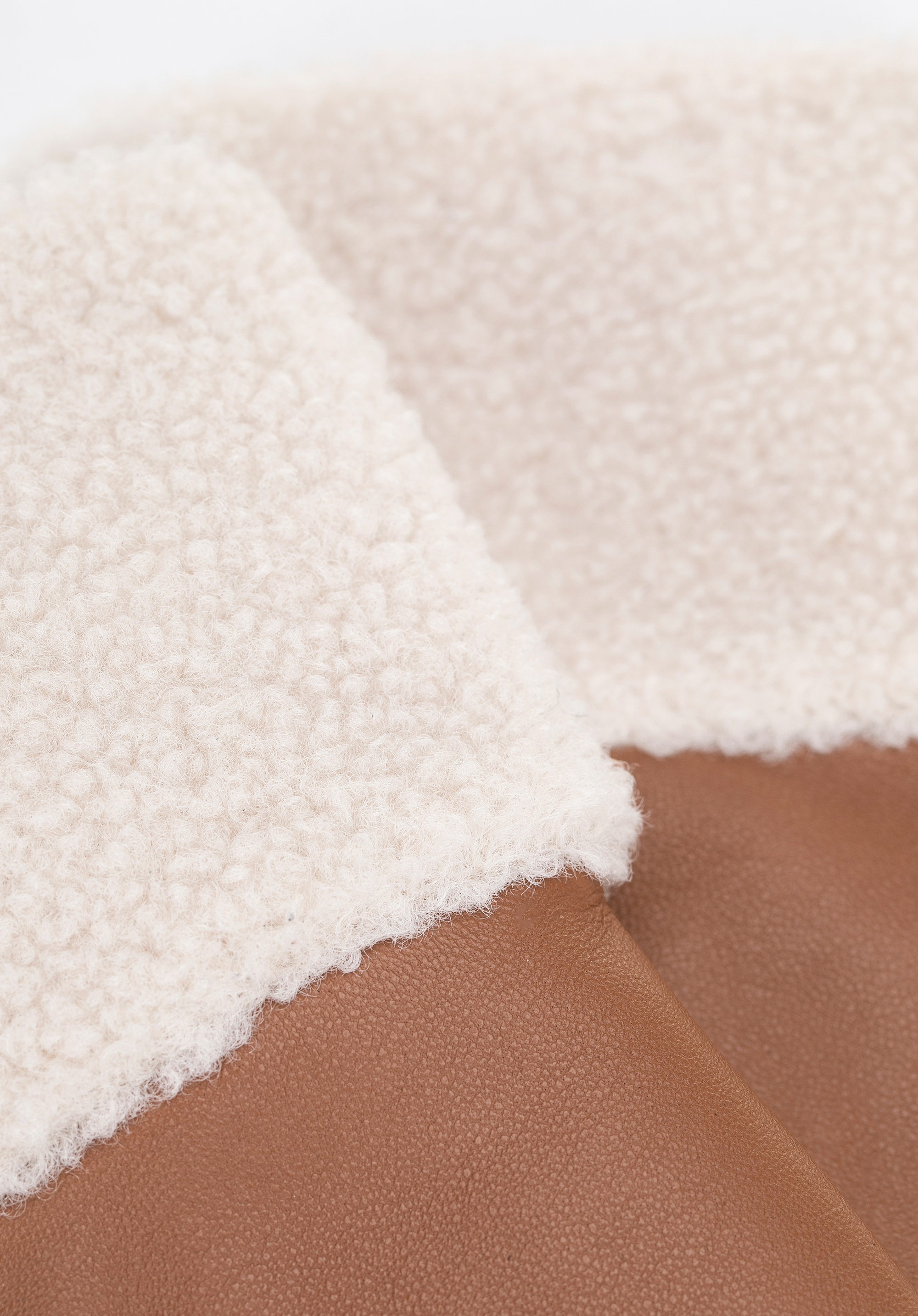 Dobd fel téli megjelenésedet egy csipetnyi kifinomultsággal ezzel anői kesztyűvel, amely a klasszikus eleganciát a puha, kényelmes anyaggal ötvözi. Műszőrmével szegett mandzsetta. Kiváló minőségű, poliészterrel kevert természetes bőrből készült, így minden időjárási körülmény között kényelmet és tartósságot biztosít. A csuklón található finom dombornyomott márkalogó kifinomult megjelenést kölcsönöz, így minden kéz könnyedén elegánsnak tűnik.
