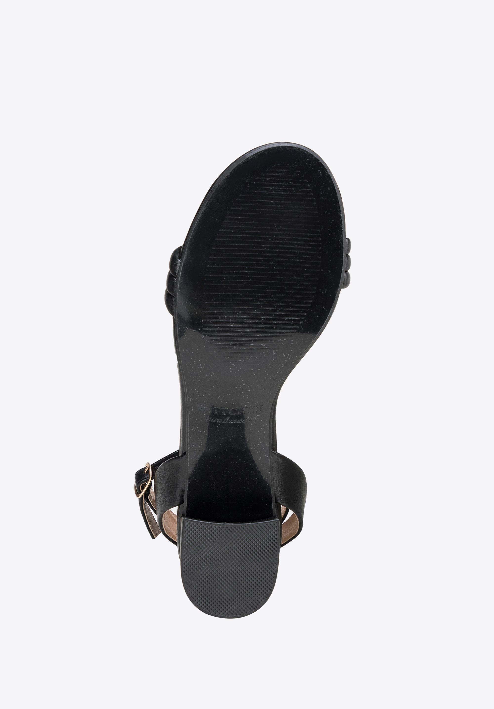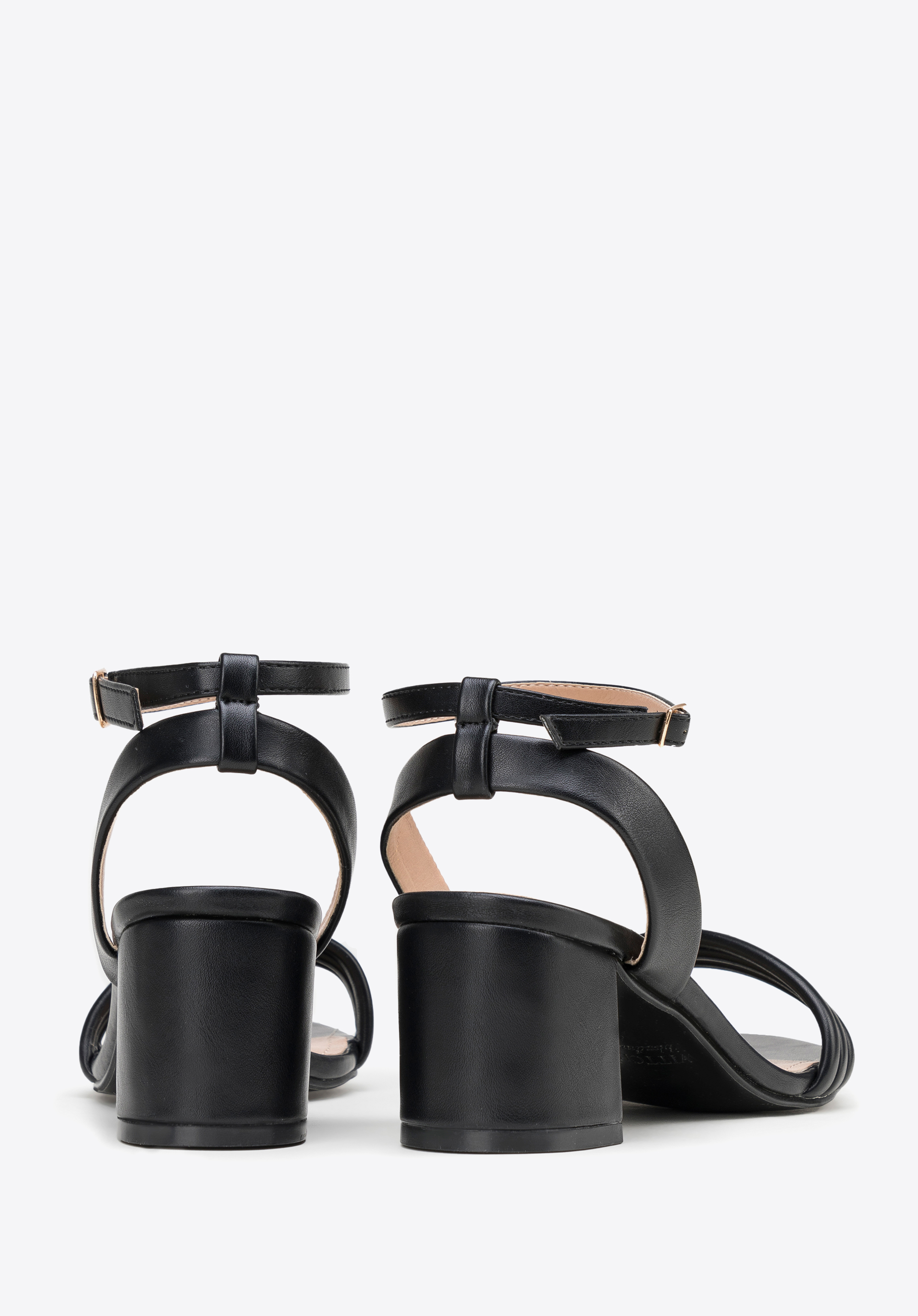 Ez az egyedi szandál minimalista és egyben rendkívül nőies is. A három puha műbőr pántból készült felső rész karcsúsítja a lábfejet, míg a boka körüli zárópánt kiemeli annak formásabb vonásait. A szandál kényelmes blokk sarkának köszönhetően akár órákig is könnyedén sétálhatsz - vagy táncolhatsz - benne. Ez egy nagyszerű modell különleges alkalmakra mint például egy nyári partira. Elegáns csipkeruhával, valamint kivágott nadrággal és pólóval is viselheted. A női pántos magas sarkú szandál egy időtálló modell számos alkalomra.