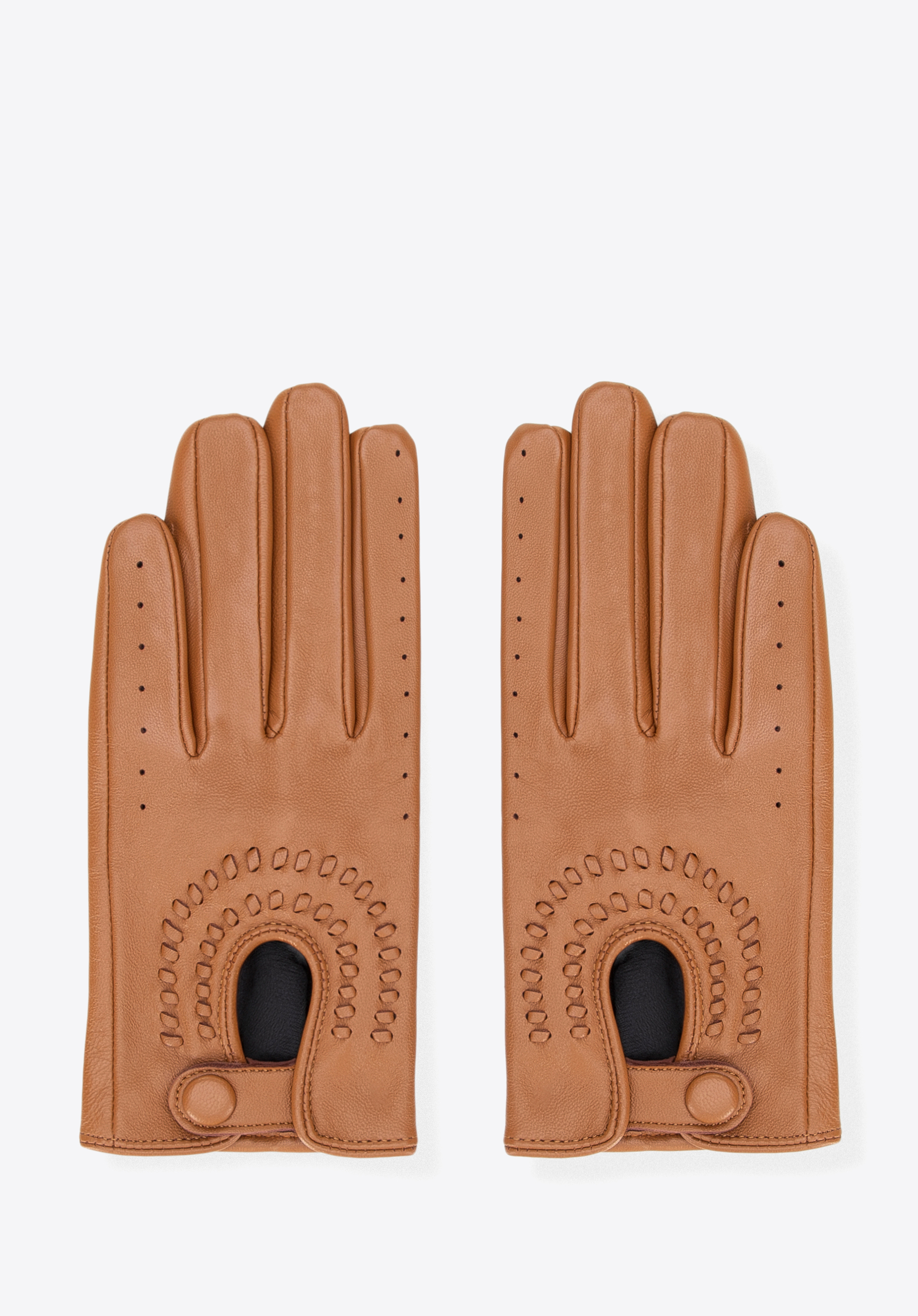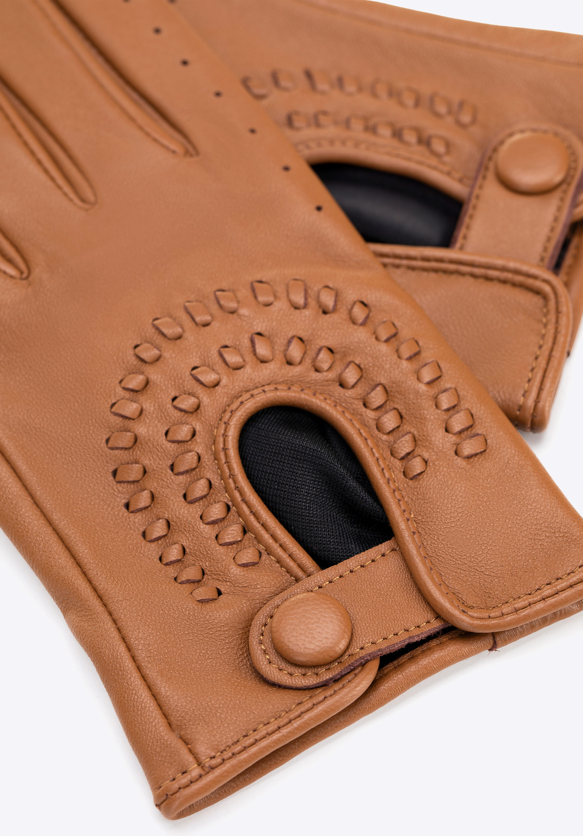 Válassz egy időtlen kiegészítőt, amely tökéletesen ötvözi a funkcionalitást a klasszikus stílussal. Ez anői autós kesztyű a maximális kényelemre lett tervezve vezetés közben – könnyű, tökéletesen illeszkedik és kifinomult részletekkel díszített, így bármilyen alkalomra ideális. Bőrből készült, tartós, puha és luxus megjelenésű. A patentgombos rögzítés kiváló illeszkedést biztosít, ötvözve a kényelmet és az eleganciát.