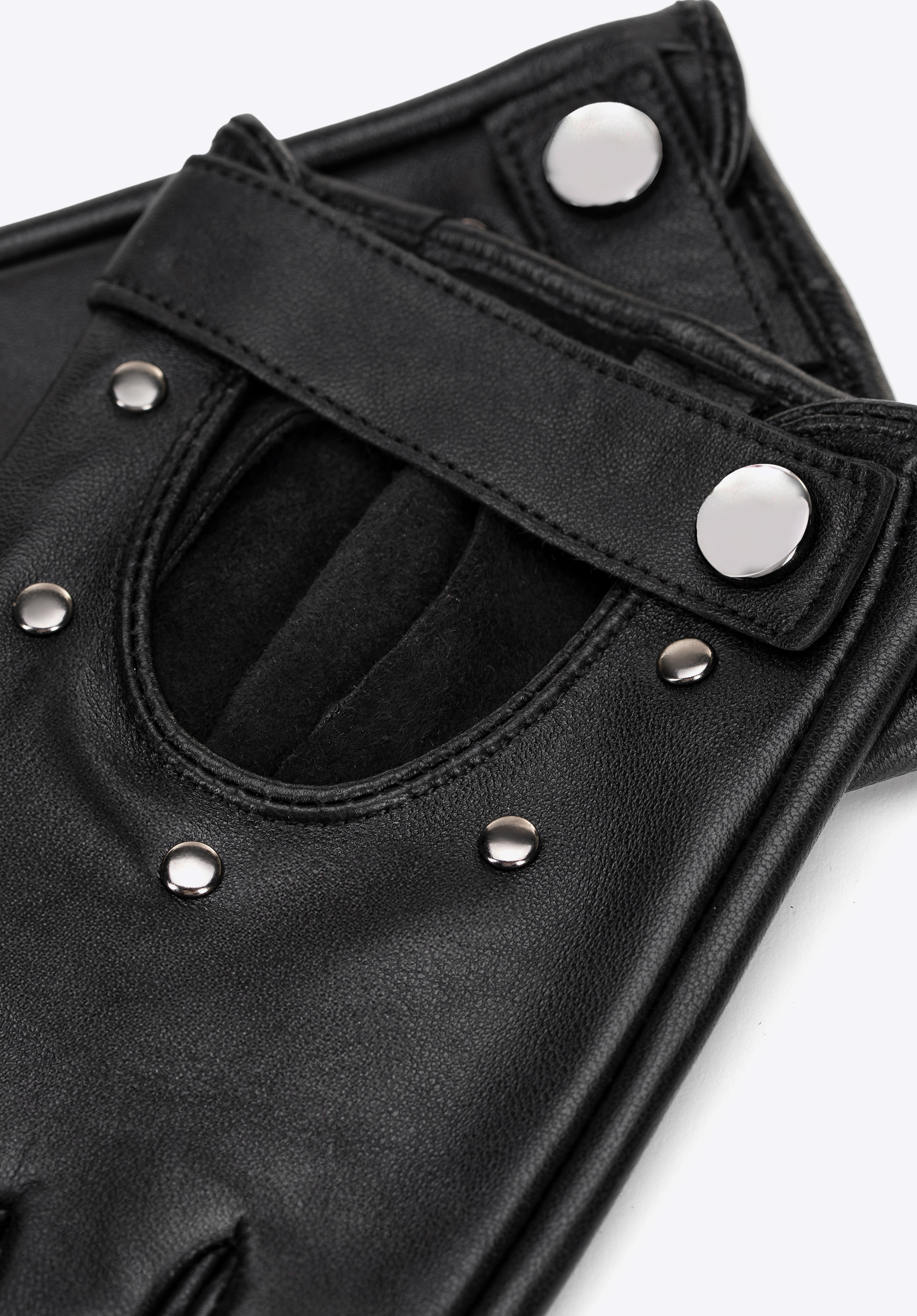 Női bőr autós kesztyű szegecsekkel díszítve fekete