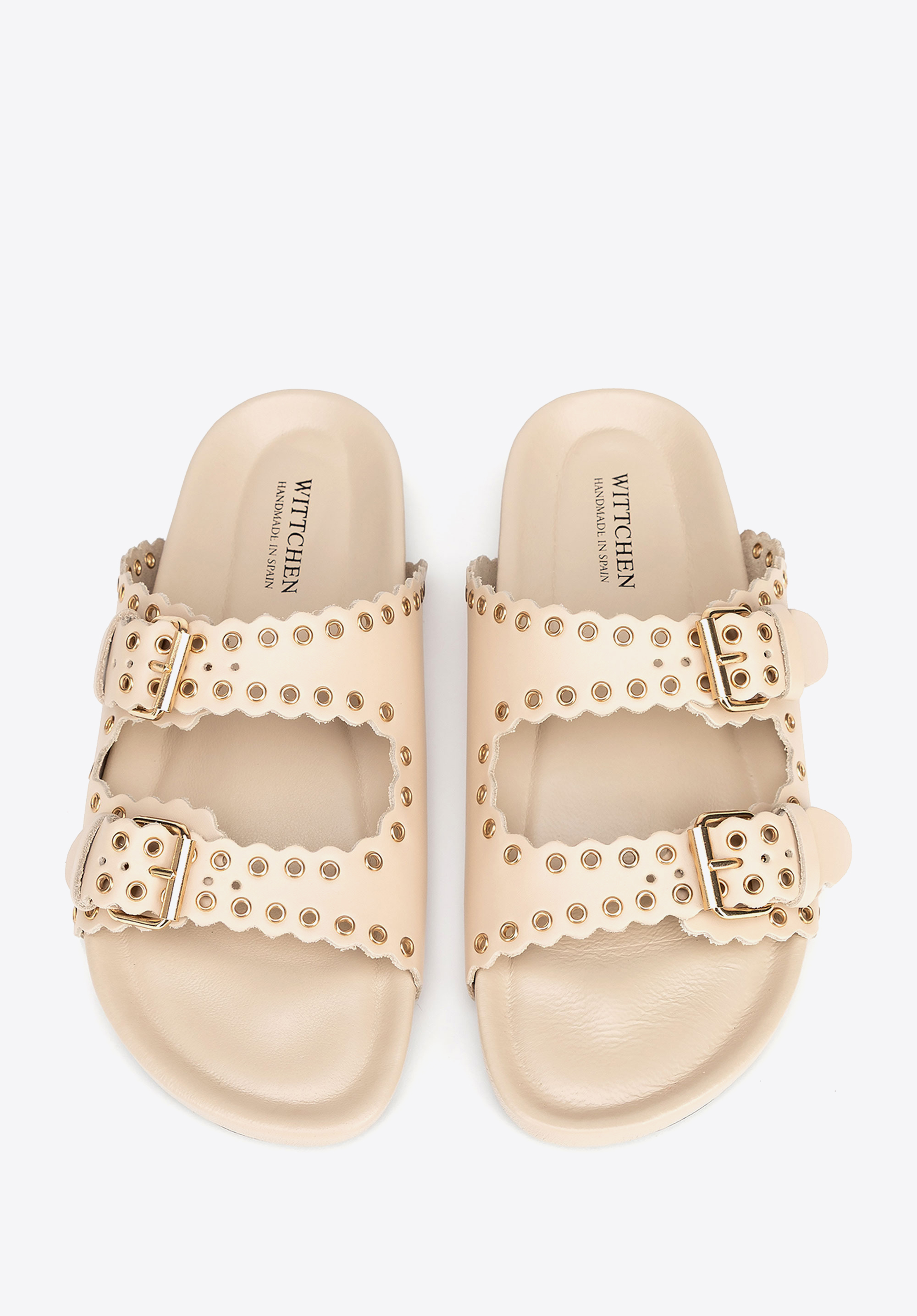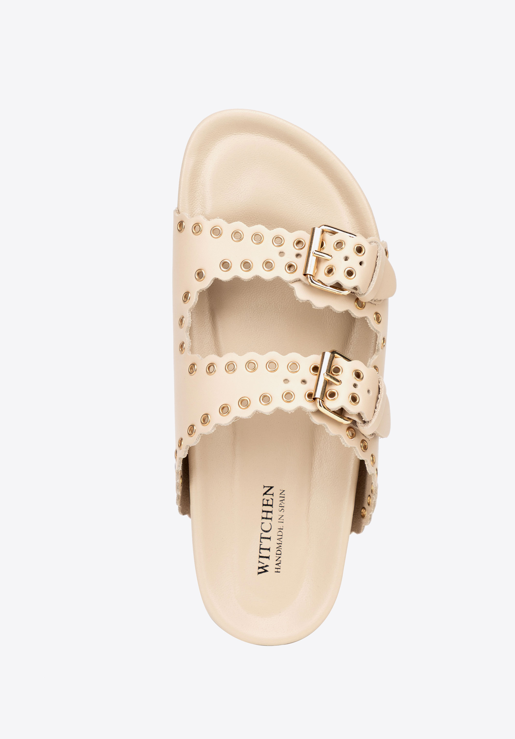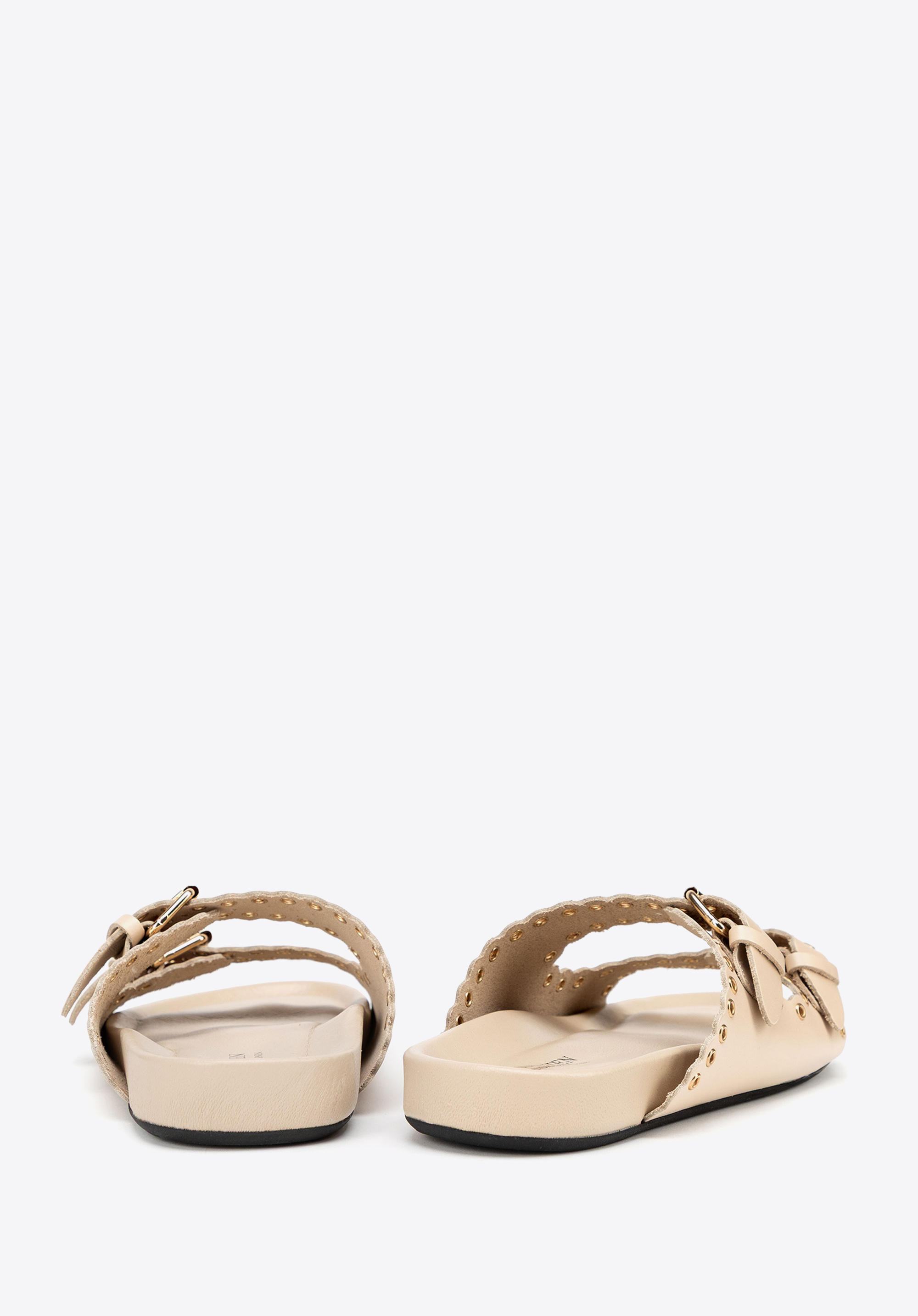 Könnyű, nőies és karakteres – ez anői papucstökéletes választás a meleg napokra! Spanyolországban készült, természetes bőrből, a finom eleganciát a könnyed nyári stílussal ötvözi. Egyedülálló dizájnja két széles, fém részletekkel díszített pánttal rendelkezik, amelyek jellegzetes megjelenést kölcsönöznek a lábbelinek. Az állítható csatok tökéletes illeszkedést biztosítanak, a felcsúsztatható konstrukció pedig hihetetlenül könnyű viseletet garantál. A lekerekített orr finoman megnyújtja a lábat, míg a puha bélés és a talpbetét egész napos kényelmet jelent.