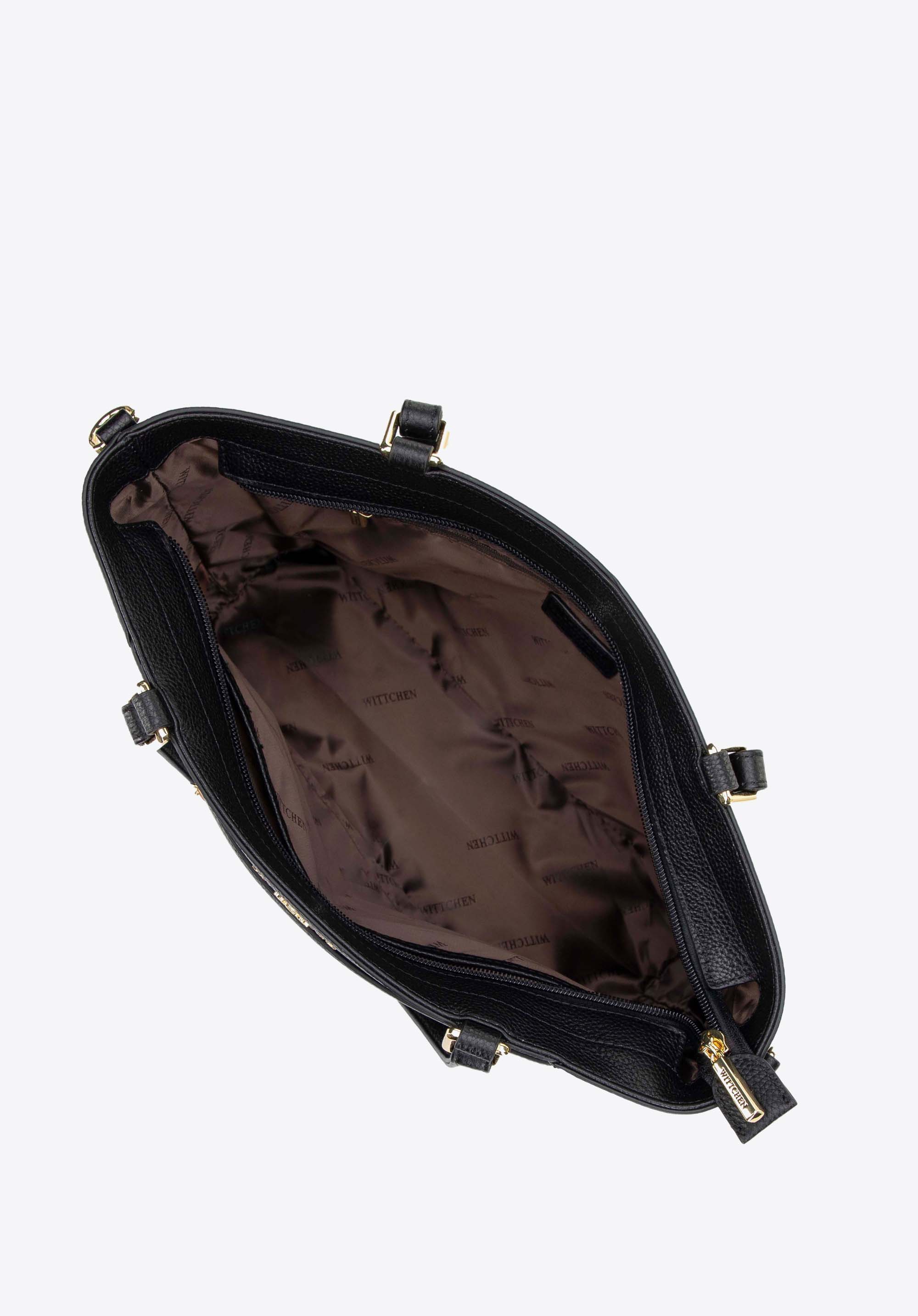 Vezess be eleganciát és funkcionalitást ruhatáradba természetes bőrből készült shoppertáskánkkal. A klasszikus stílus és a praktikum e kivételes keveréke megfelel a modern nő igényeinek. A finom részletek, mint például a Wittchen-logó, eleganciát kölcsönöznek, így minden ruhához tökéletesen illik.