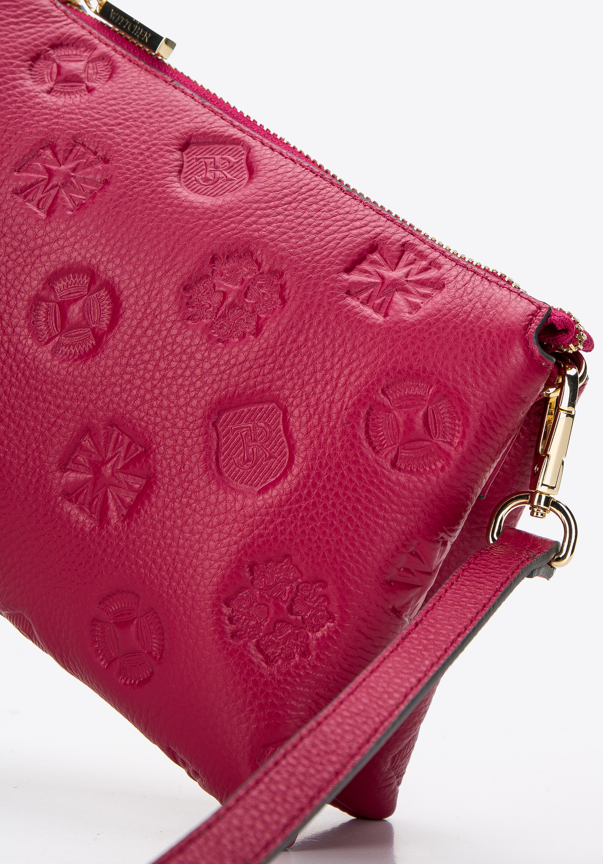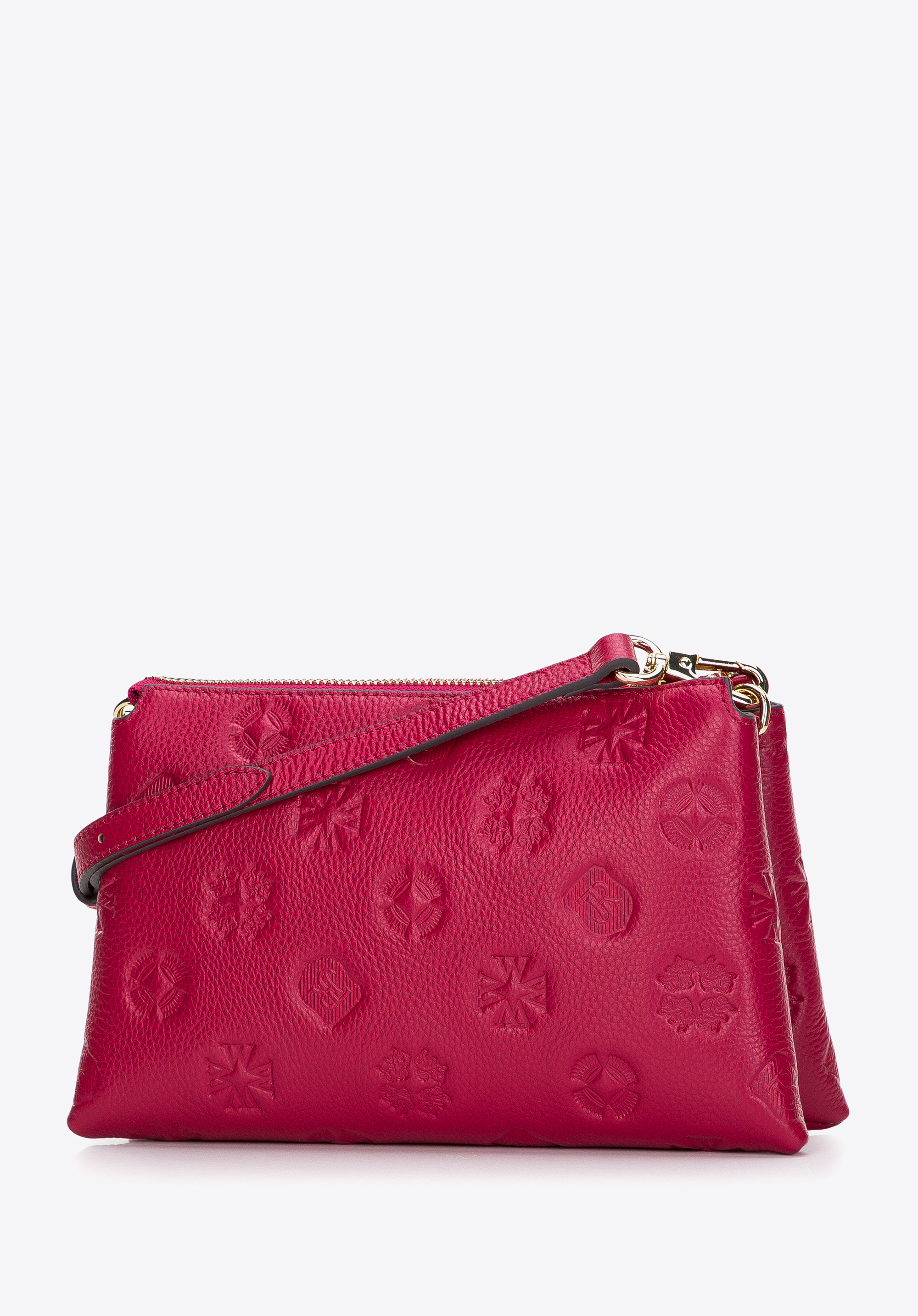 Ez a kicsi, elegáns táska minden ruhát feldob. Kiváló minőségű természetes bőrből készült, amelyen a Signature kollekcióból ismert WITTCHEN monogram látható. Az eredeti trapézforma két rekesszel rendelkezik , ahol könnyedén lehet rendet tartani. Belül elfér egy pénztárca, telefon, papírzsebkendő, kedvenc rúzsod és néhány apróság – tökéletes esküvőre, barátokkal vagy moziba. Viseld egy sima koktélruhával, vagy adj valami elegánsat kedvenc farmeredhez és ingedhez. A monogramos dombornyomású kétrekeszes bőr minitáska időtlen kiegészítő, amelyet érdemes bevinni a ruhatáradba.