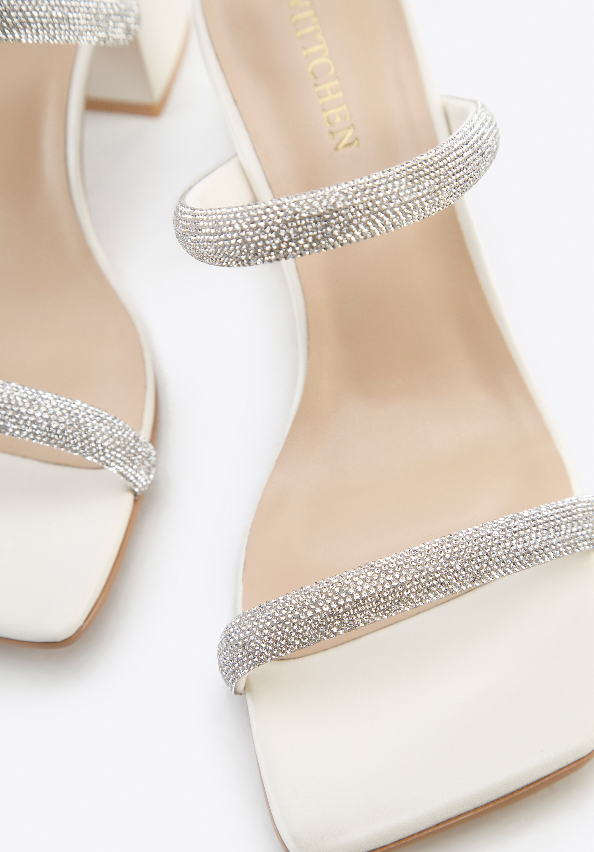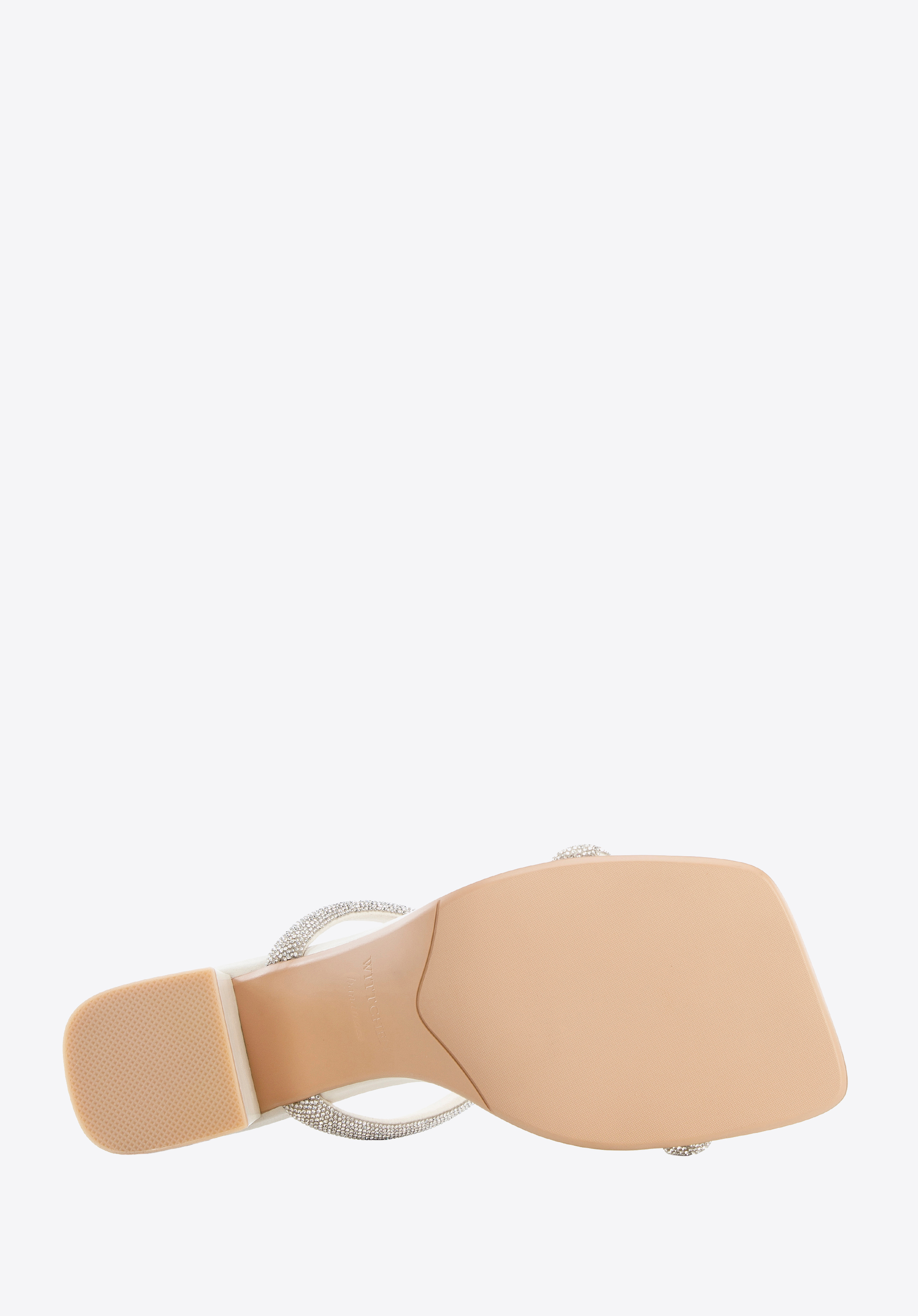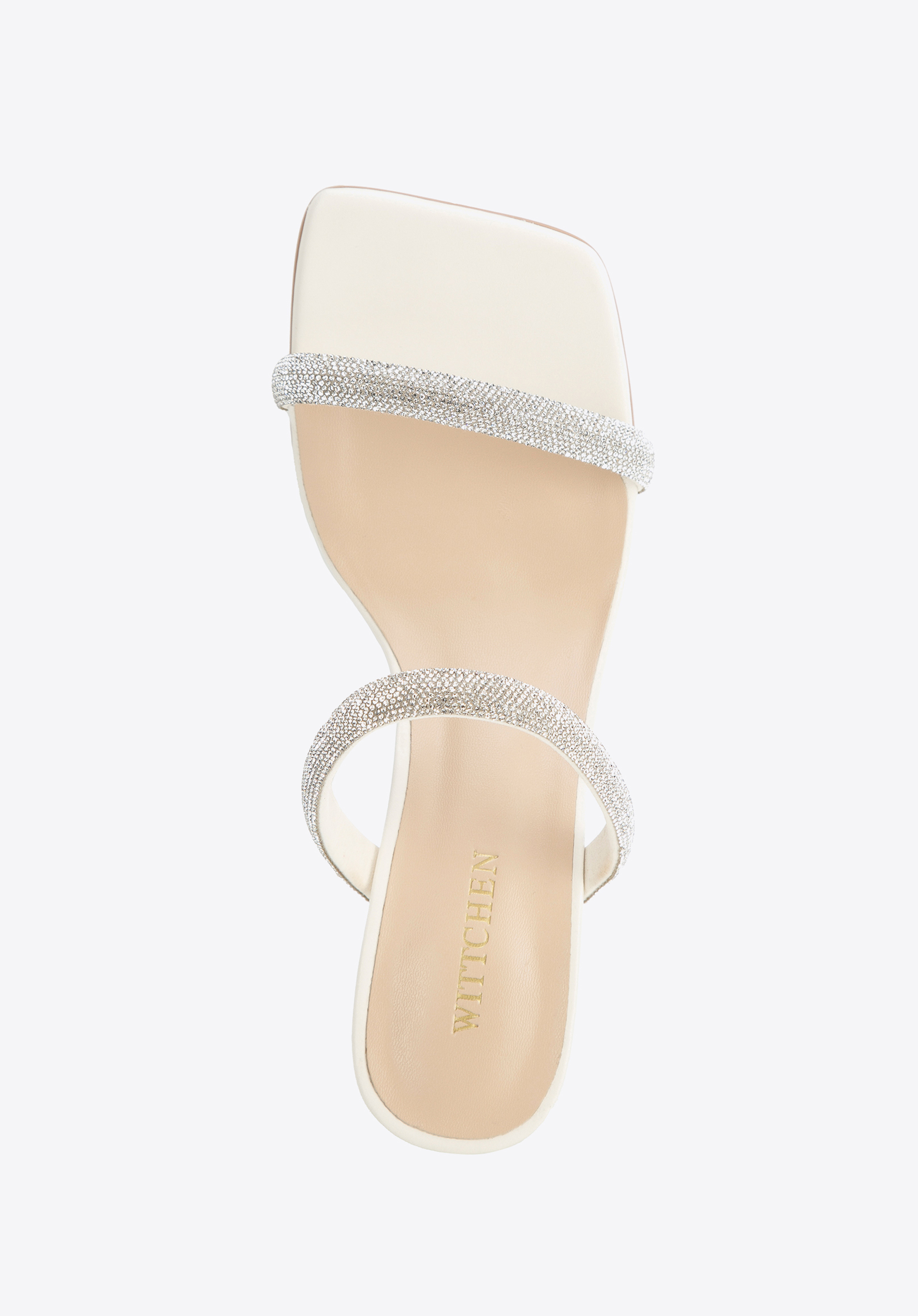 természetes bőrből készült.A lábat tartó vékony pántokat apróbb kristályok díszítik, amelyek elegáns megjelenést kölcsönöznek.