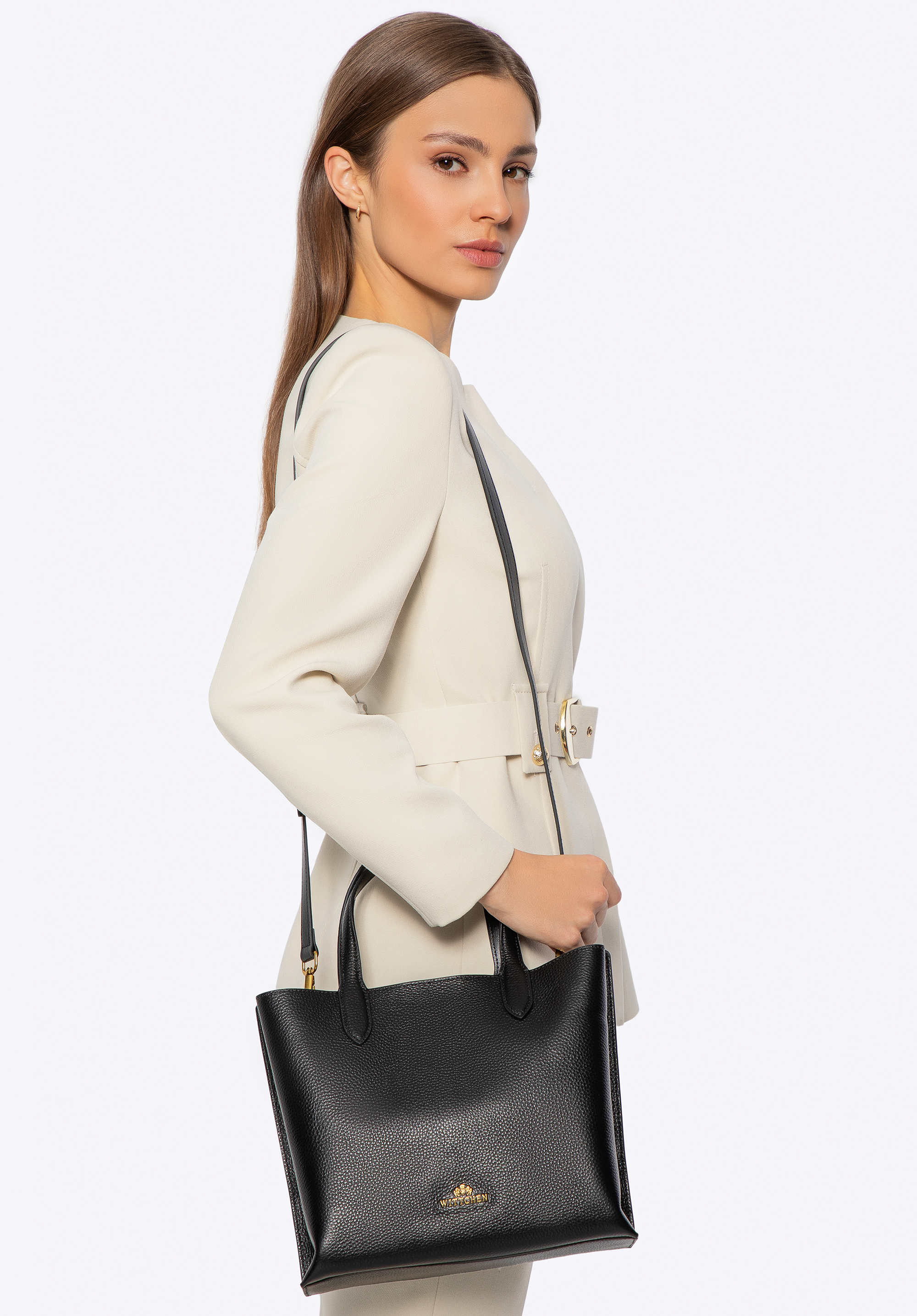 - Három rekeszes belső tér: A megosztott térben könnyedén tárolhatod pénztárcádat, telefonodat, kulcsaidat és kozmetikumaidat.