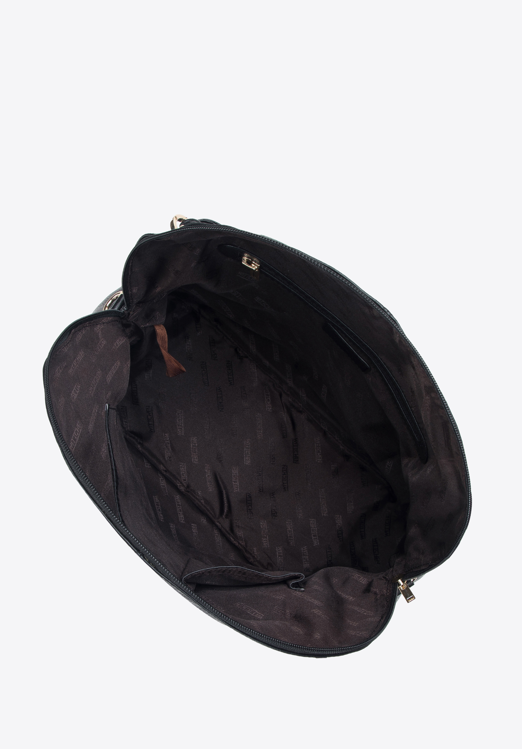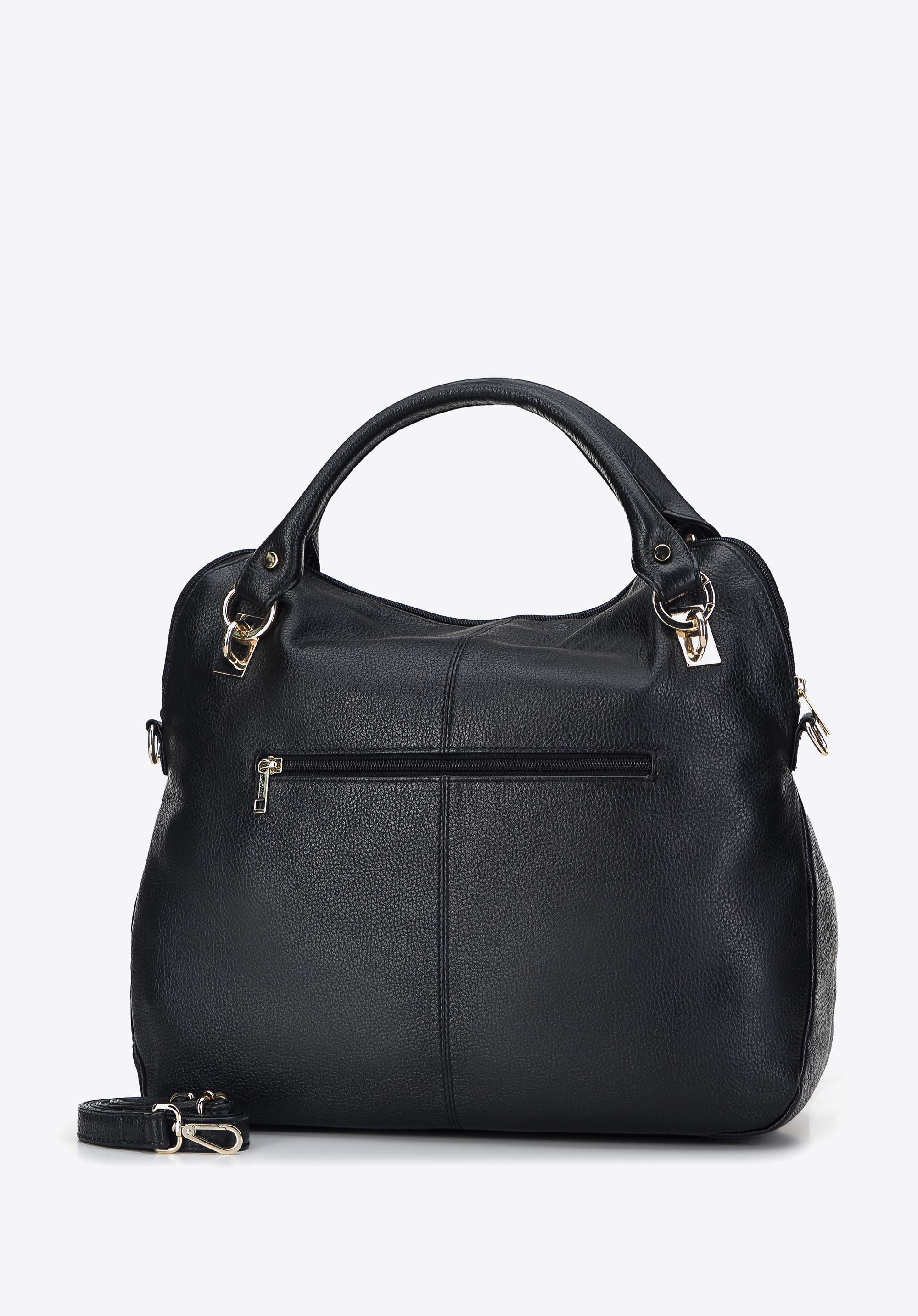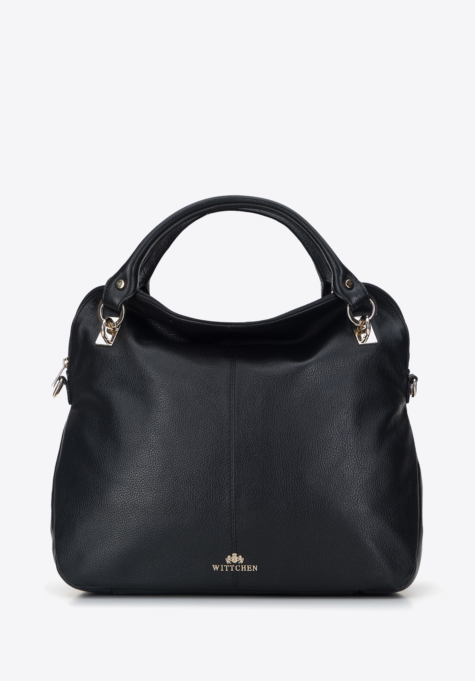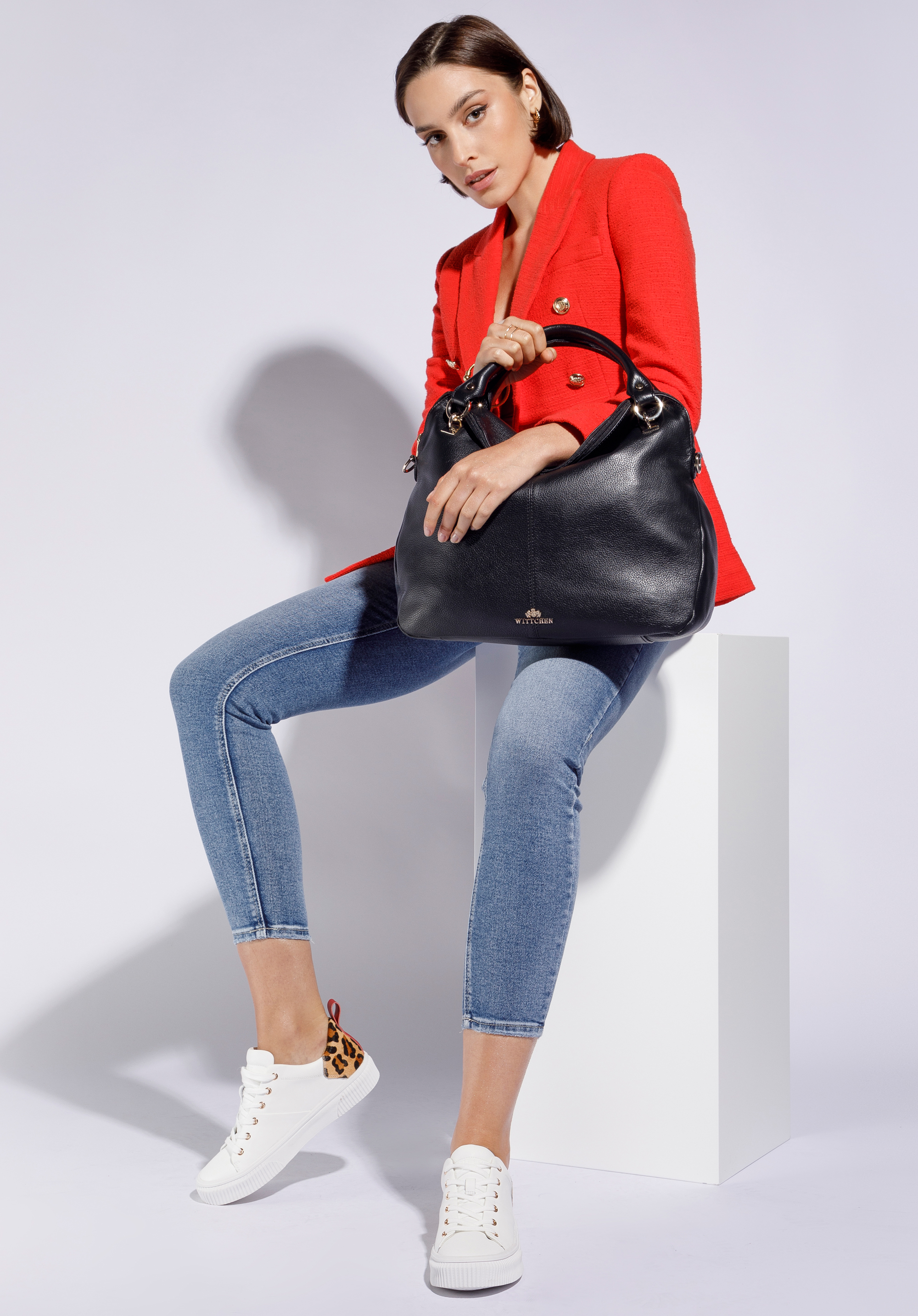 Ez a nagyméretű kézitáska nagyszerű választás azoknak a nőknek, akik szeretnek minden szükséges dolgot magukkal hordani. Egyedi szabású, lekerekített formájú, és nagyon tágas. Elfér benne például egy pénztárca, telefon, egy könyv, egy termosz, A4-es iratok, tartalék sál, apró bevásárlás és sok apróság. Meglehetősen univerzális, így a mindennapokban és a munkahelyen is viselhető. Remek kiegészítője lesz egy klasszikus ballonkabátnak és csizmának, valamint eleganciát kölcsönöz egy farmernadrág- póló kombinációnak is. Ez a lekerekített sarkú bőr táska egy időtlen kiegészítő, amely számos alkalommal jól jöhet.